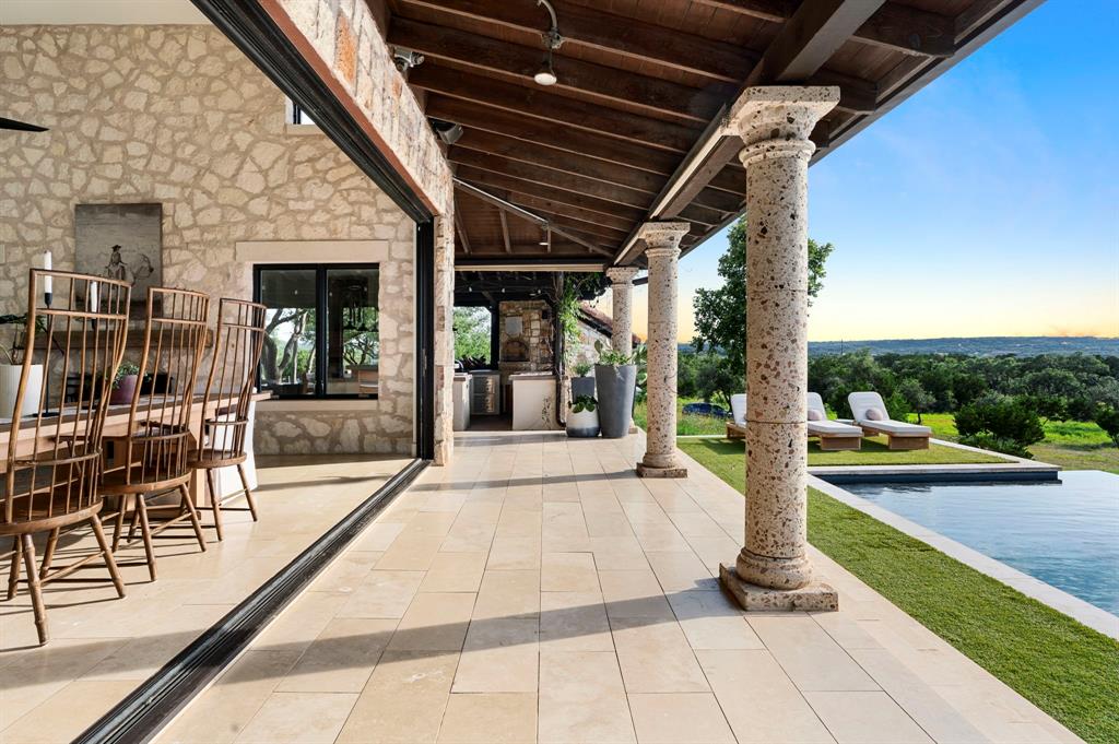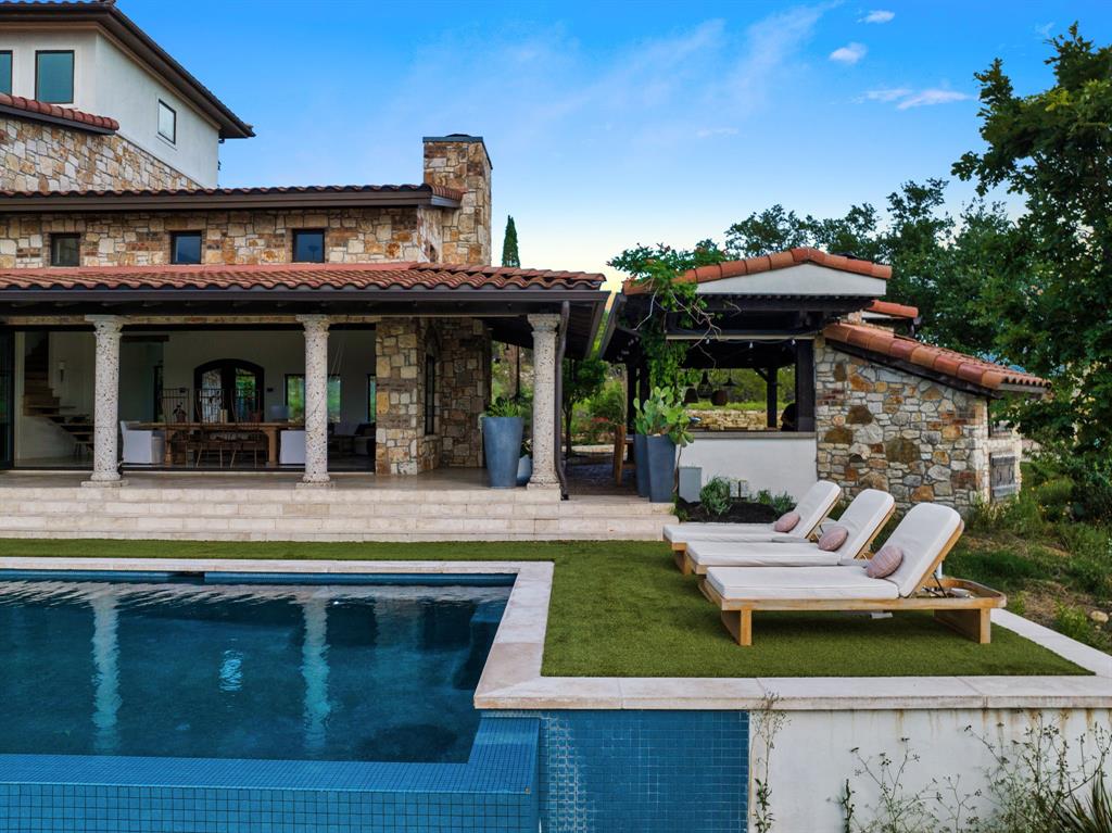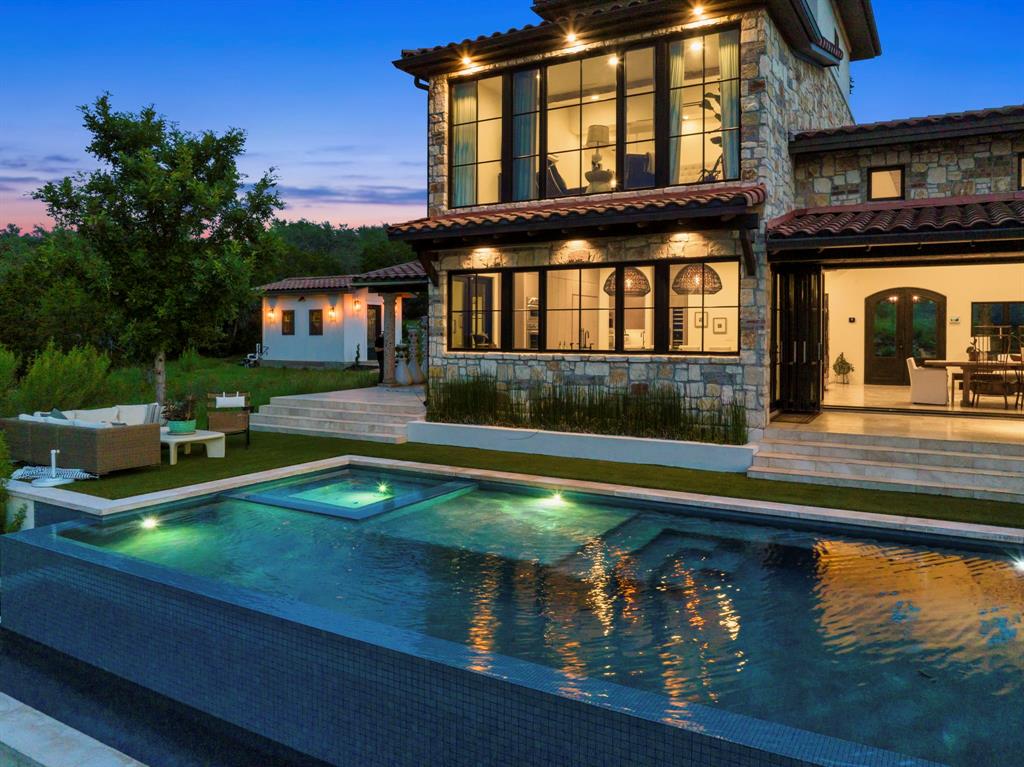 This Artistically curated Italian farmhouse which is nestled in the beautiful Hill country West of Austin a 1/2 mi Off Hwy, drive up your private road to your oasis within Lake Travis School district, Home was taken down to the studs and recently renovated into this dream home. This designer home with luxury all over it! Finished with new modern style mixed with rustic character. Developers Dream Big, Subdivide and build custom homes on 2 acre parcels. Outdoor paradise awaits you! The entire property is fenced and gated. Floor to ceiling windows complete with a 27’ glass bifold door turns this property into an entertainers haven with indoor/ outdoor living. Facing westward to take in breathtaking sunsets and swim in a 53’ salt water pool w/ sunken hot tub & built-in swim lane. The organic garden, entertaining barn complete with chicken coup for the homestead lifestyle. Check out the garage office for another one of the bonuses on this one of a kind property. The outdoor kitchen/eating space is the icing on the cake in this resort style home. It’s vacation 365 days a year when using your Italian wood burning pizza oven complete with refrigerator, sink, designer lighting and more. Inside this beautiful home you find custom window treatments, designer lighting, 100 plus year old beams, reclaimed gorgeous hardwood, travertine stone, organic timeless design. Whole house indoor/outdoor distributed audio. Oversized primary bedroom with sitting area to take in that westward facing view. As you enter the high end kitchen it offers Theramdor appliances, built-in coffee center, wine column, anteriors hand made luxury lighting, steam double oven, butlers pantry, European style kitchen windows that line the beautiful natural quartzite countertops, hand made iron cabinet pulls on the custom cabinets that finish off this luxury kitchen. Whole house water filtration, spray foam insulation, new HVAC, recirculating pump, buried gas, new septic, RO Filtration.