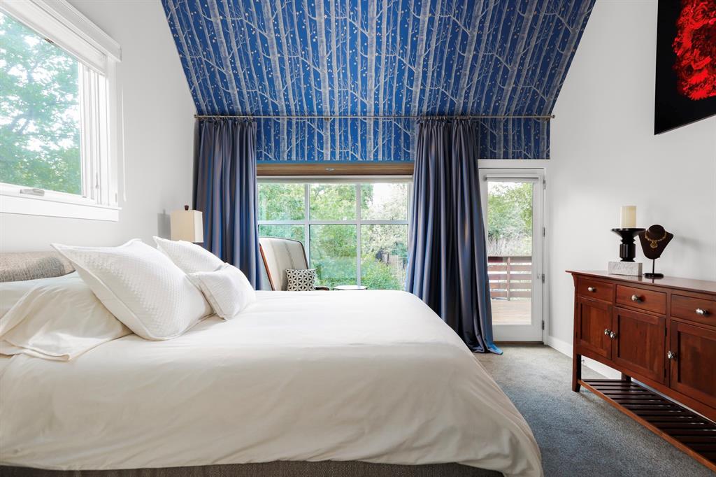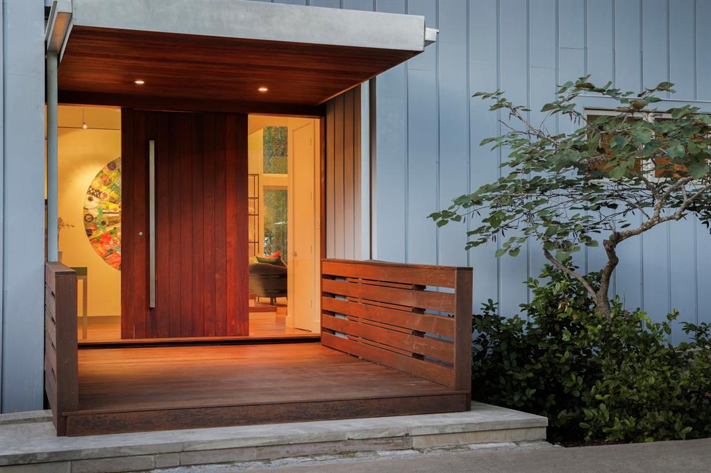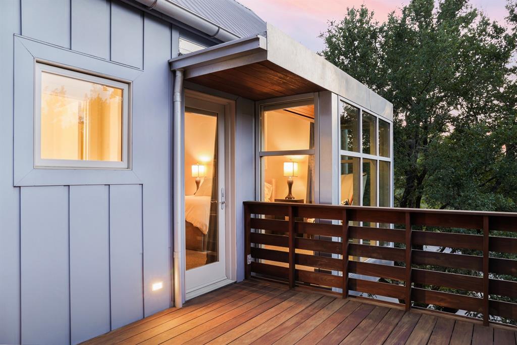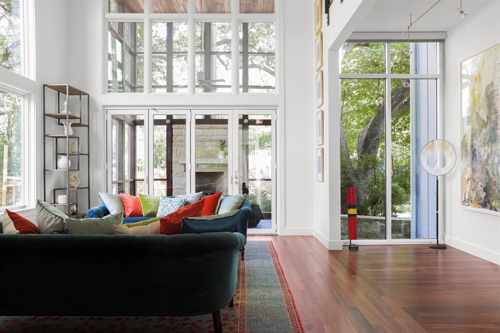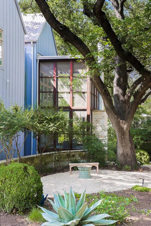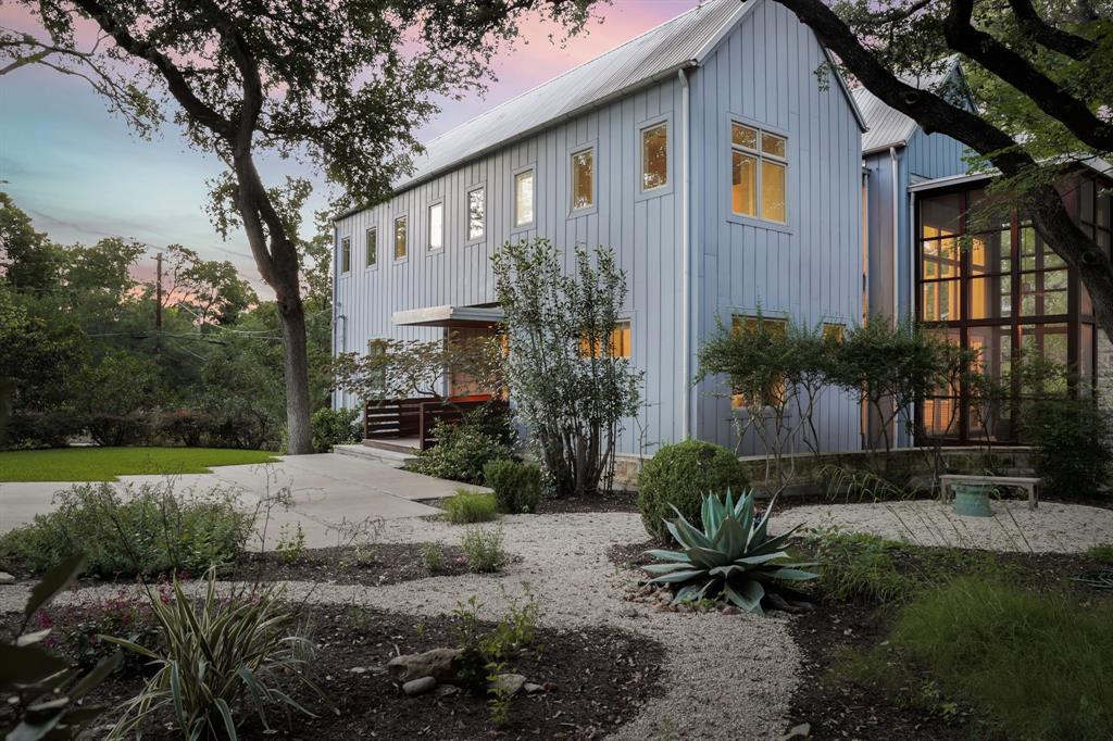 This house is famous for all the RIGHT reasons. Renowned architect Heather McKinney created this award-winning, environmentally-conscious “treehouse castle†surrounded by a grove of mature trees. Foliage and nature-inspired, low-maintenance landscaping offer so much privacy that you’d never know you’re perfectly centered in the most walkable zone of West Austin: within a half-mile walk you’ll find schools, groceries, restaurants, upscale shopping, and more (see attached).The city’s newest H-E-B grocery/BBQ/bar is a five minute drive; downtown less than ten. The modern design pairs architectural distinction with comfort. A high-ceilinged, open plan pairs soaring main spaces and more intimate rooms. Bask in natural light all day long through large windows and a glass-wrapped open staircase. Invite breezes into an airy living room through a foldable glass wall opening to a double-height screen porch with limestone fireplace. Reinforced gallery art walls showcase collections, art, or tech. Entertain in style in a party-perfect gourmet kitchen with plentiful workspace, copious storage, and a stunning formal dining room/library. Retreat into the romantic primary suite with glass reading nook, balcony, and spa-inspired bath. Treat yourself every day with extras like a yoga nook, a flex space perfect for play or home gym, a craft room, and a private home office lined floor to ceiling with bookshelves. Not only beautiful, the house is also green and practical. Solar panels produce a sizable percentage of its energy, Easy-care HardiePlank, sustainably-sourced hardwoods, and low-VOC paints and glues were used throughout. A dumbwaiter makes transporting groceries easy. An oversized 3-car garage with workshop space & expansive storage room, plus 4 paved parking spots for guests. Elegant as an entertaining venue, yet immensely livable as a family home. This is the first time, and probably last time, that this home will be available for a generation.