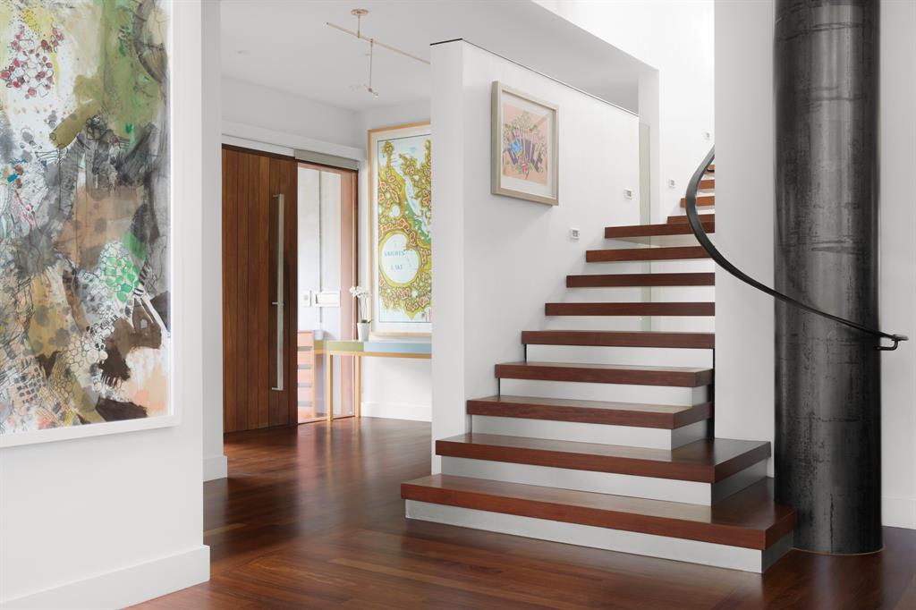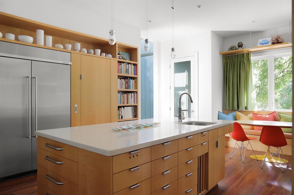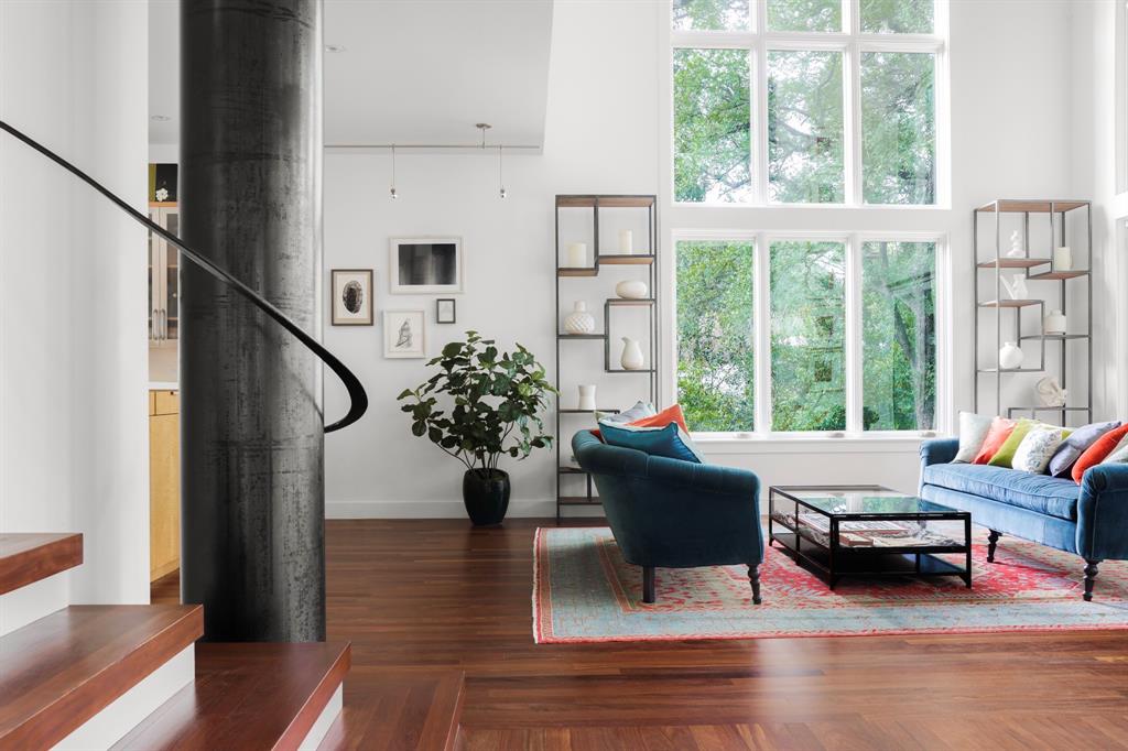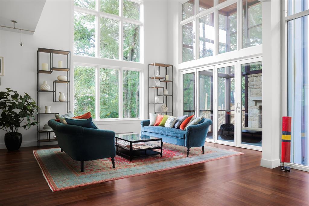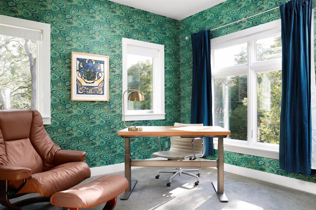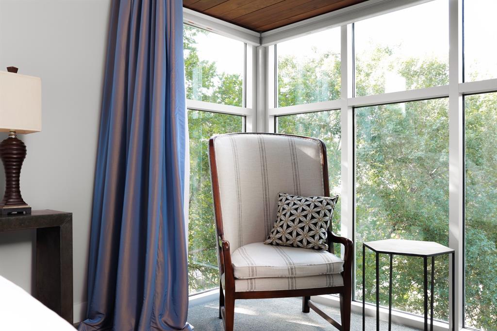 This house is famous for all the RIGHT reasons. Renowned architect Heather McKinney created this award-winning, environmentally-conscious “treehouse castle†surrounded by a grove of mature trees. Foliage and nature-inspired, low-maintenance landscaping offer so much privacy that you’d never know you’re perfectly centered in the most walkable zone of West Austin: within a half-mile walk you’ll find schools, groceries, restaurants, upscale shopping, and more (see attached).The city’s newest H-E-B grocery/BBQ/bar is a five minute drive; downtown less than ten. The modern design pairs architectural distinction with comfort. A high-ceilinged, open plan pairs soaring main spaces and more intimate rooms. Bask in natural light all day long through large windows and a glass-wrapped open staircase. Invite breezes into an airy living room through a foldable glass wall opening to a double-height screen porch with limestone fireplace. Reinforced gallery art walls showcase collections, art, or tech. Entertain in style in a party-perfect gourmet kitchen with plentiful workspace, copious storage, and a stunning formal dining room/library. Retreat into the romantic primary suite with glass reading nook, balcony, and spa-inspired bath. Treat yourself every day with extras like a yoga nook, a flex space perfect for play or home gym, a craft room, and a private home office lined floor to ceiling with bookshelves. Not only beautiful, the house is also green and practical. Solar panels produce a sizable percentage of its energy, Easy-care HardiePlank, sustainably-sourced hardwoods, and low-VOC paints and glues were used throughout. A dumbwaiter makes transporting groceries easy. An oversized 3-car garage with workshop space & expansive storage room, plus 4 paved parking spots for guests. Elegant as an entertaining venue, yet immensely livable as a family home. This is the first time, and probably last time, that this home will be available for a generation.