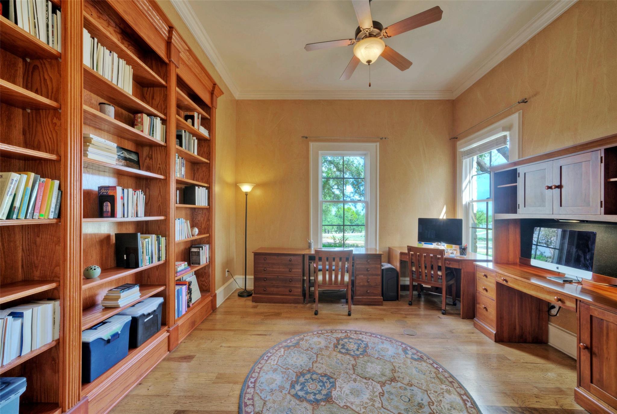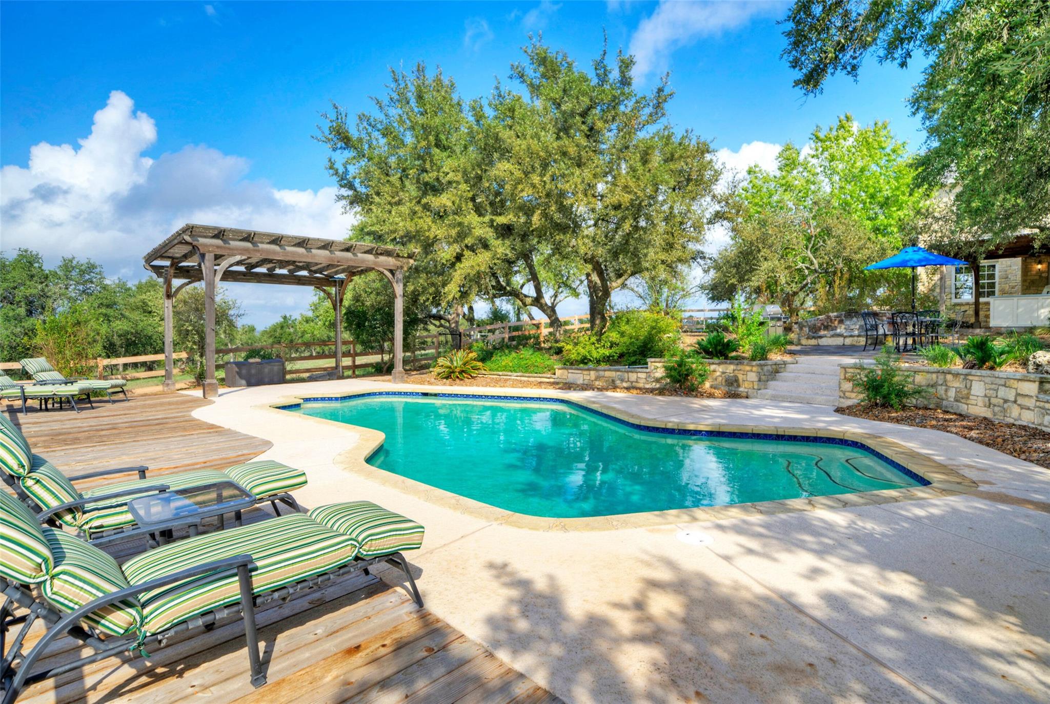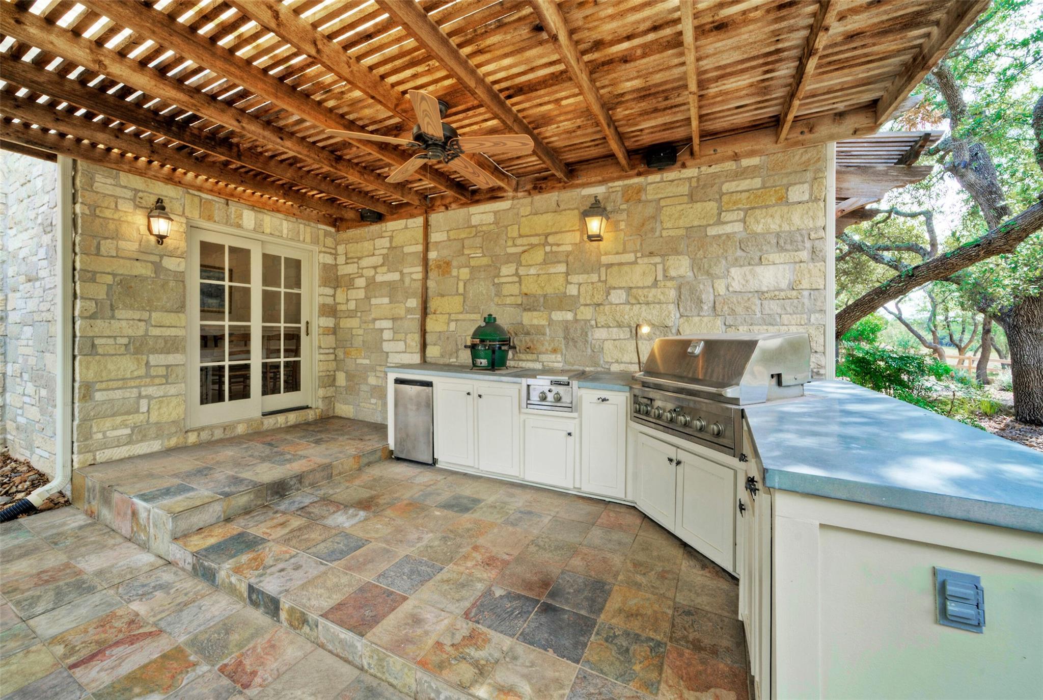 Fully-fenced 32-acre gated estate with exceptional security/privacy features. Can be divided 3 times. Hilltop location, long-term propane-powered generator, 3 water sources, and AC storage room/safe room. Groomed land, rolling topography, and views. Nestled in Hays County, w/ advantages of being 25 mins from downtown Austin without the constraints of city living. Near the restaurants and shops of the Belterra shopping center and a brand new, state-of-the-art HEB grocery store. Flexibility and minimal restrictions. Potential subdivision into parcels w/ min size of 7.5 acres. Reduced property taxes, wildlife exemptions, and falls within Dripping Springs school district. The 5,000 sqft custom home offers 4 bedrooms, each w/ private full bath. Fresh exterior and interior paint. New exterior doors and windows ordered. Exceptional outdoor living space, complete with swimming pool and oasis w/ stunning views. 3 air conditioner zones, a heated and cooled three-car garage, along with a Class 4 metal roof. Not only provide protection but can also reduce your home insurance costs. 2 agricultural wells and connected to public water. The house is equipped with a generator transfer switch in the garage, guaranteeing uninterrupted power. Propane tanks on the property provide for gas cooking and heating needs. Numerous homesites, each offering breathtaking 300-degree panoramic views. Luxury 2021 horse barn features 2 stalls with runs and pasture access. With a drive-through layout, automatic waterers, a heated wash rack, and an air-conditioned tack room. You’ll also find a 100’ X 200’ hilltop arena and a 60 ft. round pen. The property includes an NRA-designed gun range, which is permissible under county rules and subdivision restrictions. Additionally, a 3,520 square foot metal barn is equipped with a 22 kW Generac generator, ensuring continuous power for the barn and wells. Also two underground 1,000-gallon propane tanks and well storage tanks.