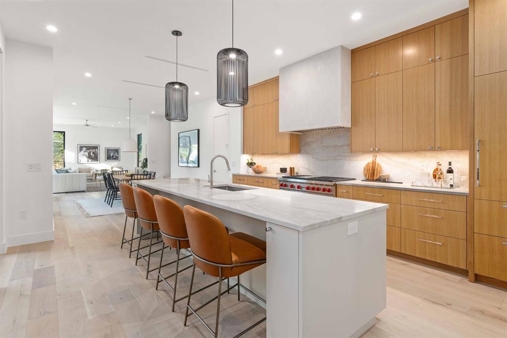 Welcome to 2022 Ford Street, a stunning 4-bedroom, 3-bath home nestled in the highly sought-after Zilker neighborhood of Austin, Texas. This remarkable property boasts a massive covered outdoor patio complete with an outdoor kitchen and fireplace, perfect for entertaining friends and family. Situated on the best part of Ford Street, known for its legendary Halloween party. Enjoy the convenience of a protected bike lane that leads you directly to Zilker Park and Barton Springs, where you can soak up the sun and take a refreshing dip. Indulge in the eclectic mix of restaurants and shops on South Lamar and Barton Springs, or take a leisurely stroll along Lady Bird Lake and explore the surrounding hike and bike trails. Convenience is key in this location, as you'll find Zilker Elementary just a block away, along with tennis courts and a dog park. This new construction home is meticulously designed with custom cabinetry, top-of-the-line Wolf and Sub-Zero appliances, and exquisite fixtures throughout. Step inside and be greeted by an open concept kitchen, dining, and living area, perfect for entertaining. The Western sliding glass doors seamlessly connect the indoor and outdoor spaces, allowing for the perfect blend of natural light and refreshing breezes. The secondary living space upstairs provides additional flexibility and room to spread out. With an expansive backyard, complete with a sparkling pool and a covered patio where you can relax and unwind. The primary suite is a true retreat, flooded with natural light and featuring a large walk-in shower, separate tub, and a spacious walk-in closet. Every detail of this home has been carefully crafted, resulting in a true quality build that exudes elegance and sophistication. Don't miss the opportunity to make this exquisite property yours. Schedule a showing today and experience the epitome of Zilker living.