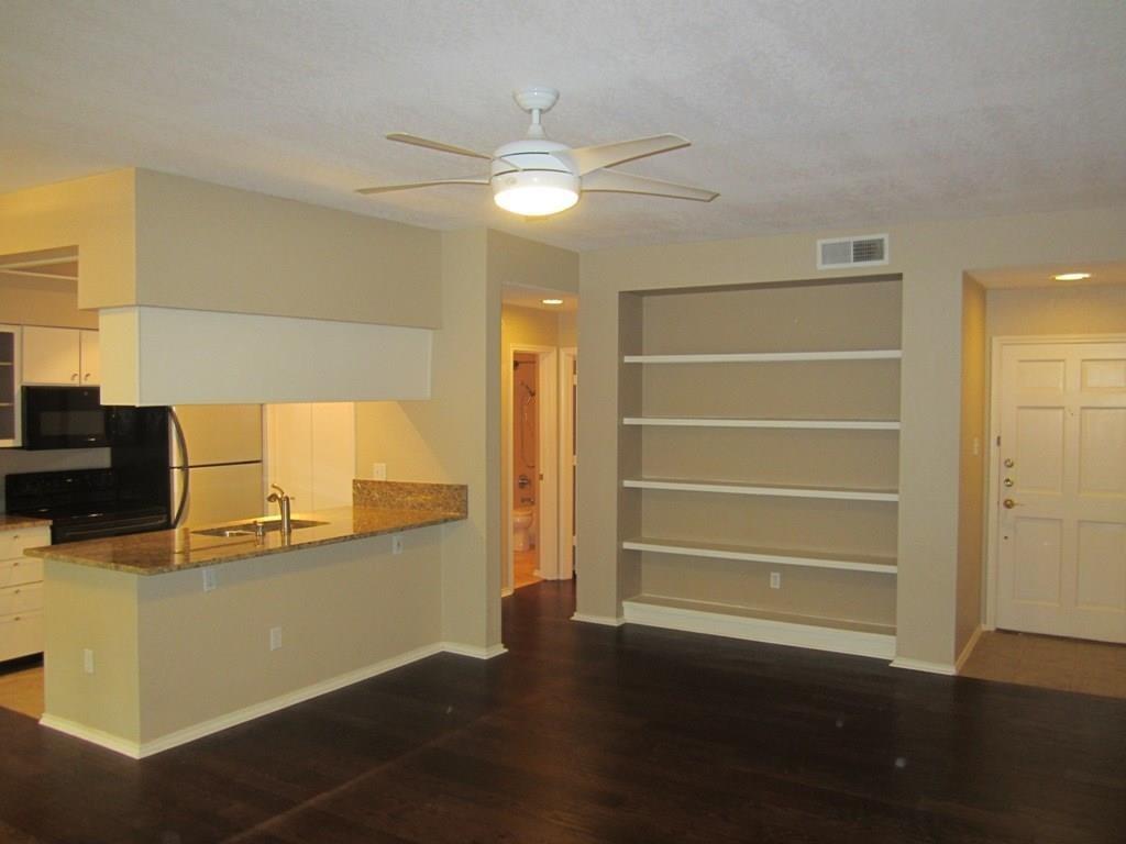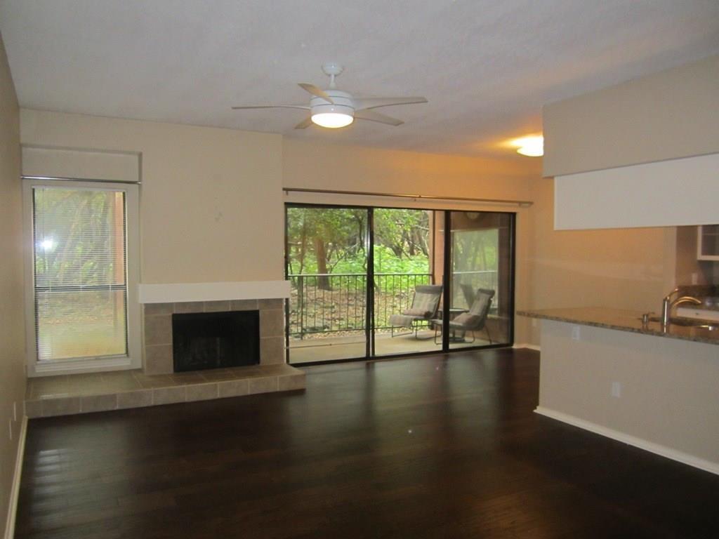 Welcome to your dream home! This beautifully updated first-floor condo, nestled in a tranquil complex with a private wooded view, will soon be available. Conveniently located near major roads, grocery stores, restaurants, medical facilities, the Arboretum, gyms, and downtown, this one-bedroom condo offers the perfect blend of peace and accessibility. Step inside to discover an open kitchen with granite counters, a cozy fireplace, and espresso-stained engineered wood flooring. Built-in bookshelves add character and functionality to the space. With no carpet in sight, maintenance is a breeze. The spacious bedroom features two closets, providing ample storage. Enjoy the serenity of your private patio, perfect for unwinding amidst the natural beauty of this wooded oasis. The complex boasts exceptional amenities, including a clubhouse, double pools, assigned parking, and scenic trails. Relax by the pool or take a leisurely stroll through the picturesque surroundings. This condo is a must-see!