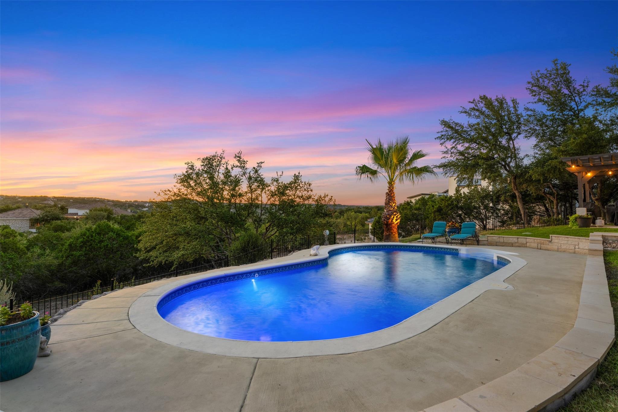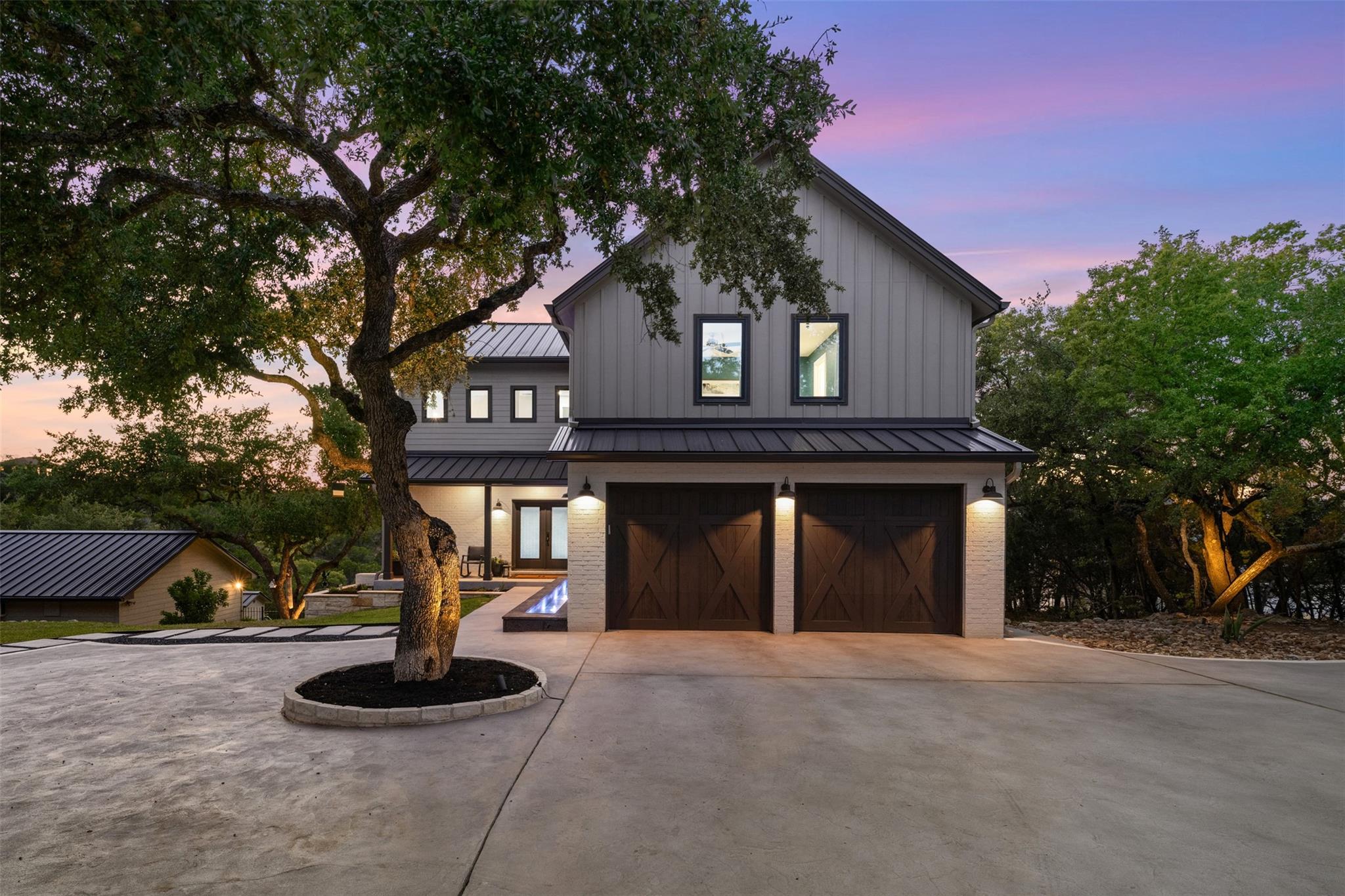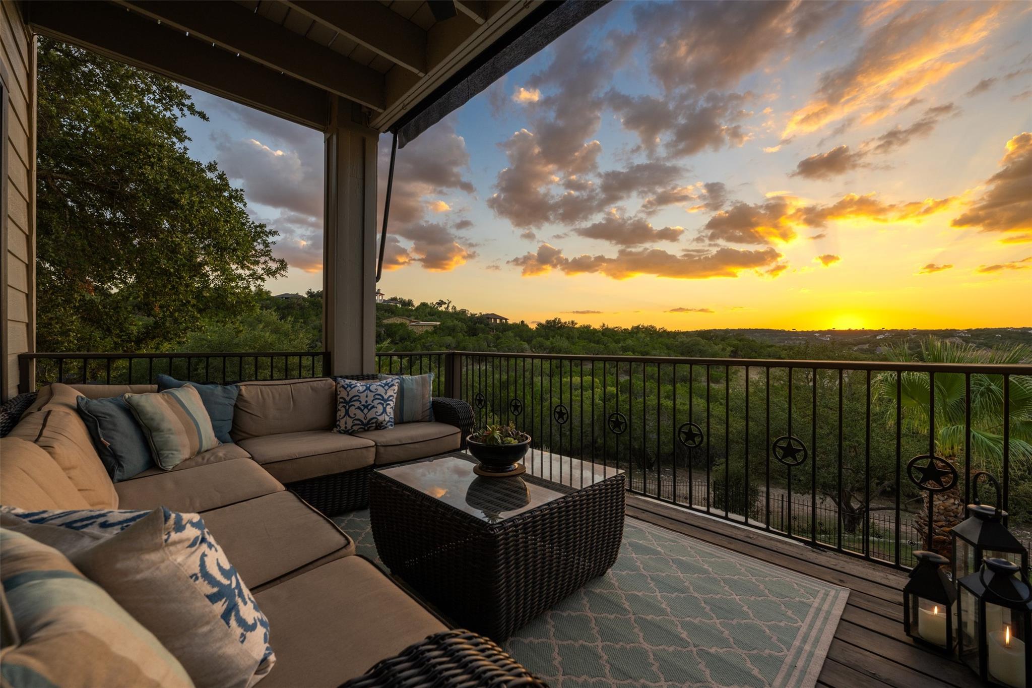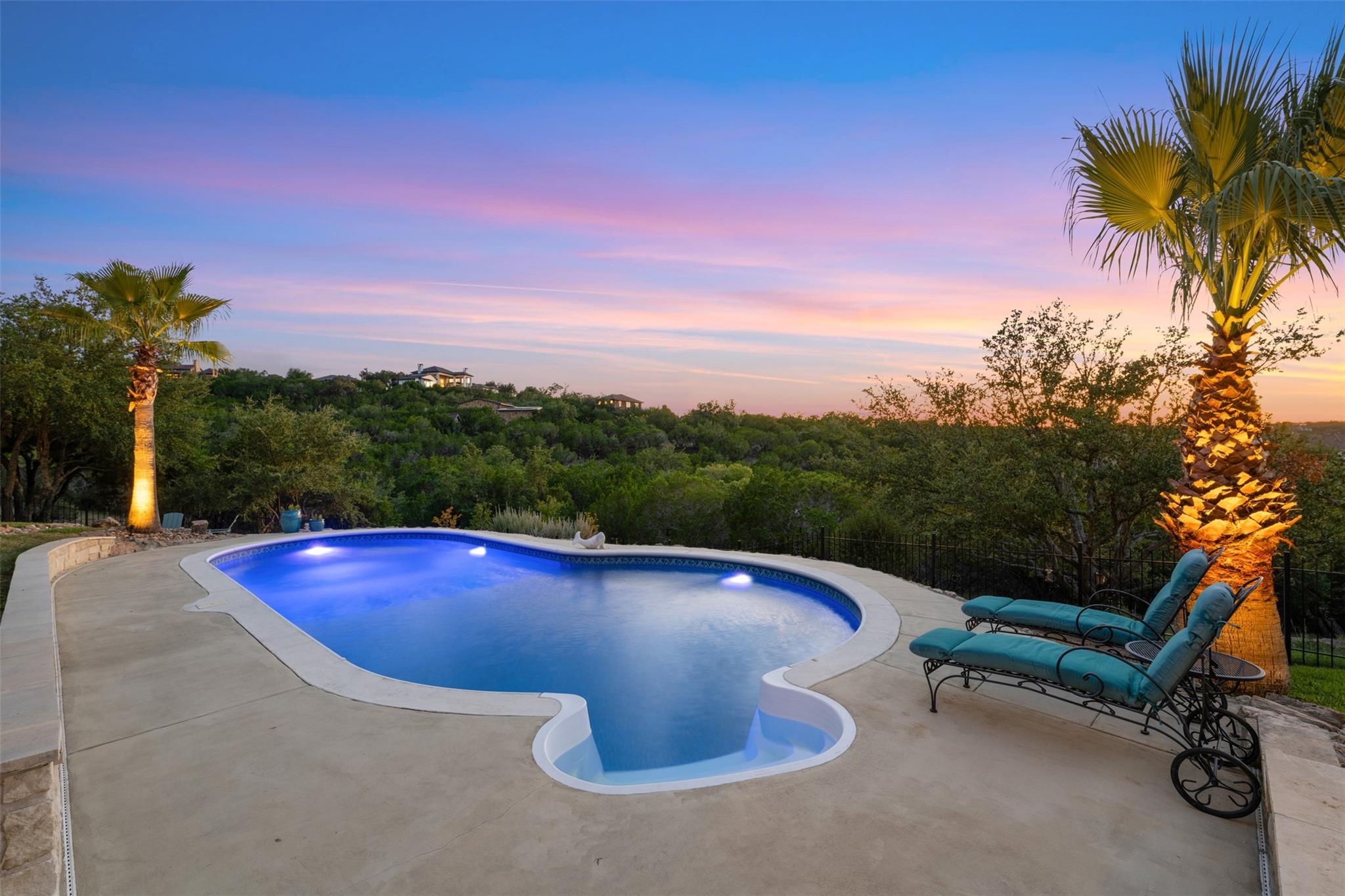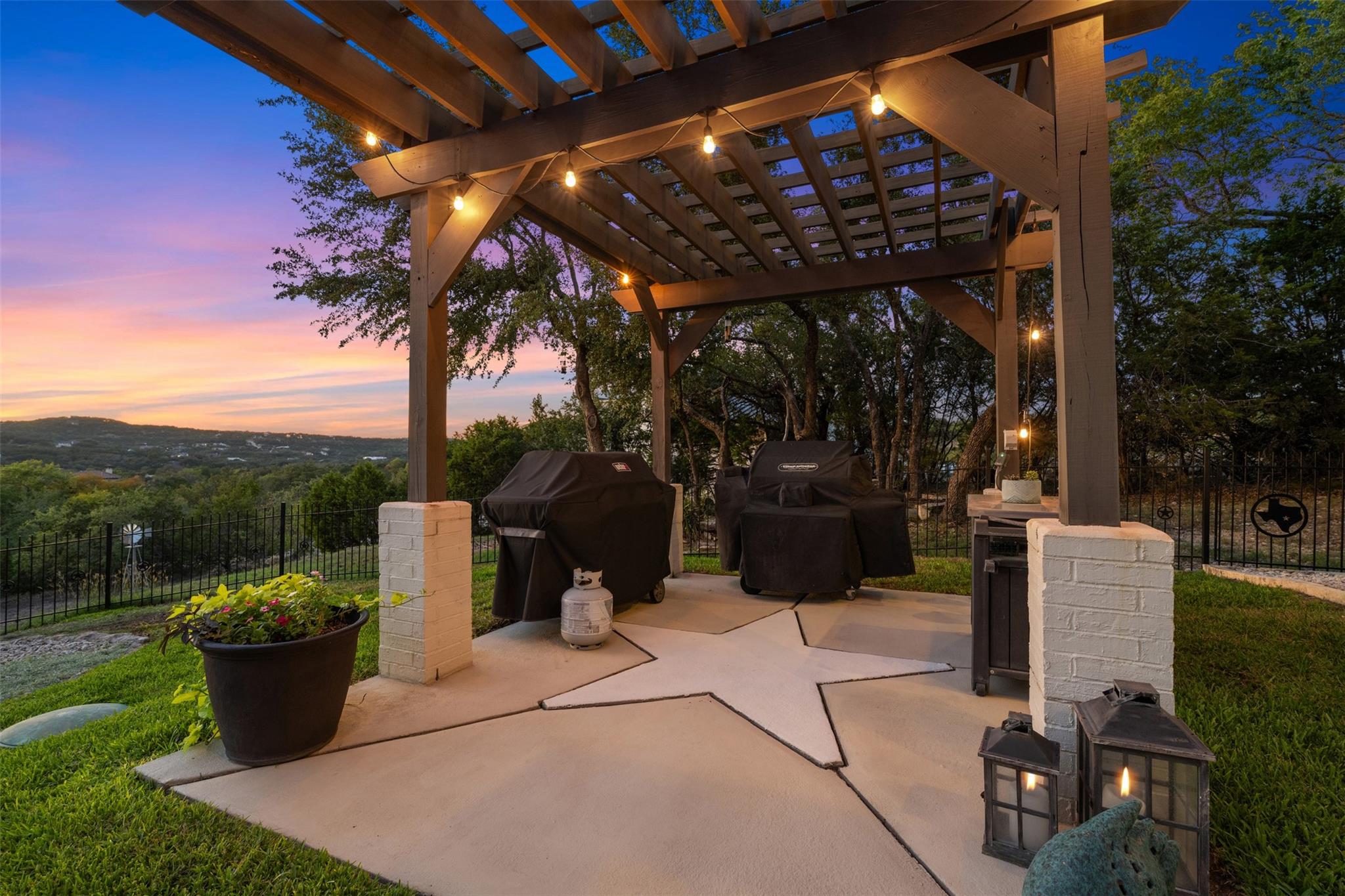 This Stunning Spicewood Estate Offers A Spectacular Show Of Color, Nature, & Beauty! This Hill Country Dream Home is tucked away on 1.5 acres at the end of a quiet cul-de-sac with fabulous curb appeal that provides an idyllic setting of majestic trees with sprawling branches framing the front of the home and a breathtaking backdrop of enchanting rolling hills as far as the eye can see. Exceptional architecture and designer details were carefully considered during the recent renovation including meticulous landscaping with an illuminating light display, a serene water fountain across the walkway to the front door, and an inviting porch that leads you inside to an open living, dining, and kitchen anchored by a wall of windows overlooking jaw dropping views and a backyard paradise. The outdoor oasis includes a resort-like saltwater pool, fountains, palm trees, a pergola for cookouts, and a cozy fire pit for stargazing on cool nights. Warmth and ambiance exudes throughout the main level with a wood burning fireplace. The chef's gourmet kitchen boasts top-of-the-line-appliances, a large center island, and a massive pantry. Relax on the balcony while watching colorful sunsets and an abundance of wildlife. Find serenity while listening to the sounds of trickling water from the fountains and a creek below. The romantic owner's retreat capitalizes on views from an outdoor seating area as well as windows above the oversized tub and shower in the spa-like en-suite bathroom. Football games and movies are bigger than life in a theater room equipped with surround sound and a 110' screen. A HEOS system was installed with multiple speakers throughout to allow music to be played anywhere inside or outside the home. A second 2.5 car garage with an AC unit was built to house multiple cars, a workshop, a gym, or can be easily transformed into a guest quarters. This 5 bed/4.5 bath home is located so close to town, yet feels miles away. It is truly one of a kind! 1.7 tax rate. LTISD.