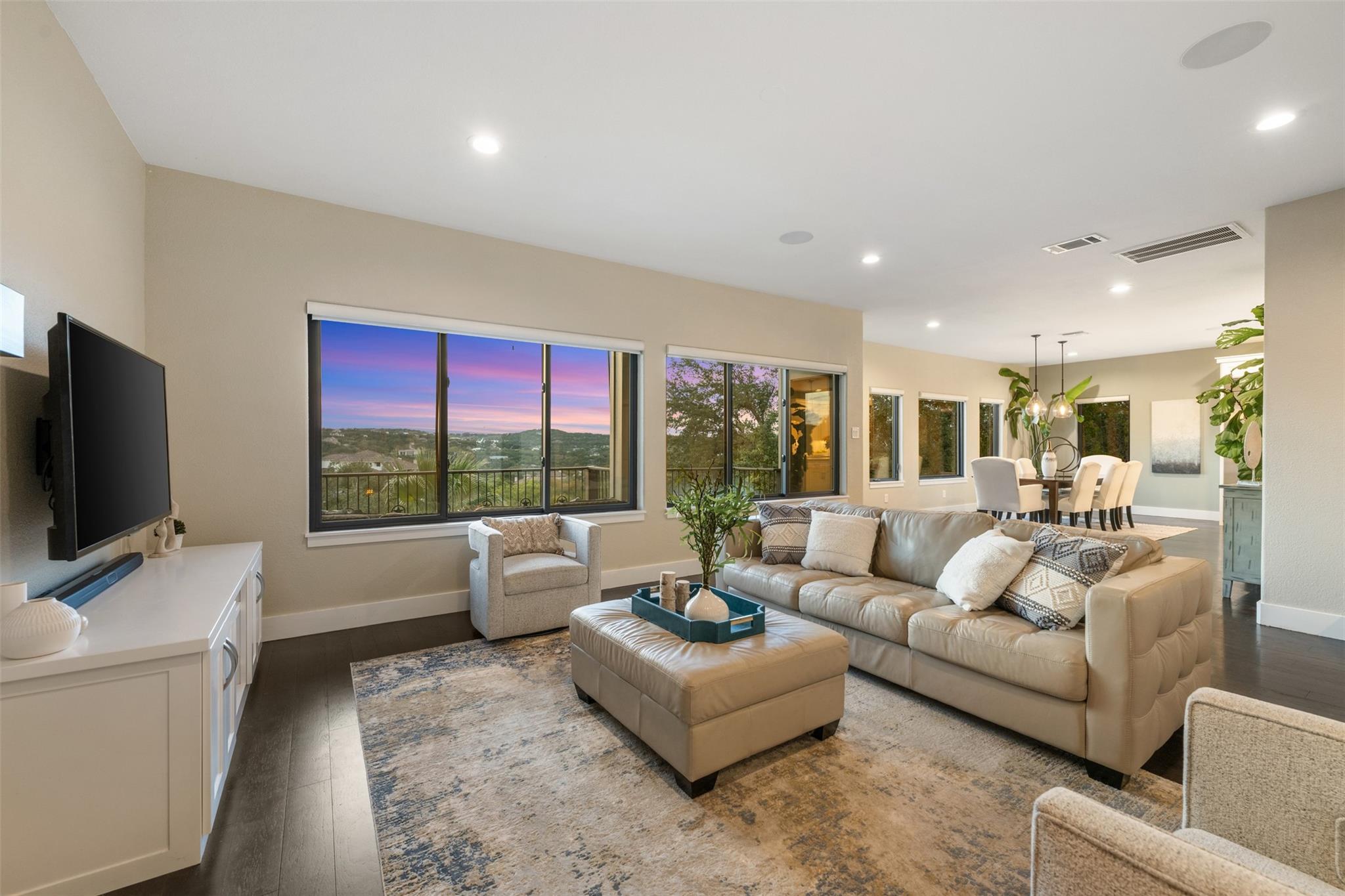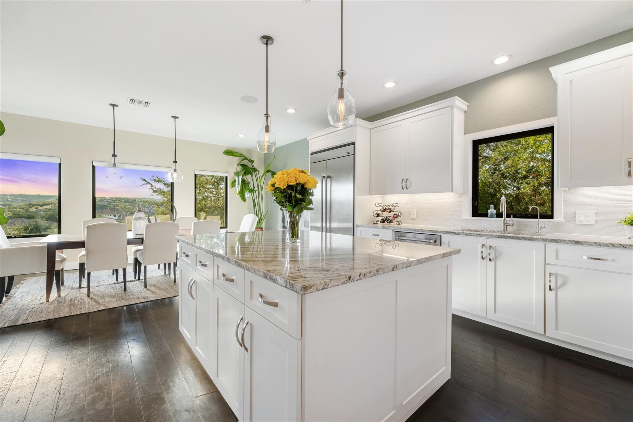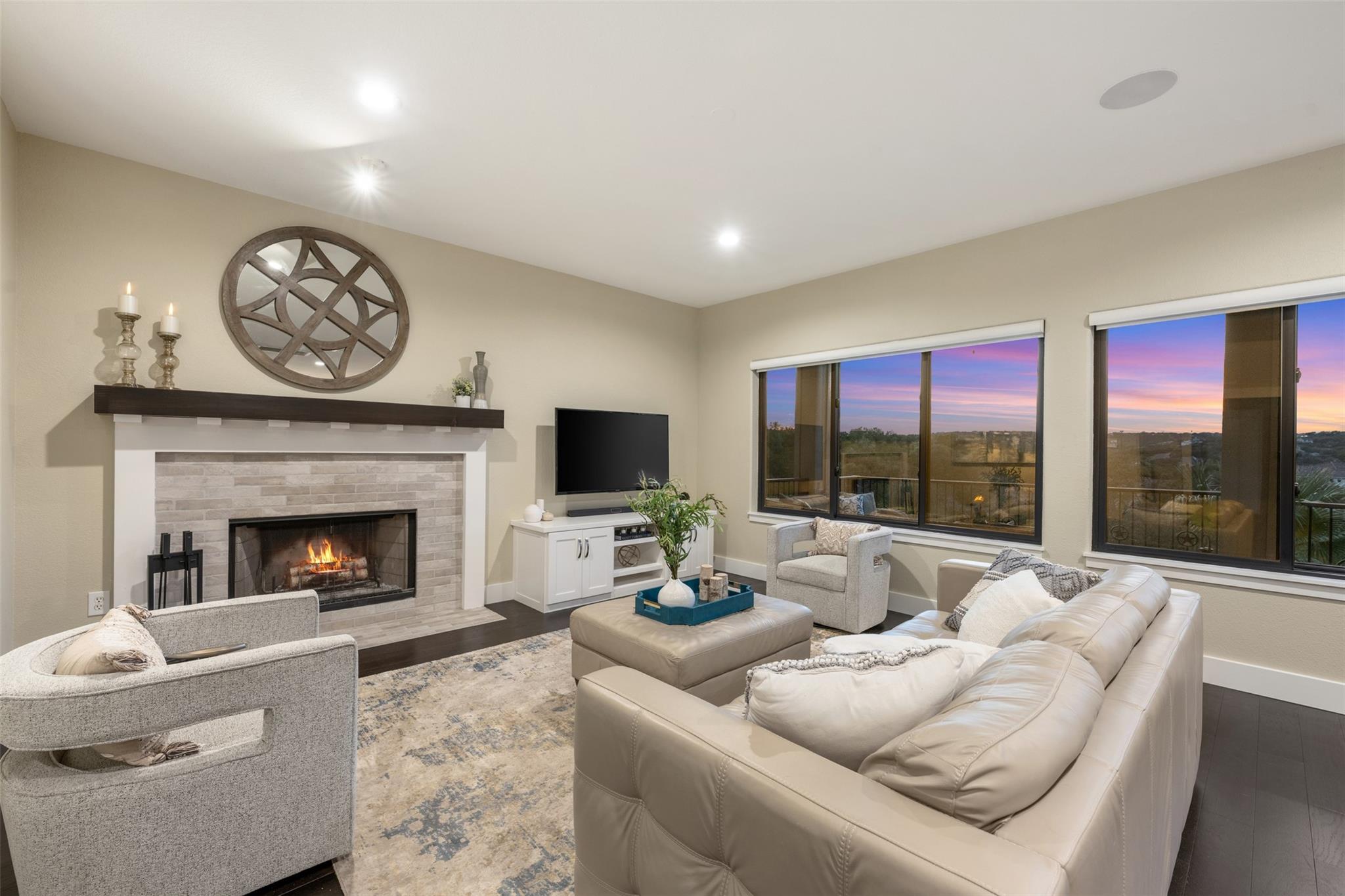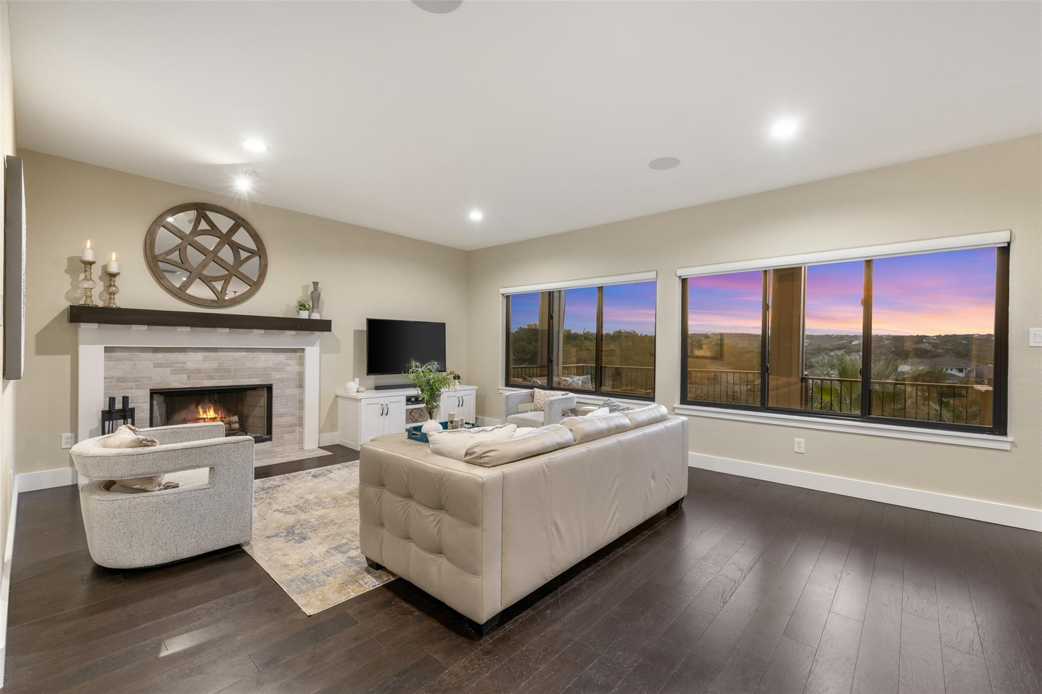 This Stunning Spicewood Estate Offers A Spectacular Show Of Color, Nature, & Beauty! This Hill Country Dream Home is tucked away on 1.5 acres at the end of a quiet cul-de-sac with fabulous curb appeal that provides an idyllic setting of majestic trees with sprawling branches framing the front of the home and a breathtaking backdrop of enchanting rolling hills as far as the eye can see. Exceptional architecture and designer details were carefully considered during the recent renovation including meticulous landscaping with an illuminating light display, a serene water fountain across the walkway to the front door, and an inviting porch that leads you inside to an open living, dining, and kitchen anchored by a wall of windows overlooking jaw dropping views and a backyard paradise. The outdoor oasis includes a resort-like saltwater pool, fountains, palm trees, a pergola for cookouts, and a cozy fire pit for stargazing on cool nights. Warmth and ambiance exudes throughout the main level with a wood burning fireplace. The chef's gourmet kitchen boasts top-of-the-line-appliances, a large center island, and a massive pantry. Relax on the balcony while watching colorful sunsets and an abundance of wildlife. Find serenity while listening to the sounds of trickling water from the fountains and a creek below. The romantic owner's retreat capitalizes on views from an outdoor seating area as well as windows above the oversized tub and shower in the spa-like en-suite bathroom. Football games and movies are bigger than life in a theater room equipped with surround sound and a 110' screen. A HEOS system was installed with multiple speakers throughout to allow music to be played anywhere inside or outside the home. A second 2.5 car garage with an AC unit was built to house multiple cars, a workshop, a gym, or can be easily transformed into a guest quarters. This 5 bed/4.5 bath home is located so close to town, yet feels miles away. It is truly one of a kind! 1.7 tax rate. LTISD.