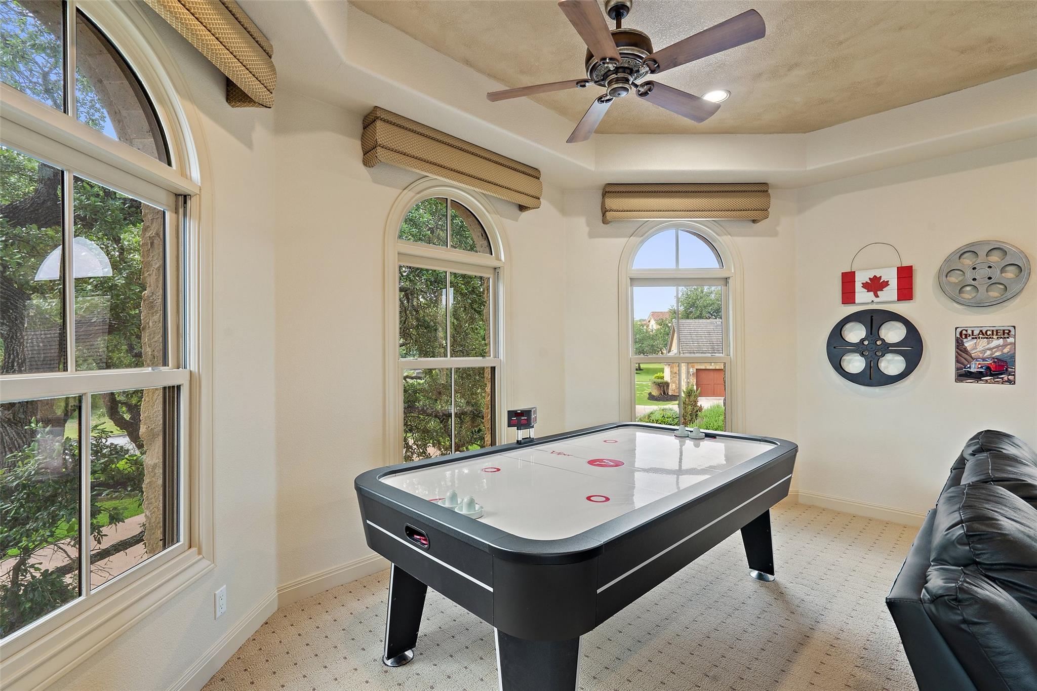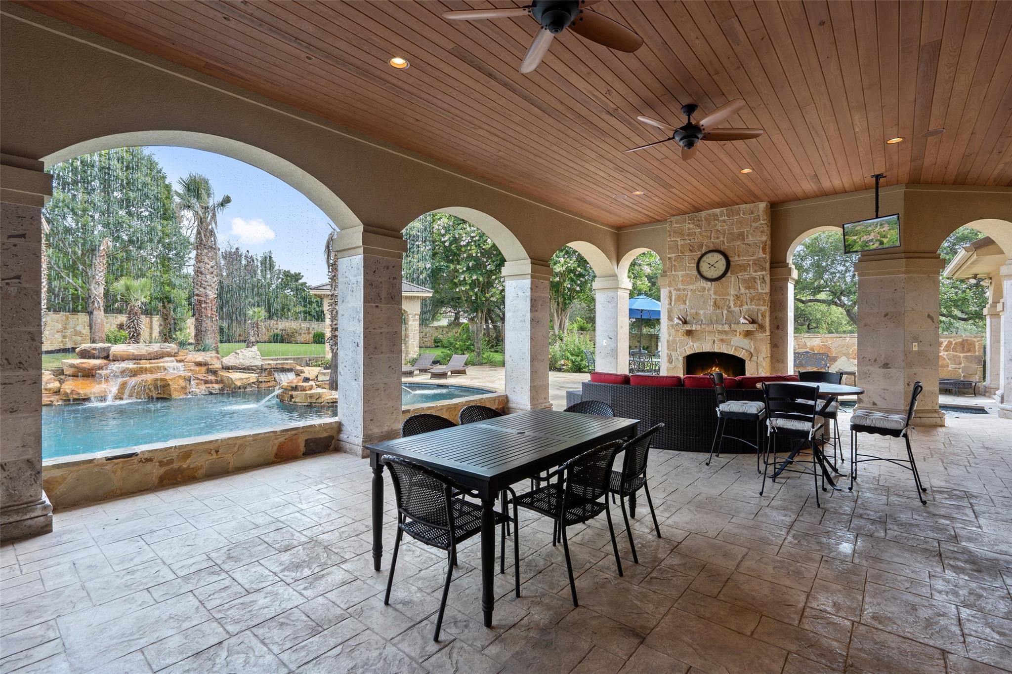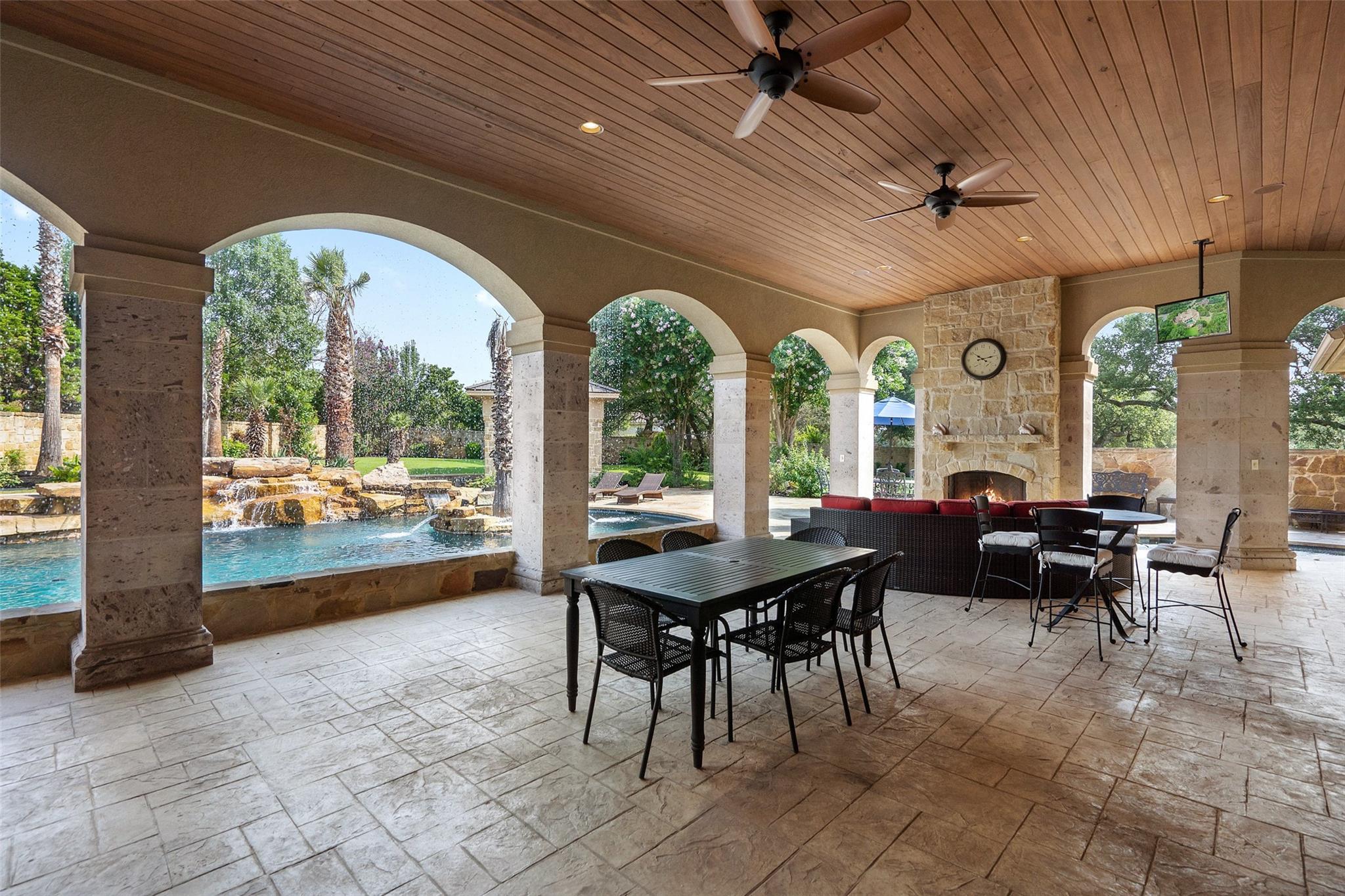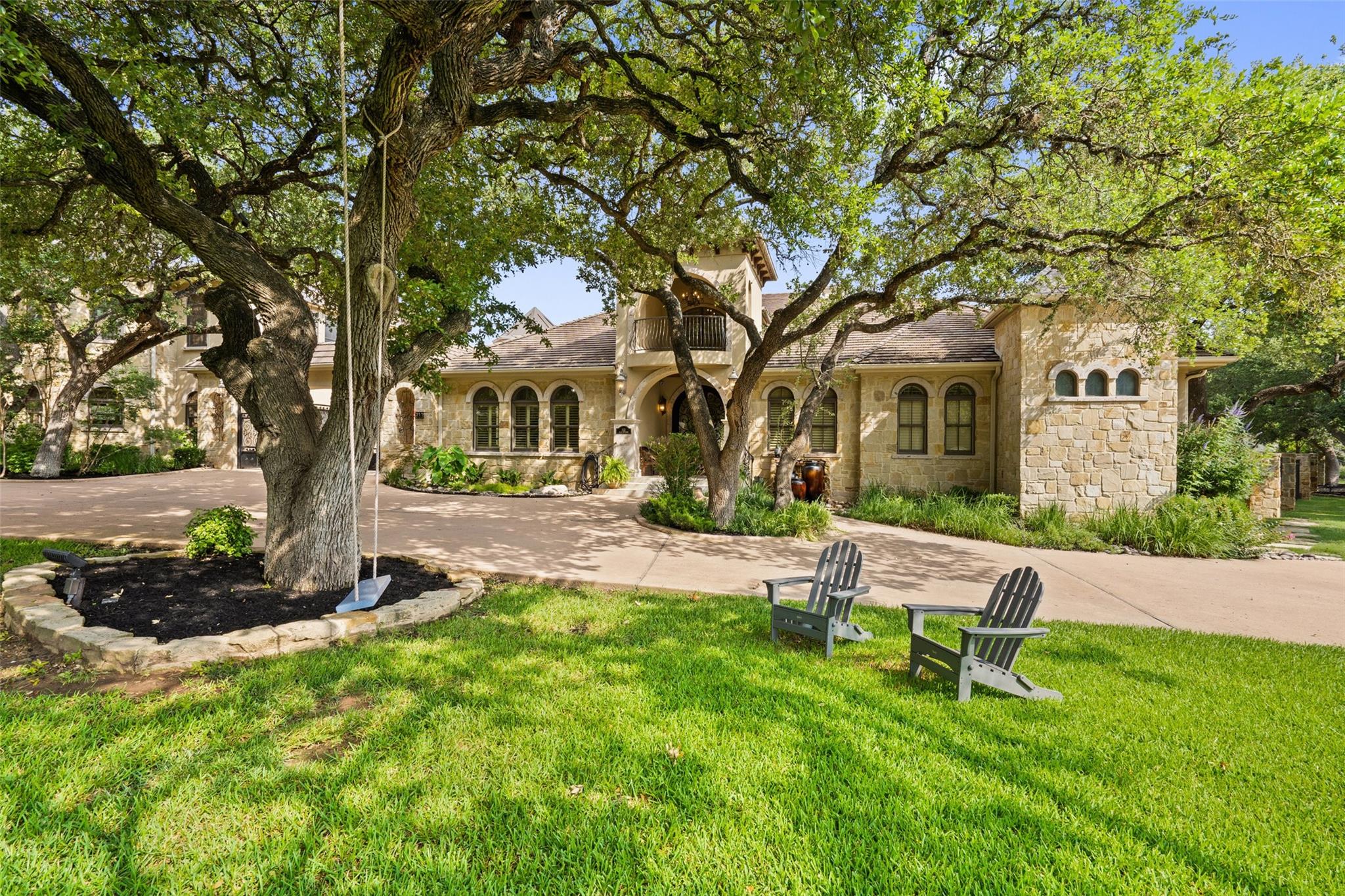 **Multiple offers received...Seller is reviewing offers and will make a decision by 5PM Saturday (1/13)** Sprawling estate home on private, 1+ acre flat lot in Bella Montagna Lakeway. Brilliant architecture by Tim Boatright, and quality construction by HP Builders. This property was built for entertaining and features many 2023 updates. 4 car garage with iron doors and porte-cochere/motor court parking to accommodate many cars. Kitchen is open to dining and living w/ 48" Sub Zero/wolf appliance package including refrigerator drawers and ice, working island, and abundant custom floor to ceiling cabinets. Walk in wine cooler with custom racks. Take in the views of pool and backyard through butted clear glass windows. Resort style waterfall pool with roof rain waterfall. Outdoor summer kitchen with grill, storage, and 1/2 bath. Look out tower to view the grounds. Upper level game room has plenty of space for games and activities and features a kitchenette with built in refrigerator and cooktop. Luxurious master suite wing w private spa access, and office with sitting room. 2 additional bedrooms on main level with their own baths. 1 bedroom up w party game room, and don't miss the bonus room! Bella Montagna is a gated community, centrally located close to Lake Travis and Lakeway amenities.