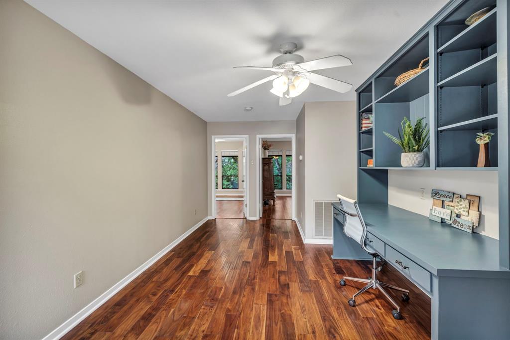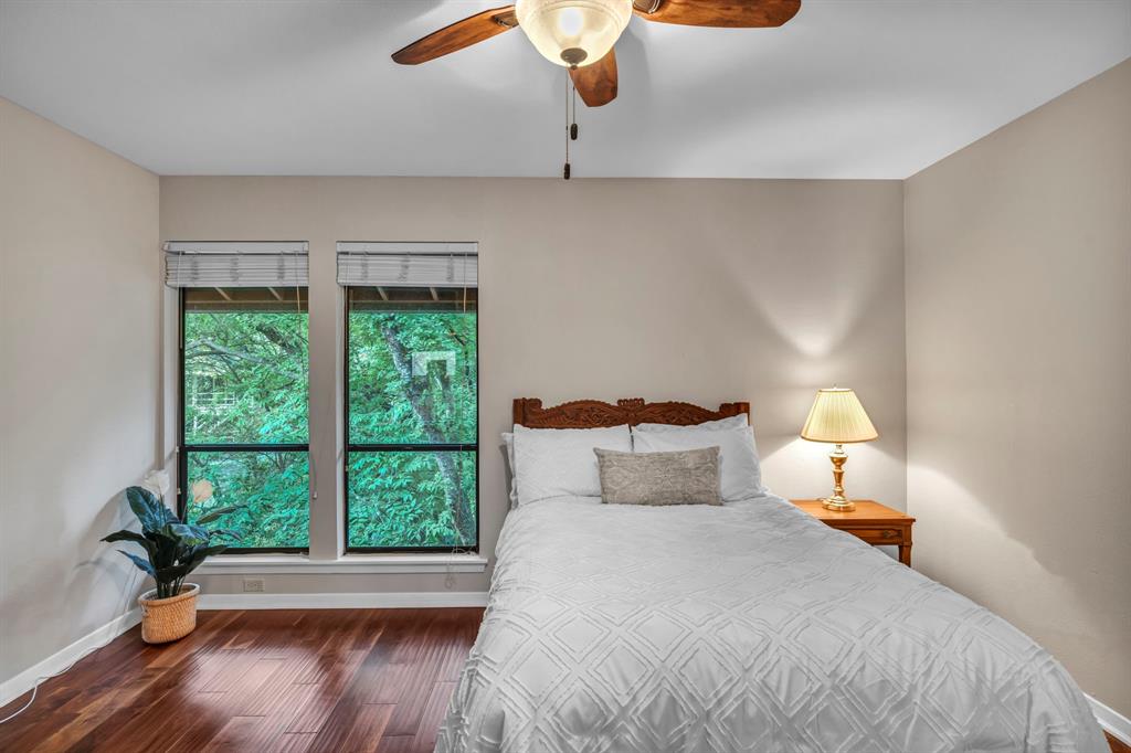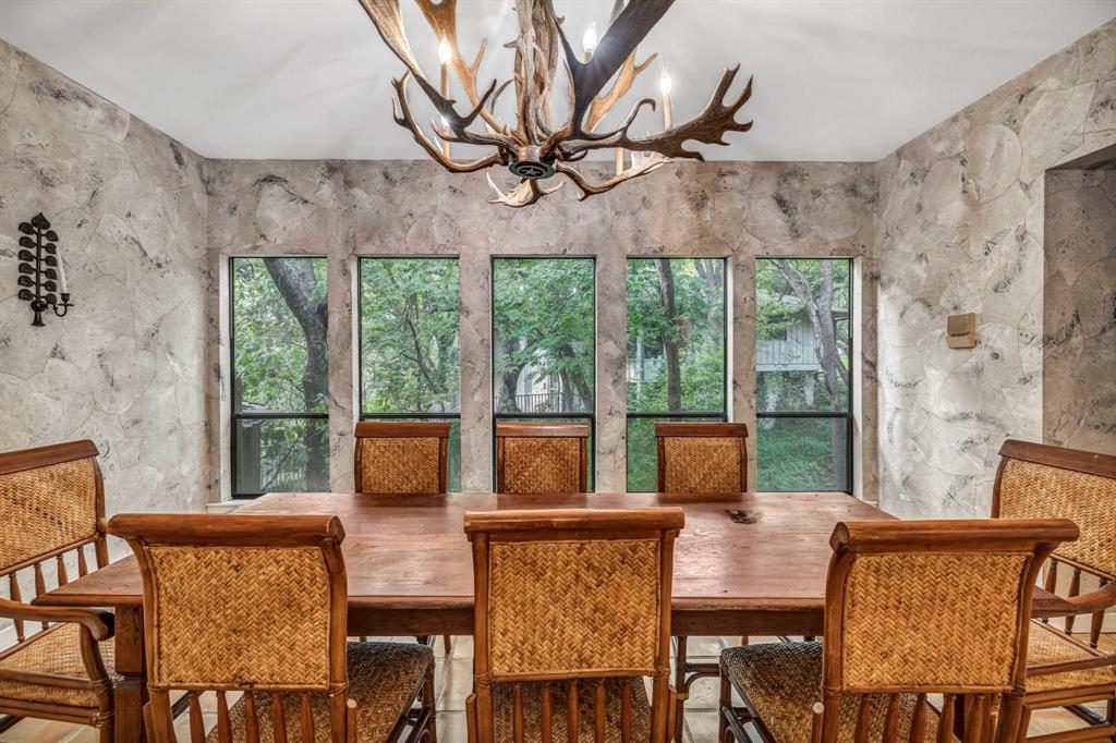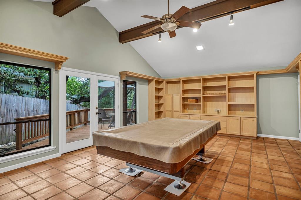 In the heart of Tarrytown, this is a must see, Rustic Southwest special designed by Leon Chandler and situated on an amazing private, tree covered, cul de sac lot, that sides to a beautiful seasonal creek! As you enter this home, you are treated by a picturesque viewing room that overlooks the creek. Expansive great room w/ brick wall fireplace and beautiful wood and Saltillo tile throughout. Calming, private patio located right off of the great room! Gorgeous kitchen with stainless steel appliances (gas oven range), wood block kitchen island, and numerous pantries. Heading upstairs you'll pass a gigantic game room, with a brand new private patio! Upstairs will contain all secondary beds and the primary bedroom. 2 bedrooms will share a Jack 'n' Jill bathroom. The remaining bedroom is a guest suite w/ full bath (all bedrooms have walk-in closets). Primary bedroom is gorgeous w/ private balcony, vaulted ceilings and a huge primary bath w/jetted tub and shower! Custom cabinetry used for vanity areas. Huge walk in closet with custom shelving. Take advantage of the private backyard that is filled with beautiful mature trees and vegetation. This is truly a gem in the heart of Tarrytown.