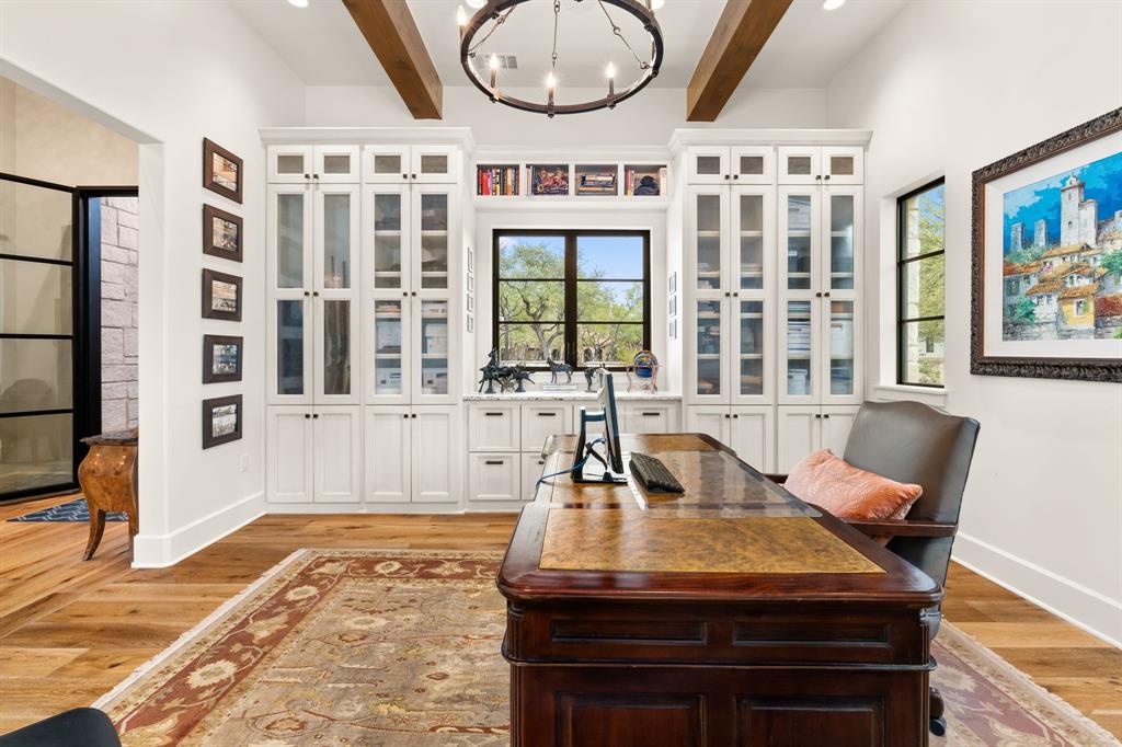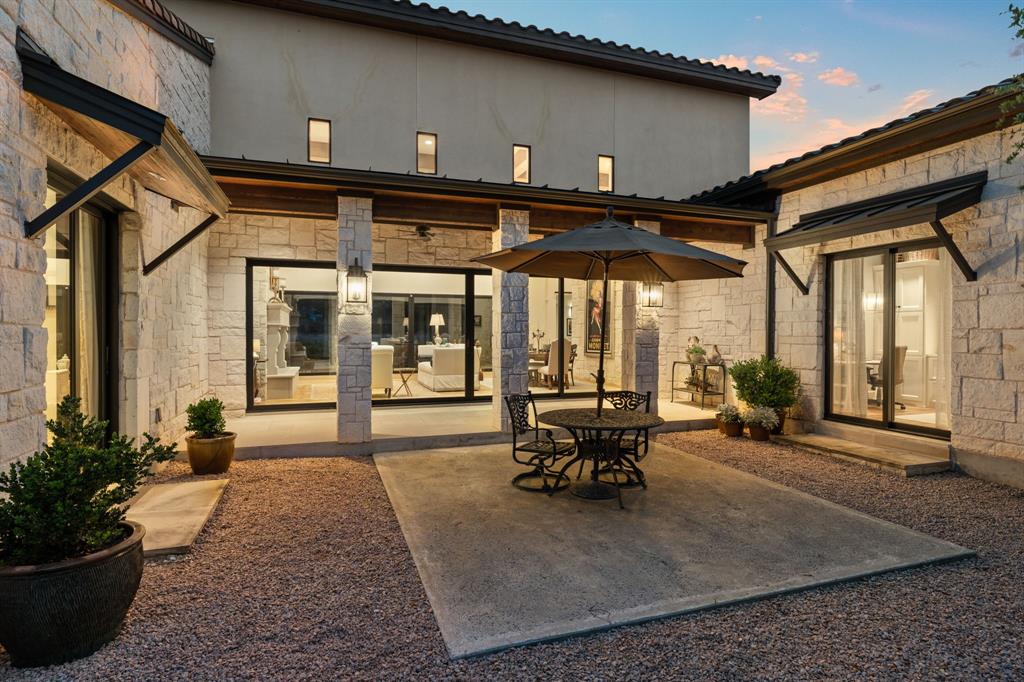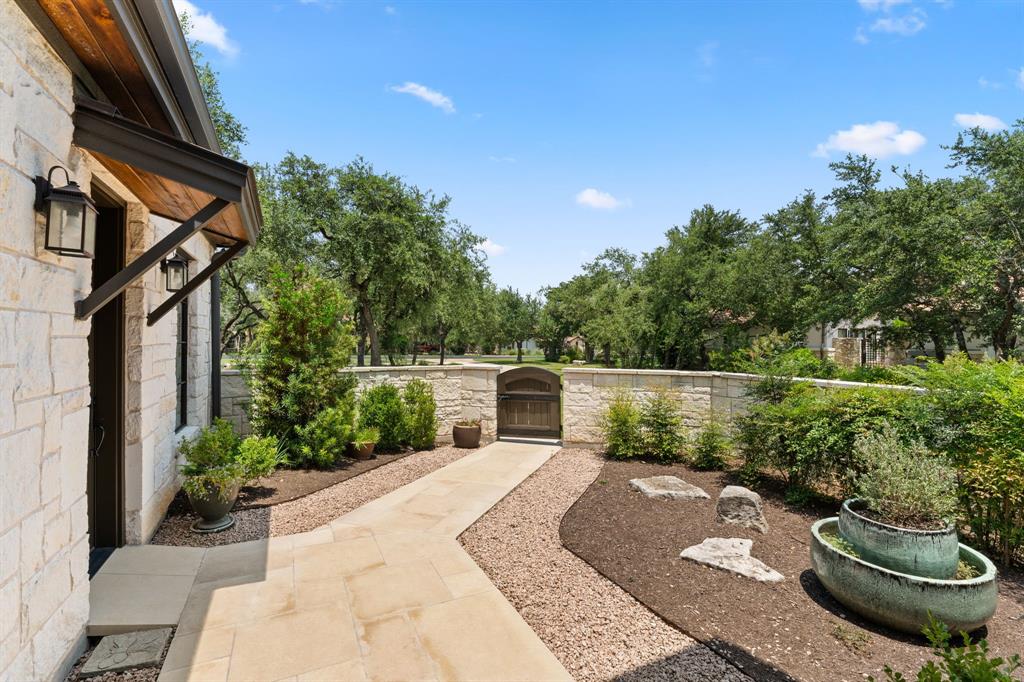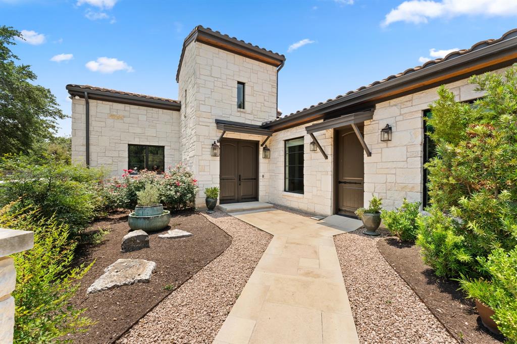 An extraordinary level of craftsmanship and an incredibly inviting ambience elevates this Barton Creek estate into a league of its own.This stunning, single story custom home nestled on 1.43 acres of heritage oak trees seamlessly blends modern hill country design with European inspired architecture to create a home that even the most discerning buyer will fall in love with.The rough faced stone turret sentinels establish a dominant element above the entrance, setting the tone w 3 stonewall courtyards, The entrance sets the tone w a private courtyard, beautiful wood doors w intricate details and master craftsmanship. A standout feature in the entryway is the tower, which creates a striking focal point while adding unique charm. The open floor plan, expansive space, and seamless flow between indoor and outdoor living spaces creates the perfect setting to entertain large groups but also feels cozy for daily living. The interior features over 4700sf w custom stone fireplaces, 18 ft beamed ceiling gorgeous lighting, 2 24ft sliding glass doors that open to both courtyards and an abundance of natural light. The gourmet kitchen is a chef’s dream come true , w a large granite island, high-end appliances, custom glazed cabinetry, butlers pantry and breakfast area. The primary suite provides privacy and tranquility with stunning views of the backyard on the 6th hole of the Fazio Canyons Golf Course , as well as a spa-inspired bathroom to unwind from the day. The well thought out floor plan boasts an I-shaped footprint ,two offices, media room, plus a casita with private entrance and kitchenette. Located in the gated community Calera of Barton Creek, this breathtaking masterpiece offers the perfect balance of luxury, comfort and style. Members have access to elite country club amenities such as 4 award-winning golf courses, tennis, wellness, fitness center and a robust social calendar! In addition to the private club amenities, the Omni BC&Spa provides members w a Mokara Spa.