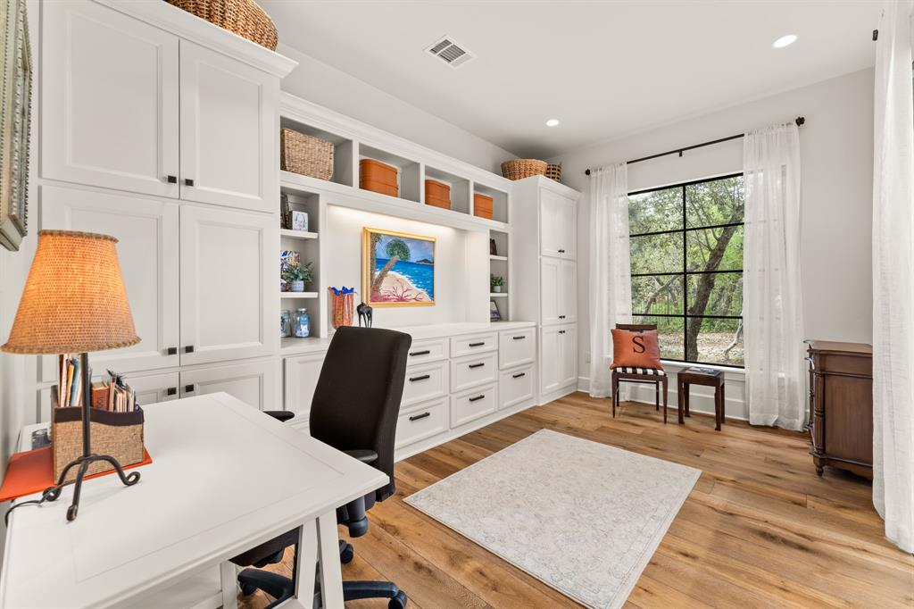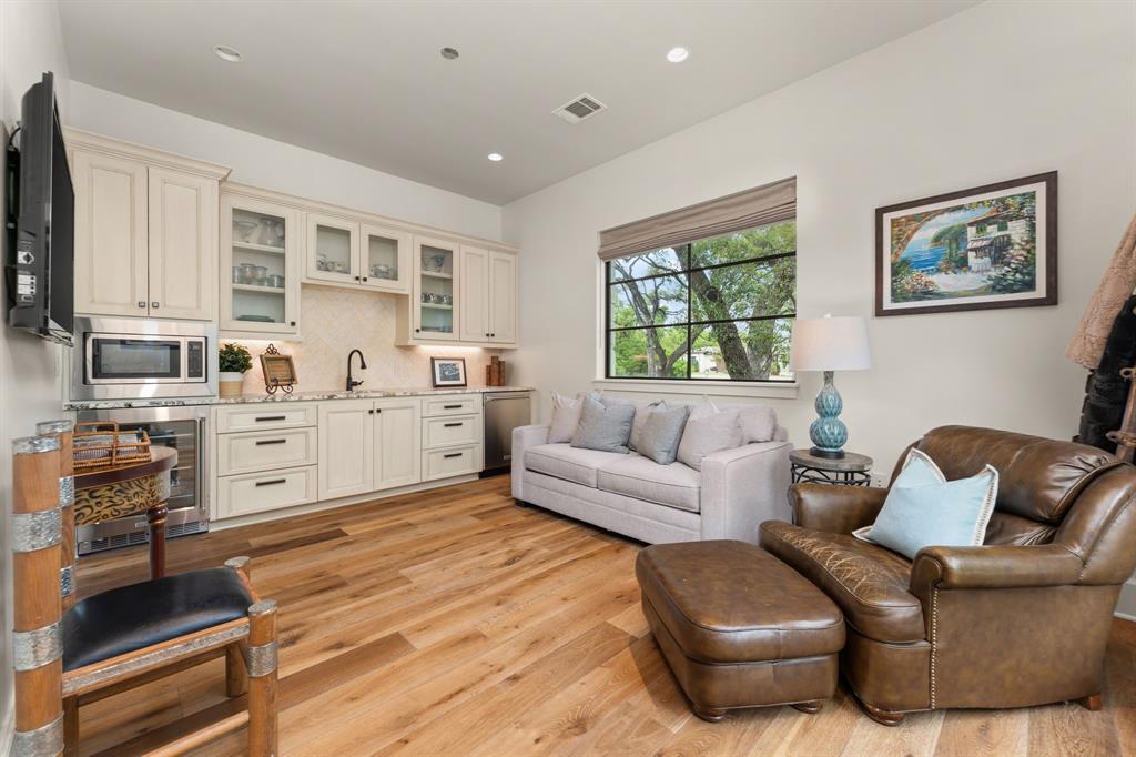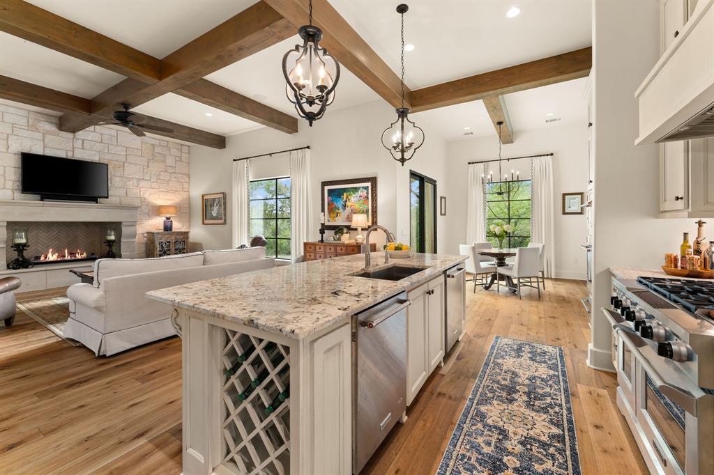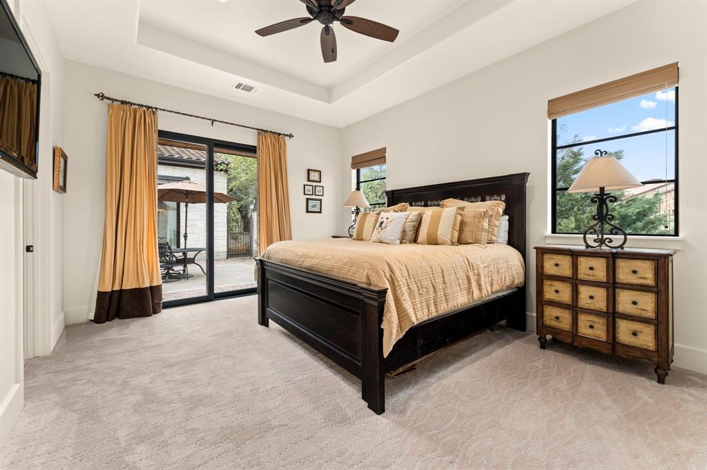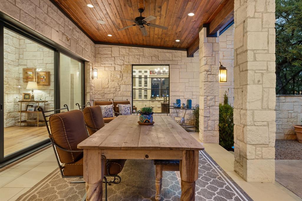 An extraordinary level of craftsmanship and an incredibly inviting ambience elevates this Barton Creek estate into a league of its own.This stunning, single story custom home nestled on 1.43 acres of heritage oak trees seamlessly blends modern hill country design with European inspired architecture to create a home that even the most discerning buyer will fall in love with.The rough faced stone turret sentinels establish a dominant element above the entrance, setting the tone w 3 stonewall courtyards, The entrance sets the tone w a private courtyard, beautiful wood doors w intricate details and master craftsmanship. A standout feature in the entryway is the tower, which creates a striking focal point while adding unique charm. The open floor plan, expansive space, and seamless flow between indoor and outdoor living spaces creates the perfect setting to entertain large groups but also feels cozy for daily living. The interior features over 4700sf w custom stone fireplaces, 18 ft beamed ceiling gorgeous lighting, 2 24ft sliding glass doors that open to both courtyards and an abundance of natural light. The gourmet kitchen is a chef’s dream come true , w a large granite island, high-end appliances, custom glazed cabinetry, butlers pantry and breakfast area. The primary suite provides privacy and tranquility with stunning views of the backyard on the 6th hole of the Fazio Canyons Golf Course , as well as a spa-inspired bathroom to unwind from the day. The well thought out floor plan boasts an I-shaped footprint ,two offices, media room, plus a casita with private entrance and kitchenette. Located in the gated community Calera of Barton Creek, this breathtaking masterpiece offers the perfect balance of luxury, comfort and style. Members have access to elite country club amenities such as 4 award-winning golf courses, tennis, wellness, fitness center and a robust social calendar! In addition to the private club amenities, the Omni BC&Spa provides members w a Mokara Spa.