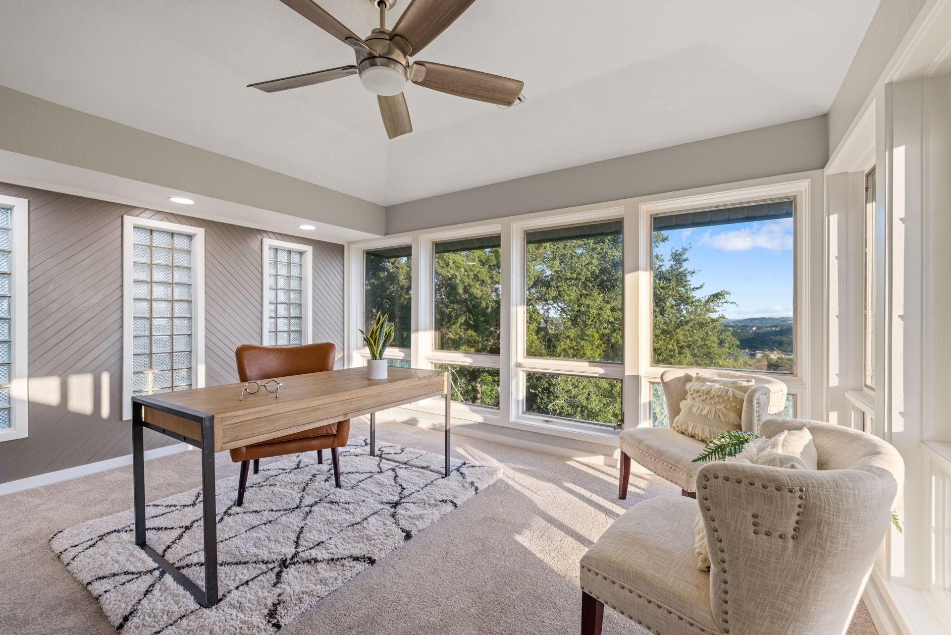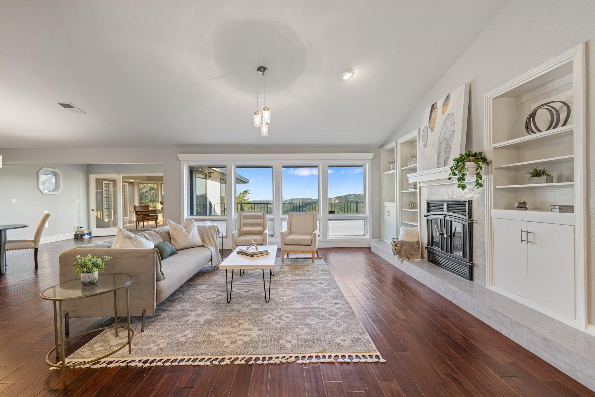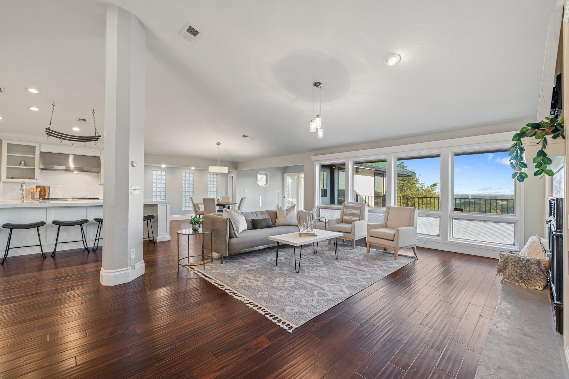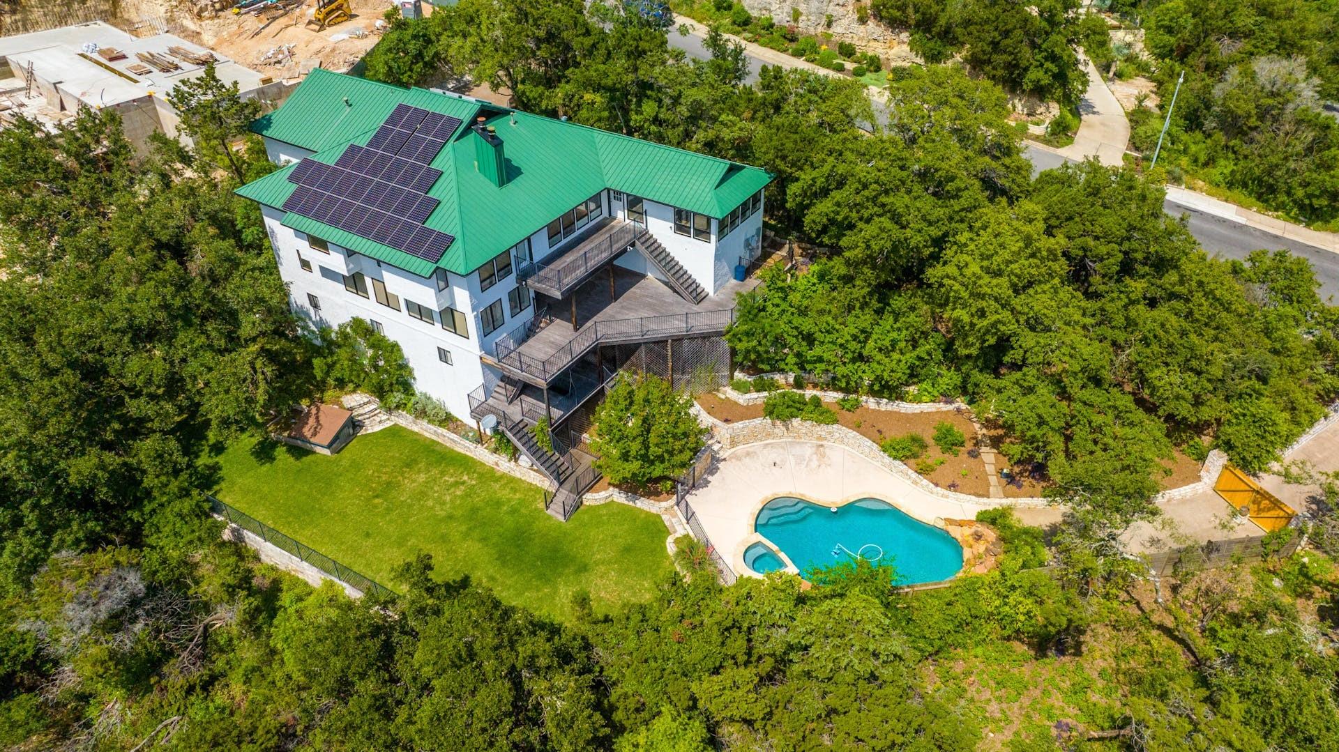 One-of-a-kind hillside home in NW Austin with stunning Downtown Austin and Hill Country views across three levels. Over 5000 sqft of conditioned space, move-in ready with a chef's kitchen, a main-level primary suite, and a second-level media room with professional golf simulator. The third lower level offers versatility as a guest suite, home gym, or short term rental. Backyard features pool, terraced decks, native landscaping, and large trees. Second driveway for boat storage or additional parking. Perfect for those looking for privacy and convenience, with easy access to major roads, world-class golf courses, greenbelt and top-tier schools. Rare find with great potential!