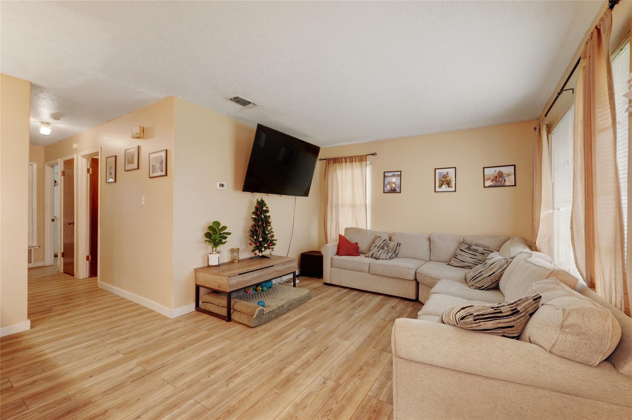 Experience refined living in this strategically located property near I-35 and E. Rundburg Lane. Close to retail, restaurants, and three elementary schools, this home boasts wood laminate flooring, stainless steel appliances, and an included washer/dryer. Take a moment to unwind on the uncovered back patio, offering a serene outdoor retreat. With a double garage and driveway, parking is hassle-free for both residents and guests. Embrace sustainable living with solar panels and a net-metering arrangement. 12-24 mos lease. Pets welcome.