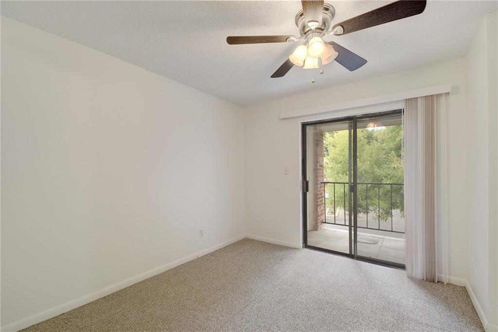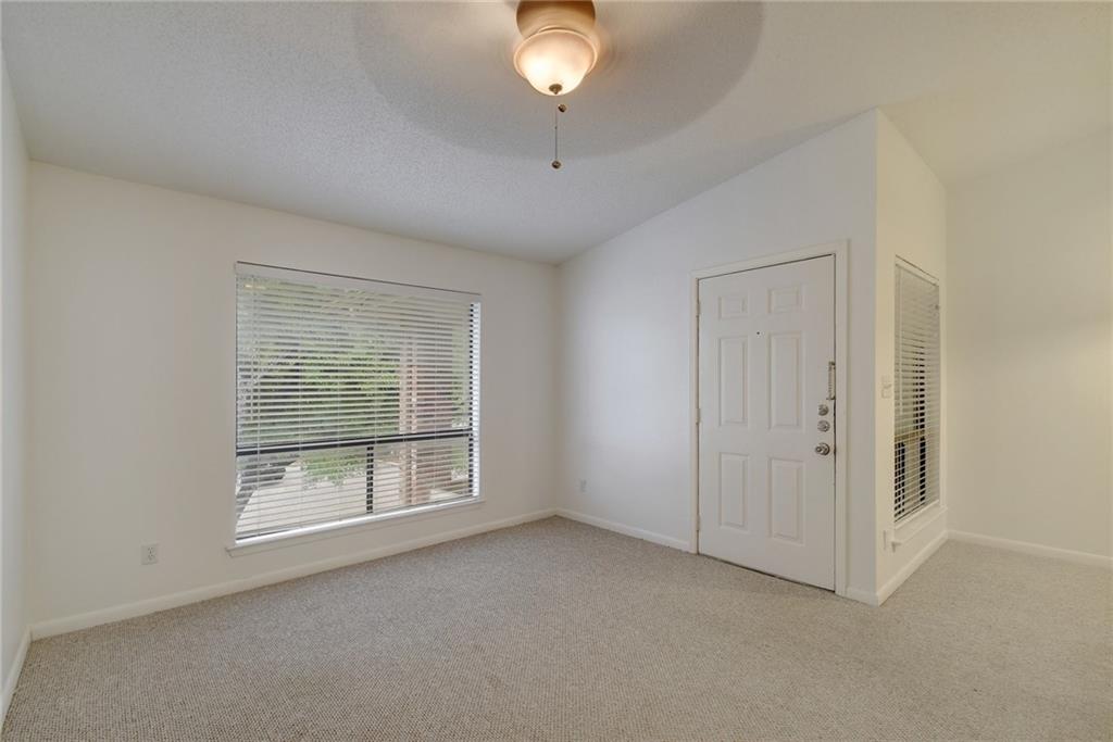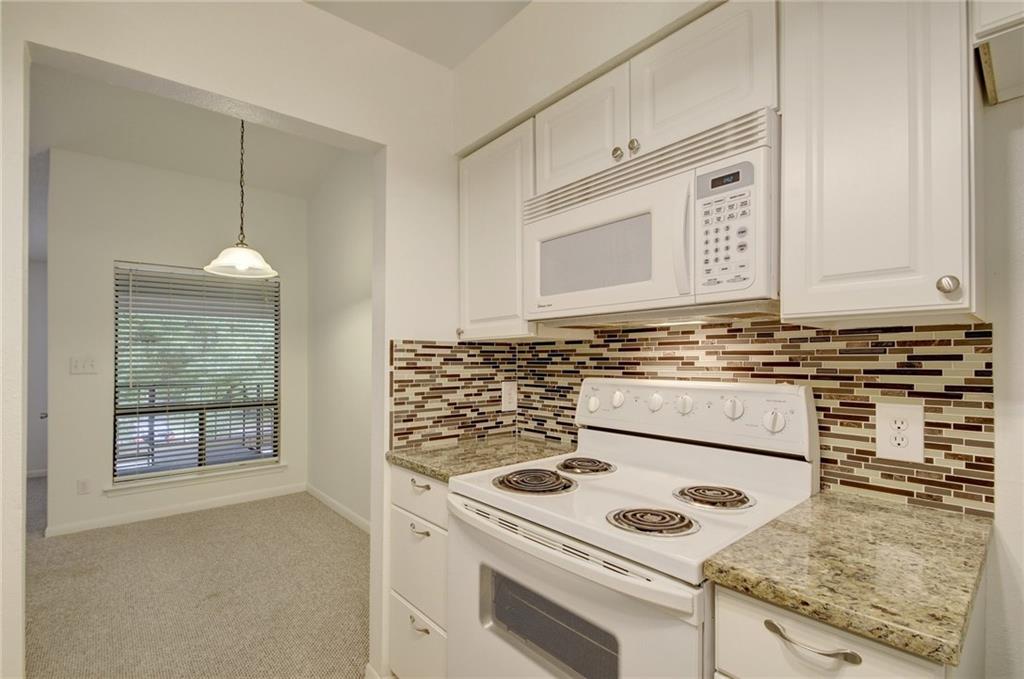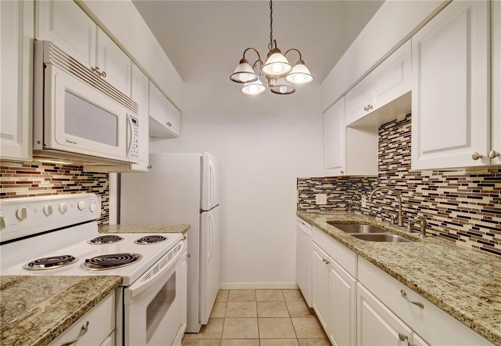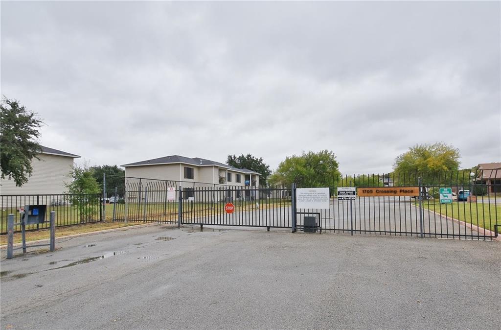 Spacious TWO bedroom TWO bath in gated community in prime location! Bright & airy living area with vaulted ceiling and large picture window providing lots of natural sunlight. Dedicated dining area and updated kitchen with granite counters and tile flooring. Carpet replaced throughout unit with laminate, NO CARPET!! Updated bathroom with new vanity and tile. Tons of storage throughout! Large primary with balcony & MORE storage! Gated community, easy access to downtown and IH-35. Washer & Dryer INCLUDED! Cant beat this price this close to downtown!