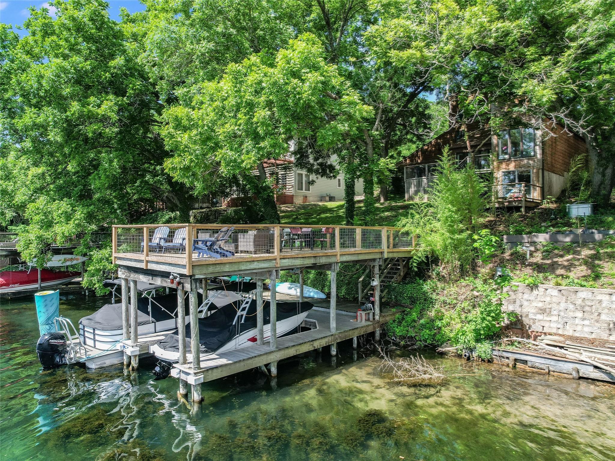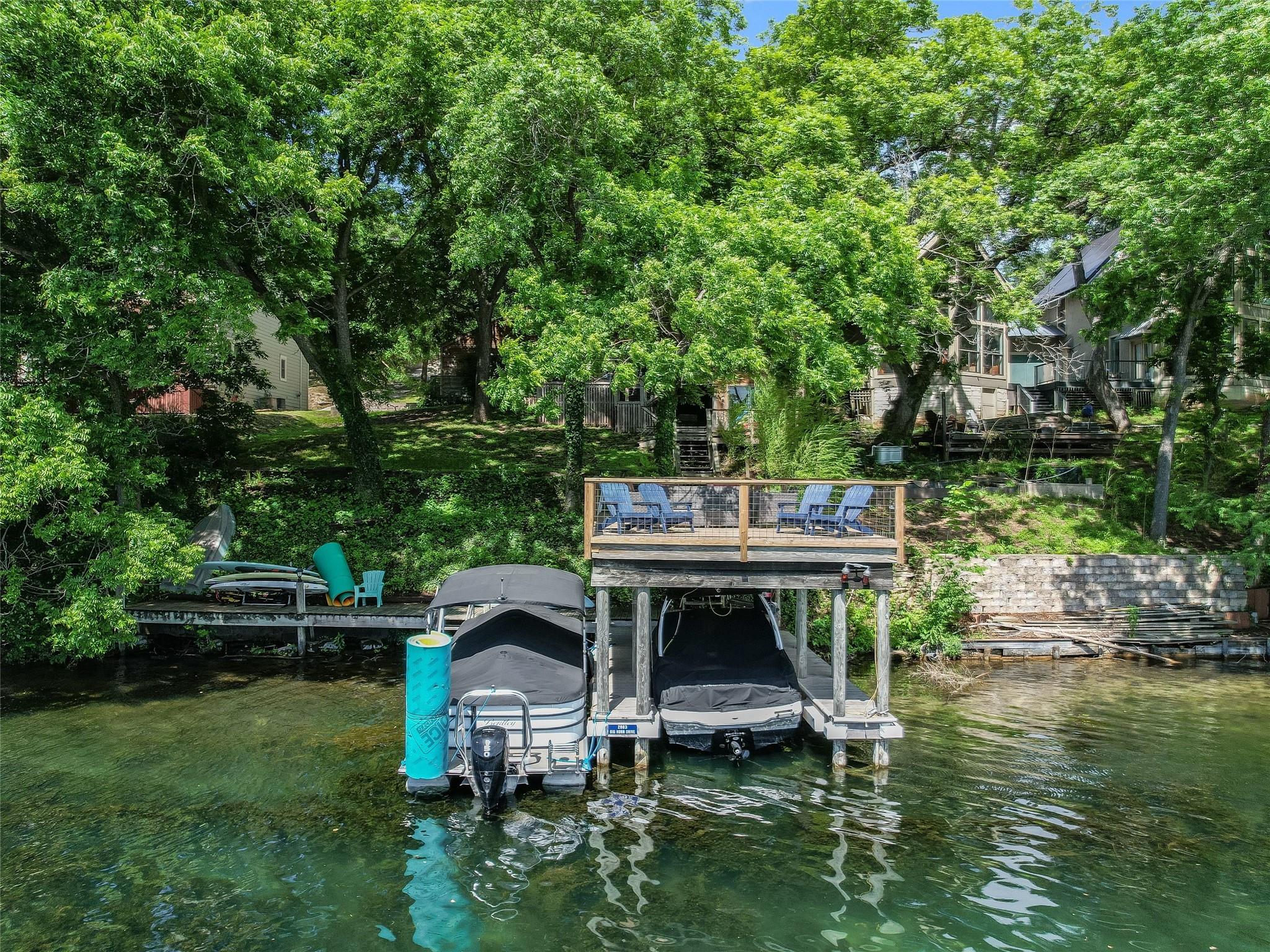 Nestled along the picturesque shores of Lake Austin, 2603 Big Horn Drive offers a wonderful waterfront living experience and opportunity. This stunning property boasts a two-story boat dock with an expansive entertaining deck just steps away from the main residence, offering the ultimate setting for outdoor enjoyment and recreation. Whether you're seeking a serene weekend retreat or a year-round residence, this property provides an idyllic escape with its tranquil surroundings and convenient access to the water. Inside, the existing residence features three bedrooms and two bathrooms, multiple living spaces, and a large kitchen providing ample space for comfortable living and entertaining. With large windows framing views of the lake, the home is bathed in natural light. Additionally, the property includes a detached three-car garage, offering plenty of storage for vehicles, watercraft, and outdoor gear. Situated within the Apache Shores community and zoned to exemplary Lake Travis ISD schools, 2603 Big Horn Drive offers the perfect blend of luxury, convenience, and natural beauty. In addition to the Lake Austin waterfront, residents can take advantage of neighborhood parks, a boat ramp, and a range of outdoor amenities, ensuring endless opportunities for recreation and relaxation. Don't miss your chance to experience the quintessential Lake Austin lifestyle at this waterfront retreat.
