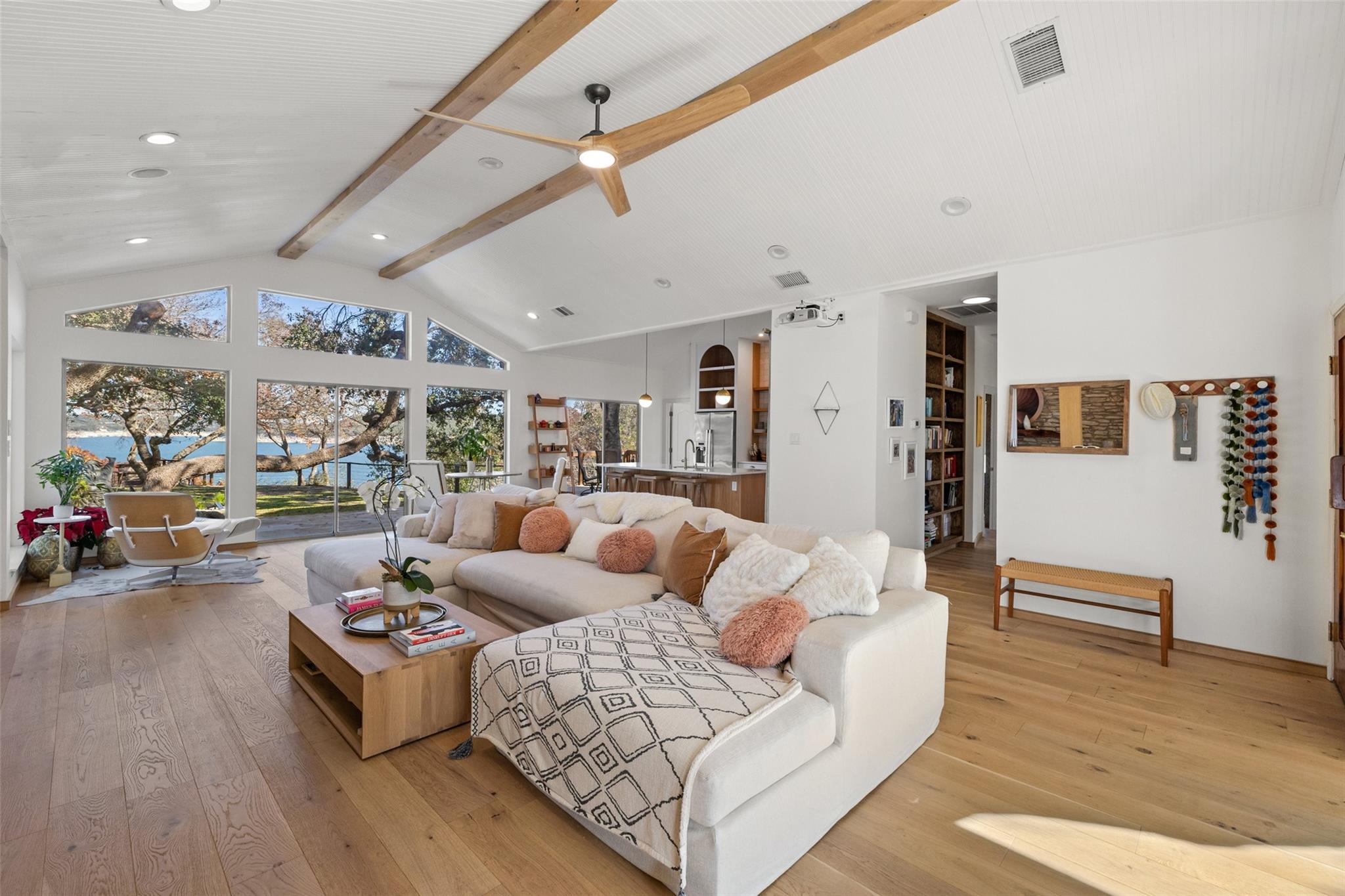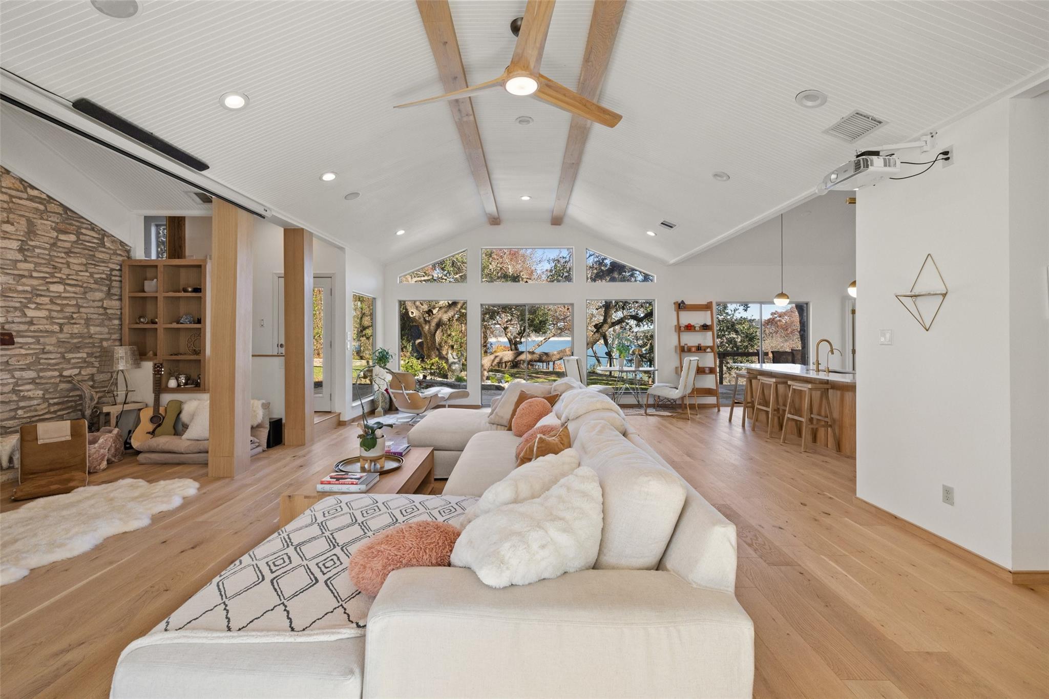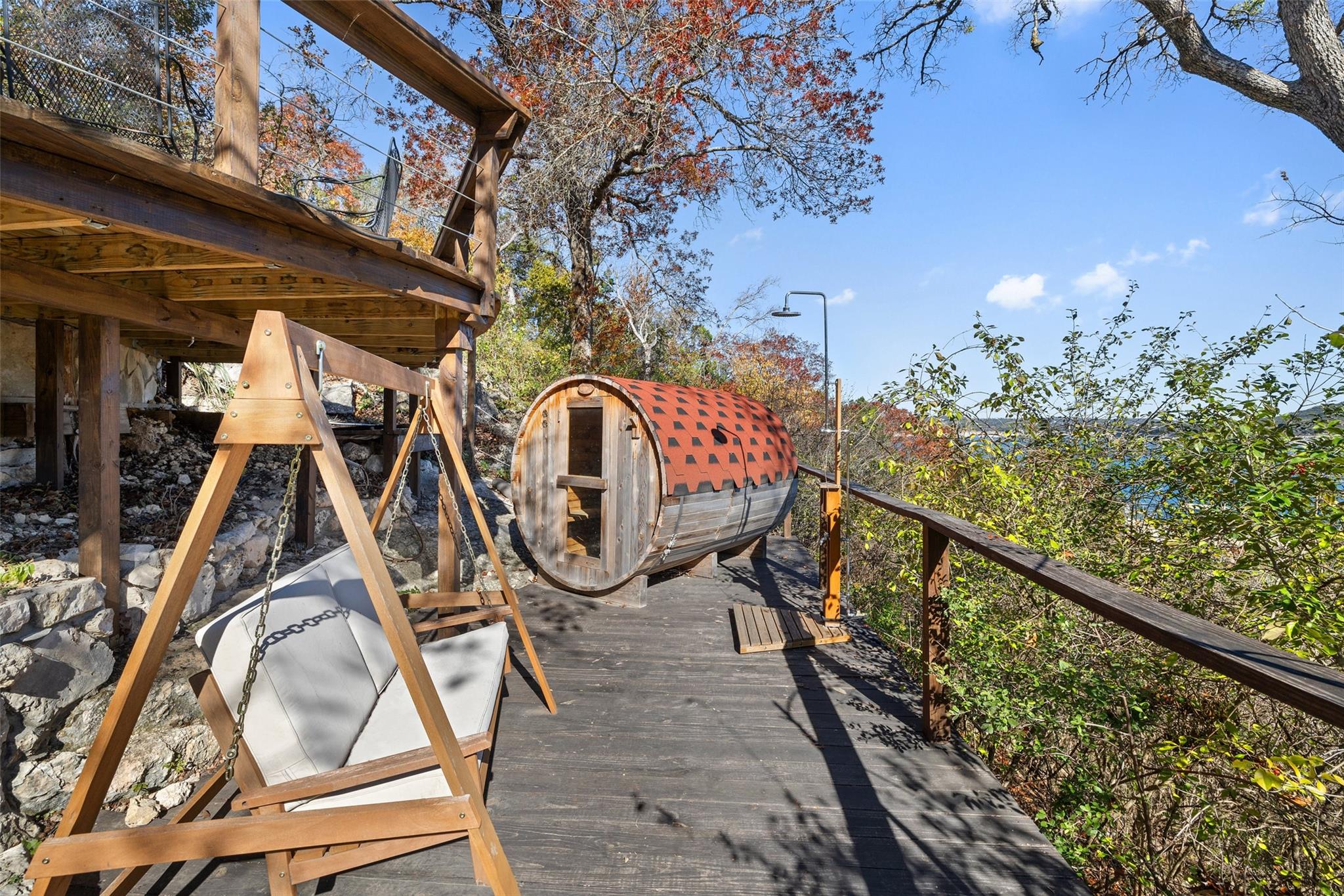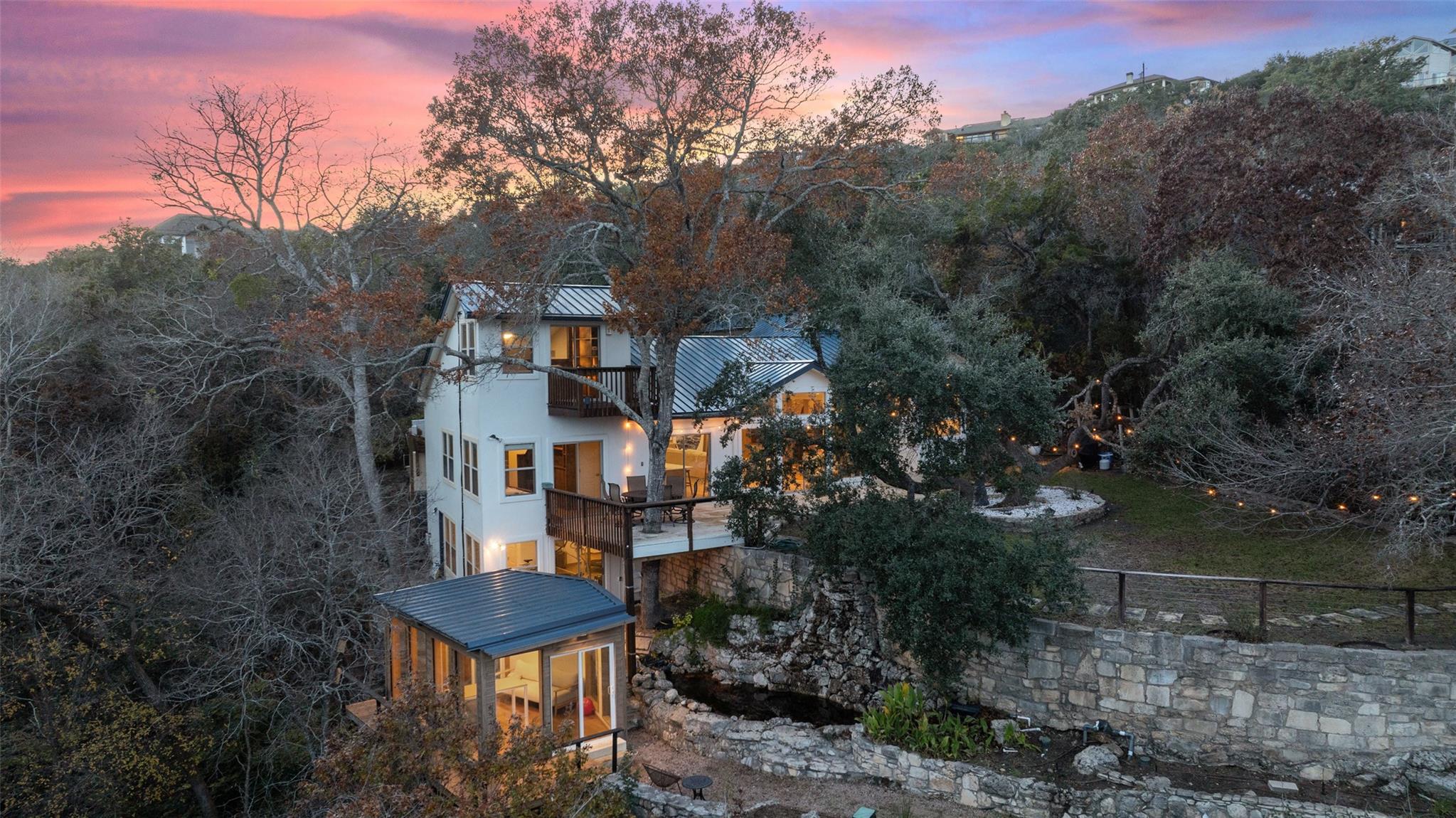 Welcome to a once-in-a-lifetime opportunity to own a slice of paradise nestled on the shores of Lake Travis. This 3,400 square foot waterfront sanctuary is a rare gem, offering panoramic vistas of the glistening lake from every room. Secluded against the mountainside, it boasts unparalleled privacy, creating a serene retreat that feels like a hidden oasis reminiscent of the Topanga Canyon in California. Step through the gated courtyard into a world of luxury and exclusivity. The multi-story split-level design exudes modern elegance, seamlessly blending with the natural beauty of its surroundings. Indulge in the endless upgrades and exquisite details thoughtfully incorporated throughout. Discover a detached casita, inspired by Tulum, Mexico; perfect for guests, multiple balconies inviting you to savor each sunrise and sunset over the lake, and a private boat dock that channels the allure of the Amalfi Coast right at your doorstep. For those seeking an active lifestyle, the property offers a pickleball court for friendly competitions and a sauna for ultimate relaxation after a day on the water. Rarely does a residence of this caliber and allure grace the market. Don't miss the chance to claim your place in this coveted lakeside paradise—a retreat that effortlessly marries elegance, tranquility, and unparalleled natural beauty.