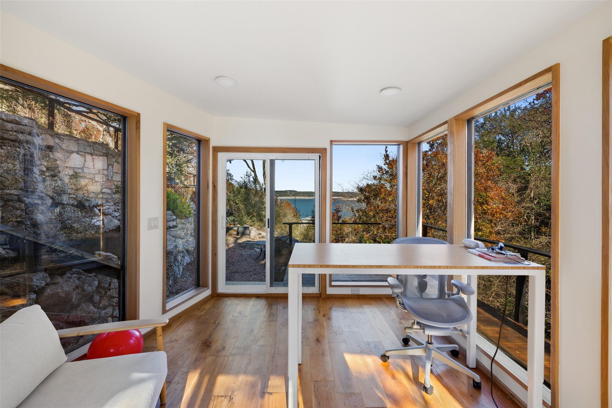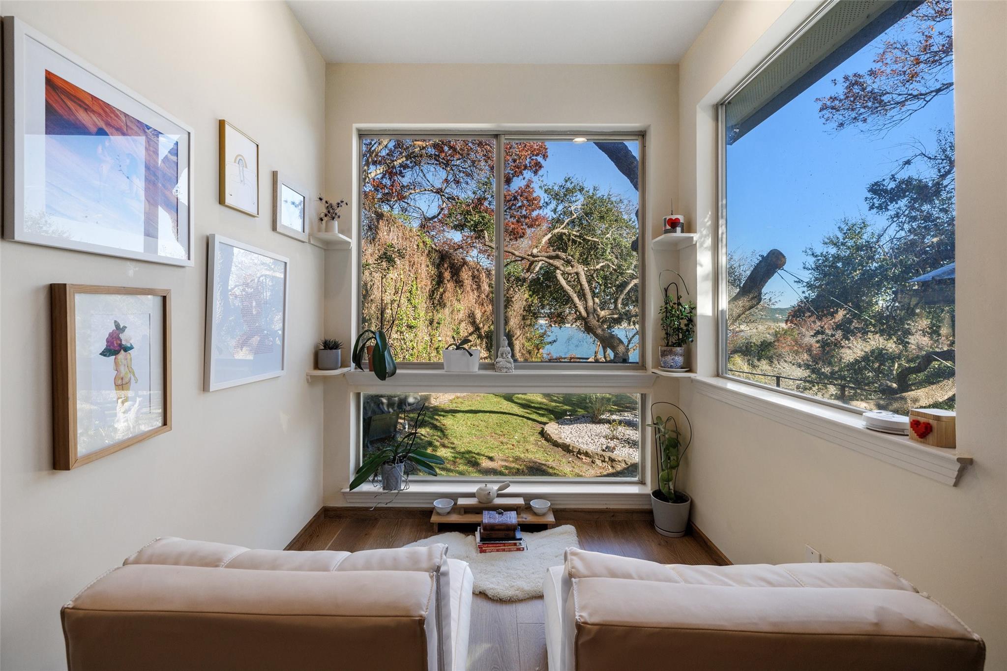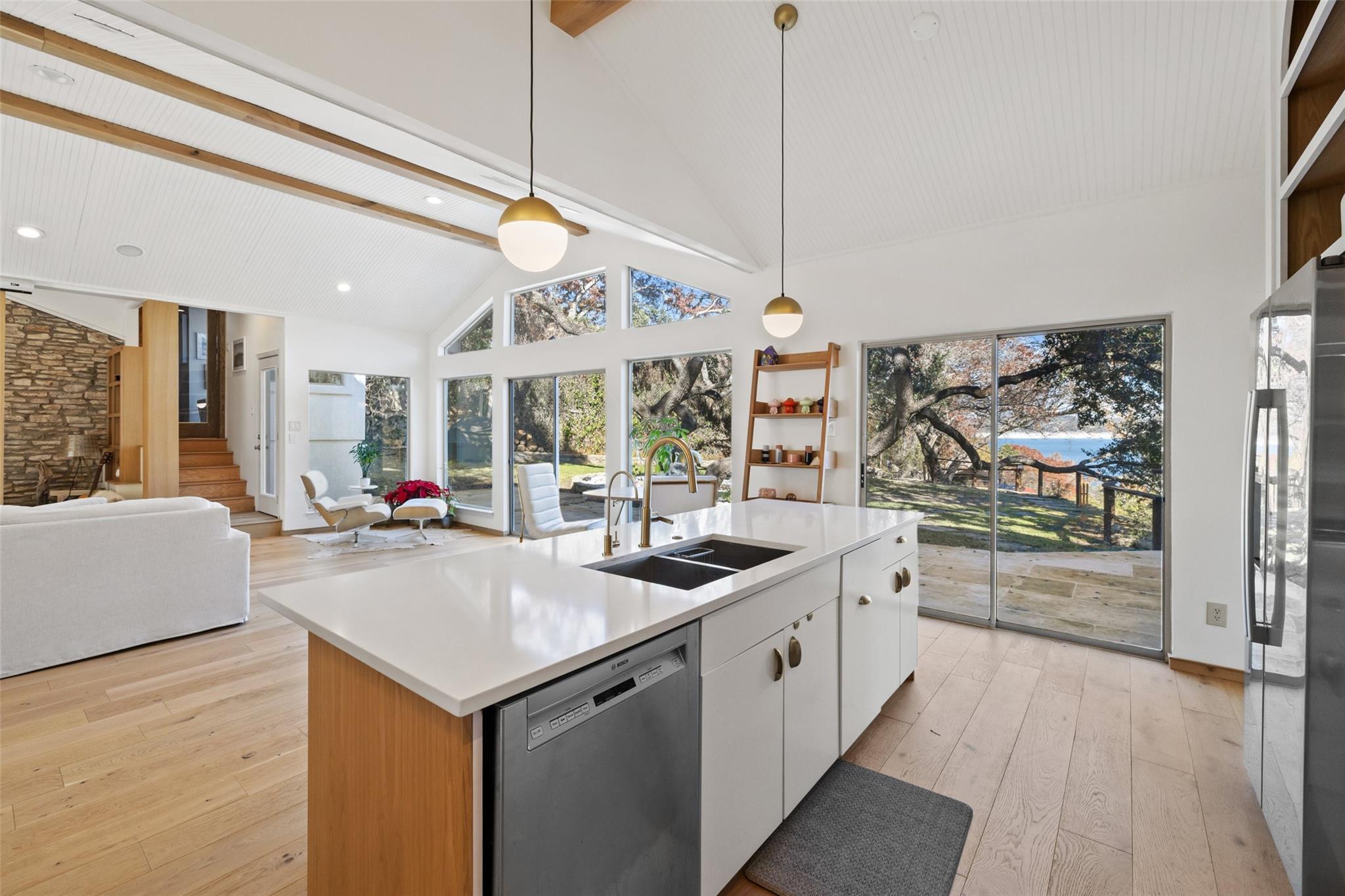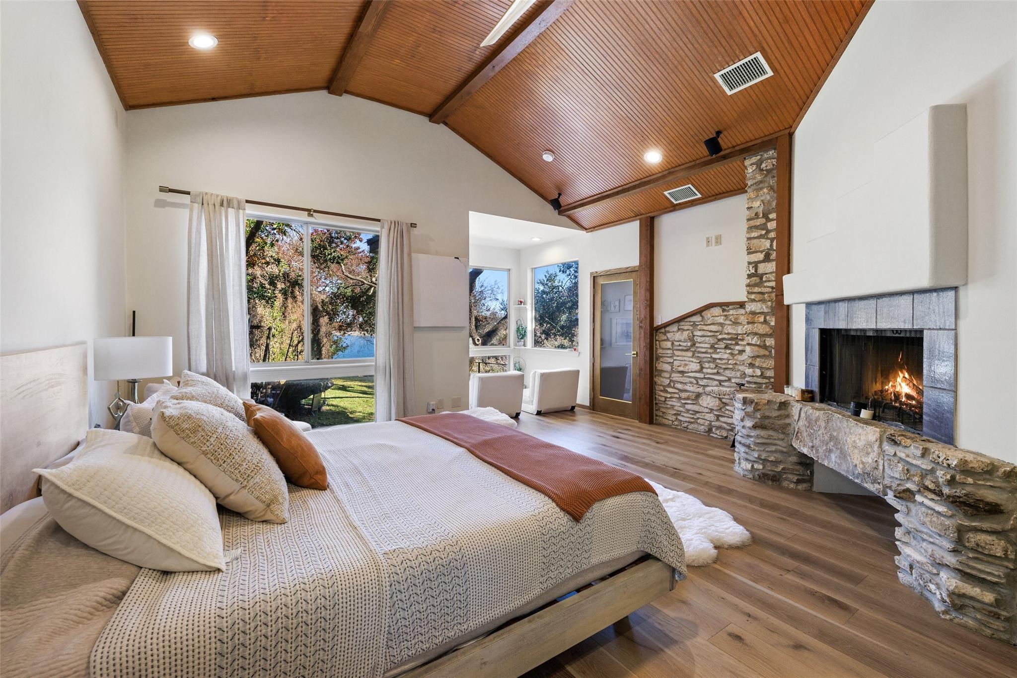 Welcome to a once-in-a-lifetime opportunity to own a slice of paradise nestled on the shores of Lake Travis. This 3,400 square foot waterfront sanctuary is a rare gem, offering panoramic vistas of the glistening lake from every room. Secluded against the mountainside, it boasts unparalleled privacy, creating a serene retreat that feels like a hidden oasis reminiscent of the Topanga Canyon in California. Step through the gated courtyard into a world of luxury and exclusivity. The multi-story split-level design exudes modern elegance, seamlessly blending with the natural beauty of its surroundings. Indulge in the endless upgrades and exquisite details thoughtfully incorporated throughout. Discover a detached casita, inspired by Tulum, Mexico; perfect for guests, multiple balconies inviting you to savor each sunrise and sunset over the lake, and a private boat dock that channels the allure of the Amalfi Coast right at your doorstep. For those seeking an active lifestyle, the property offers a pickleball court for friendly competitions and a sauna for ultimate relaxation after a day on the water. Rarely does a residence of this caliber and allure grace the market. Don't miss the chance to claim your place in this coveted lakeside paradise—a retreat that effortlessly marries elegance, tranquility, and unparalleled natural beauty.