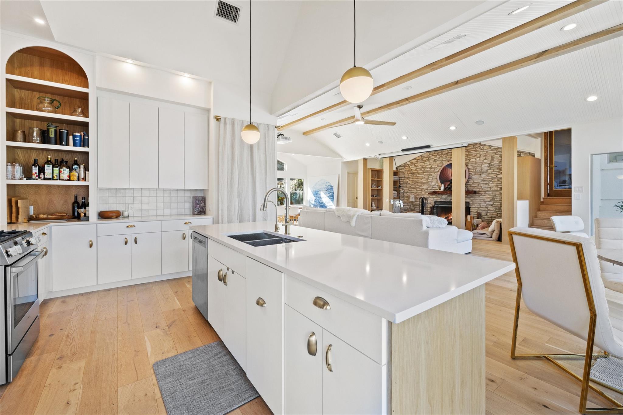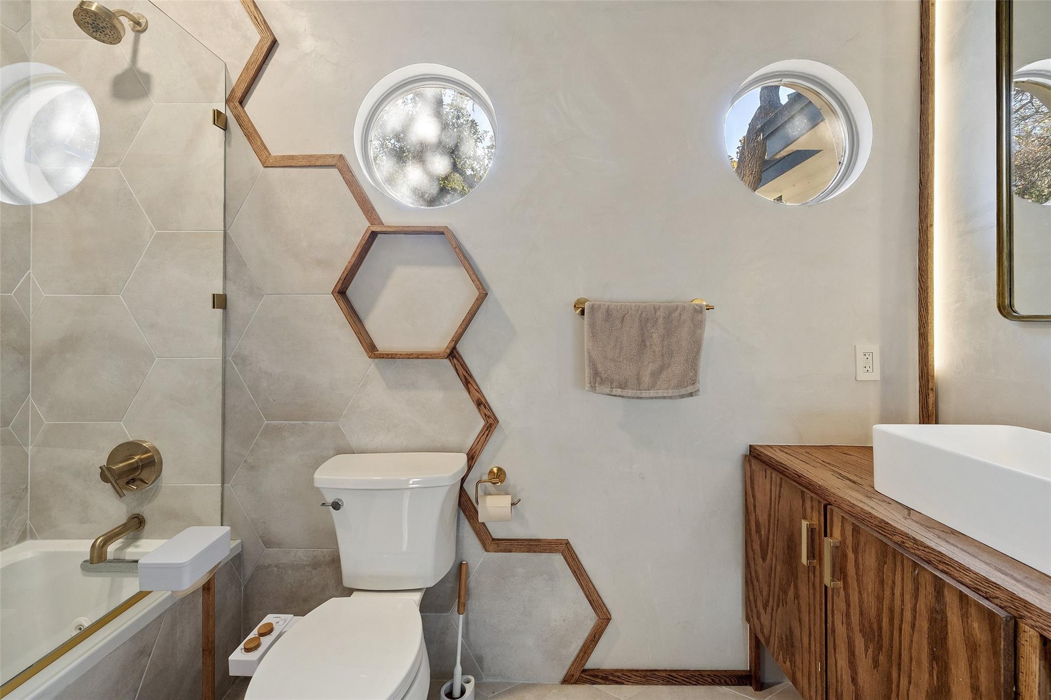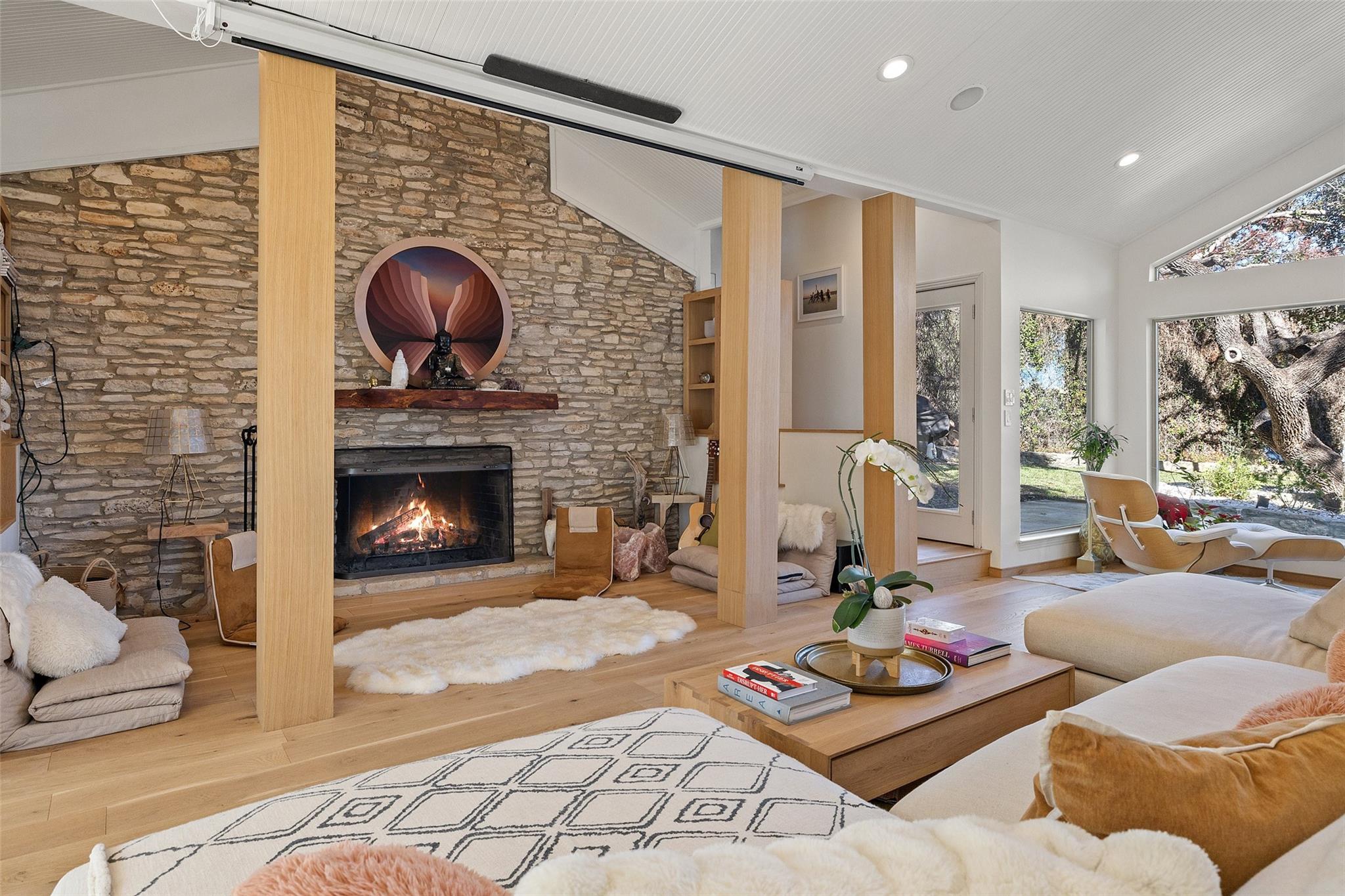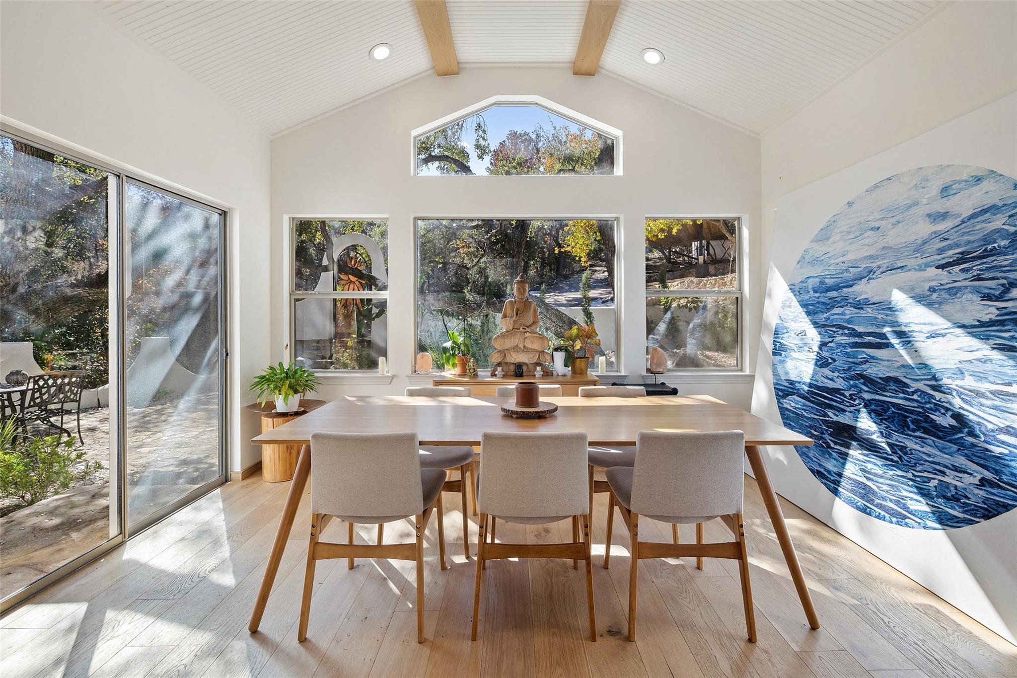 Welcome to a once-in-a-lifetime opportunity to own a slice of paradise nestled on the shores of Lake Travis. This 3,400 square foot waterfront sanctuary is a rare gem, offering panoramic vistas of the glistening lake from every room. Secluded against the mountainside, it boasts unparalleled privacy, creating a serene retreat that feels like a hidden oasis reminiscent of the Topanga Canyon in California. Step through the gated courtyard into a world of luxury and exclusivity. The multi-story split-level design exudes modern elegance, seamlessly blending with the natural beauty of its surroundings. Indulge in the endless upgrades and exquisite details thoughtfully incorporated throughout. Discover a detached casita, inspired by Tulum, Mexico; perfect for guests, multiple balconies inviting you to savor each sunrise and sunset over the lake, and a private boat dock that channels the allure of the Amalfi Coast right at your doorstep. For those seeking an active lifestyle, the property offers a pickleball court for friendly competitions and a sauna for ultimate relaxation after a day on the water. Rarely does a residence of this caliber and allure grace the market. Don't miss the chance to claim your place in this coveted lakeside paradise—a retreat that effortlessly marries elegance, tranquility, and unparalleled natural beauty.