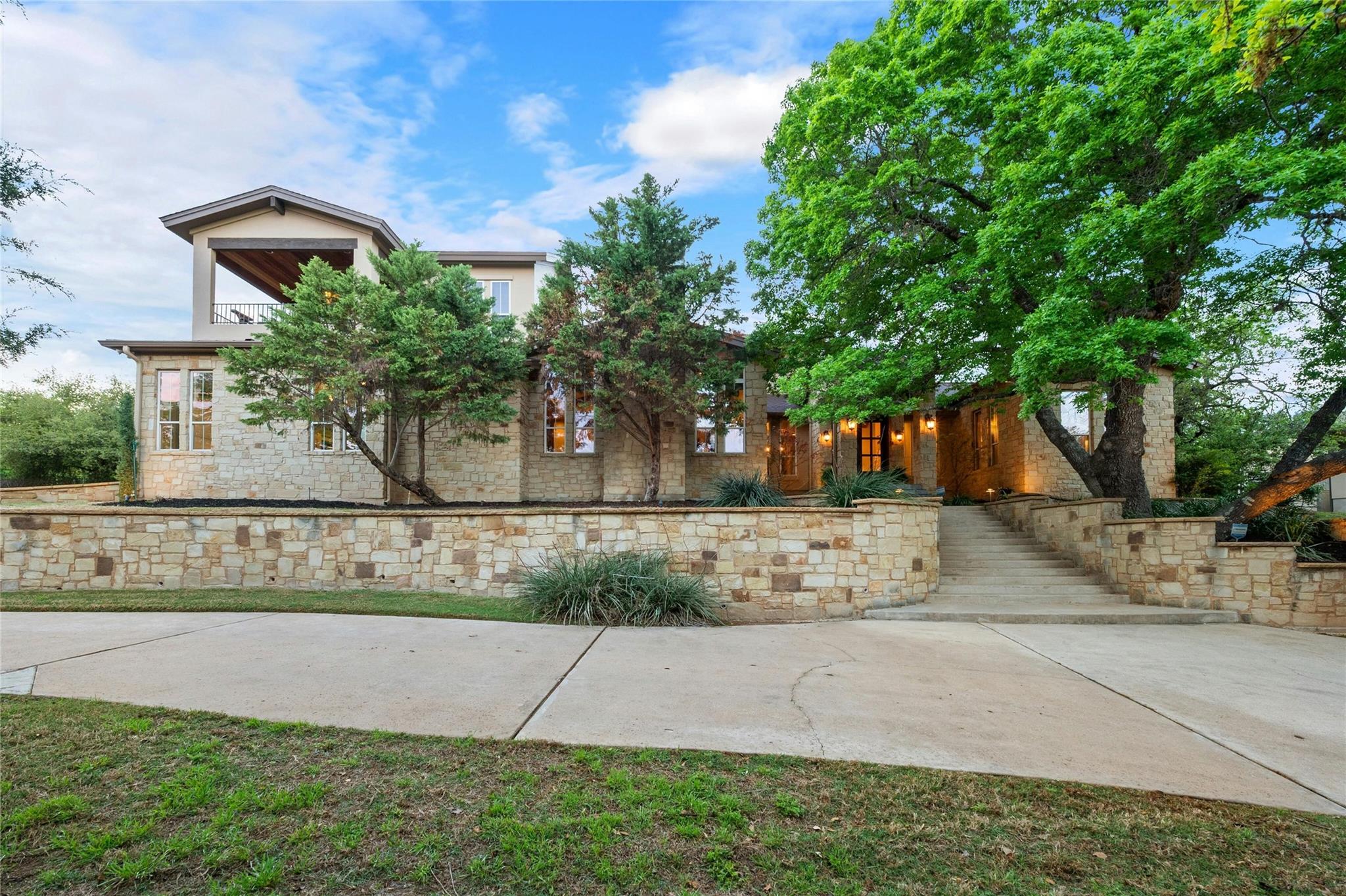 Exemplary executive home nestled in the bluffs above lake Austin. Astounding views of the lake and valley. Architecturally superior to many of the newer home builds. The attention to detail in this custom built home is nearly impossible to duplicate. Custom hard wood Doors, Flooring, 3 porch areas, 3 garage spaces (one detached), Pool, Hot tub, Custom stone decking, Built in propane fire pit poolside. The kitchen boasts a open area with a almost excessive amount of storage, a Walk in Pantry, Lots of counter space, Oversized fridge, center island, and Kitchen dining area. Adjoining the large living room with a built in aquarium and custom shelving, The Oversized Laundry room can easily accommodate all the sports gear, yoga mats, etc. Upstairs has 3 over sized bedrooms and a full media/game room. This gorgeous property also offers a covered patio for relaxing evenings and wonderful views of the lake.