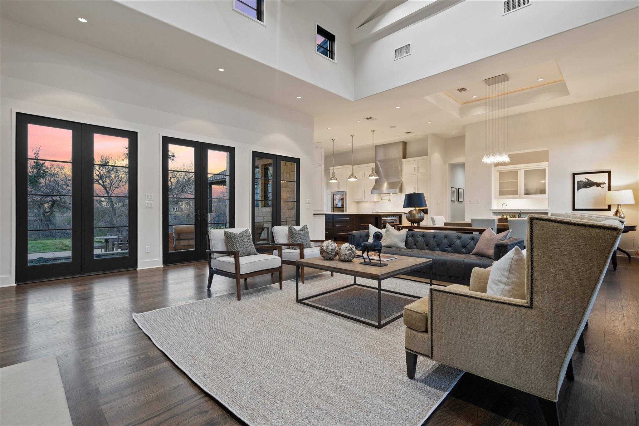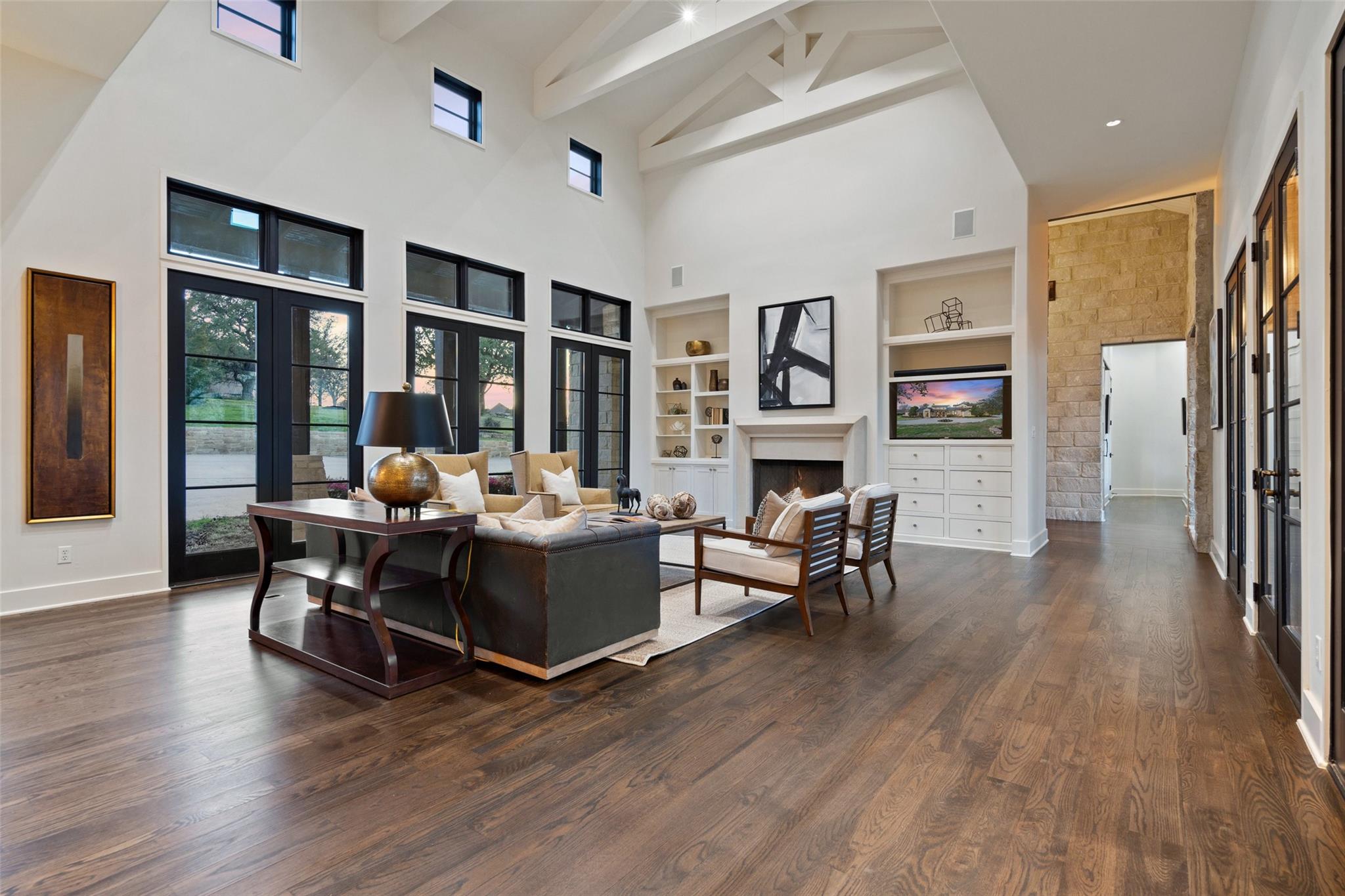 | Interior Features | Built-in Features, Beamed Ceilings, High Ceilings, Vaulted Ceiling(s), Quartz Counters, Entrance Foyer, French Doors, Interior Steps, Kitchen Island, Multiple Dining Areas, Multiple Living Areas, Open Floorplan, Primary Bedroom on Main, Recessed Lighting, Stackable W/D Connections, Walk-In Closet(s), Wet Bar, Wired for Sound | |
