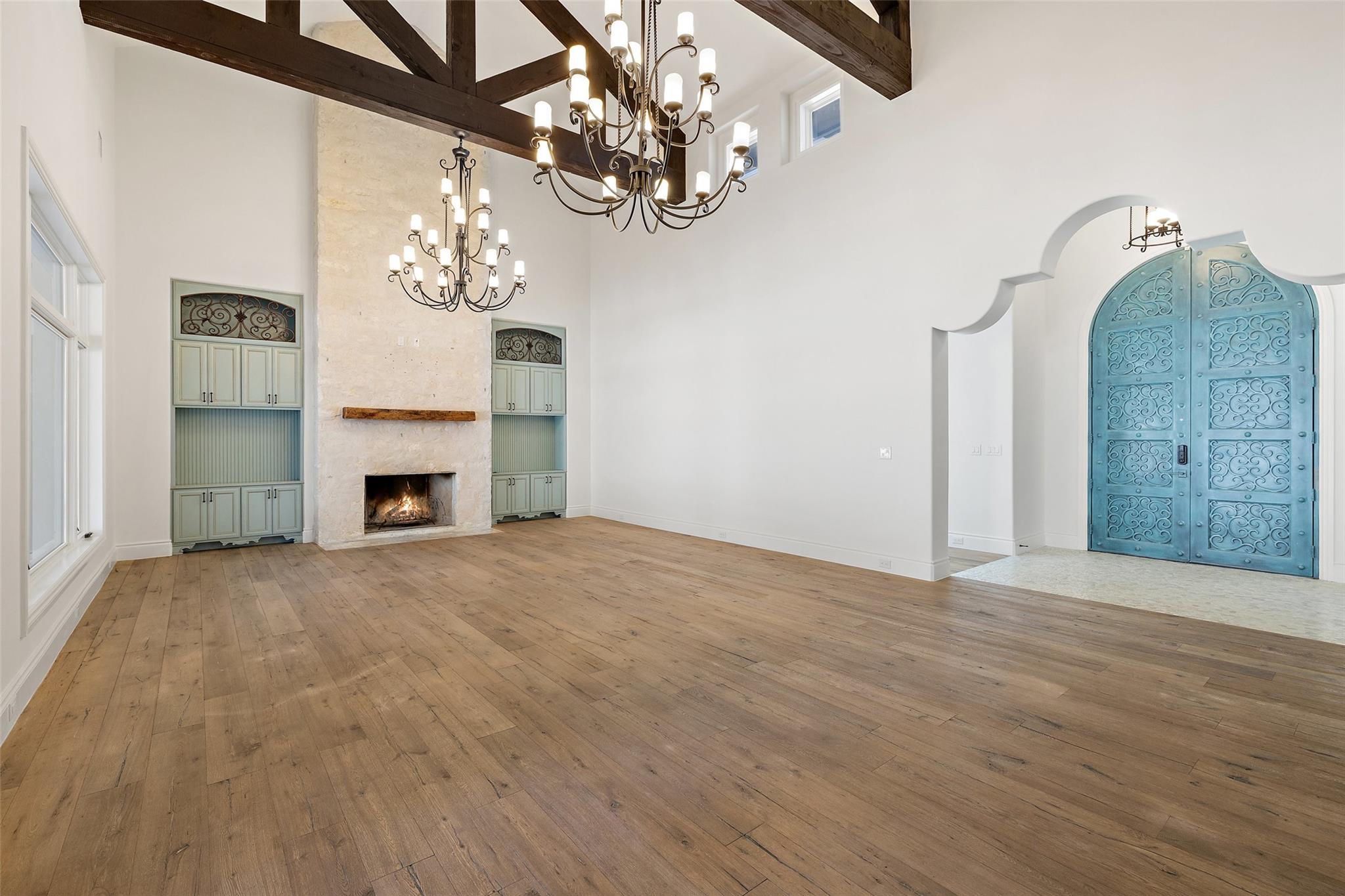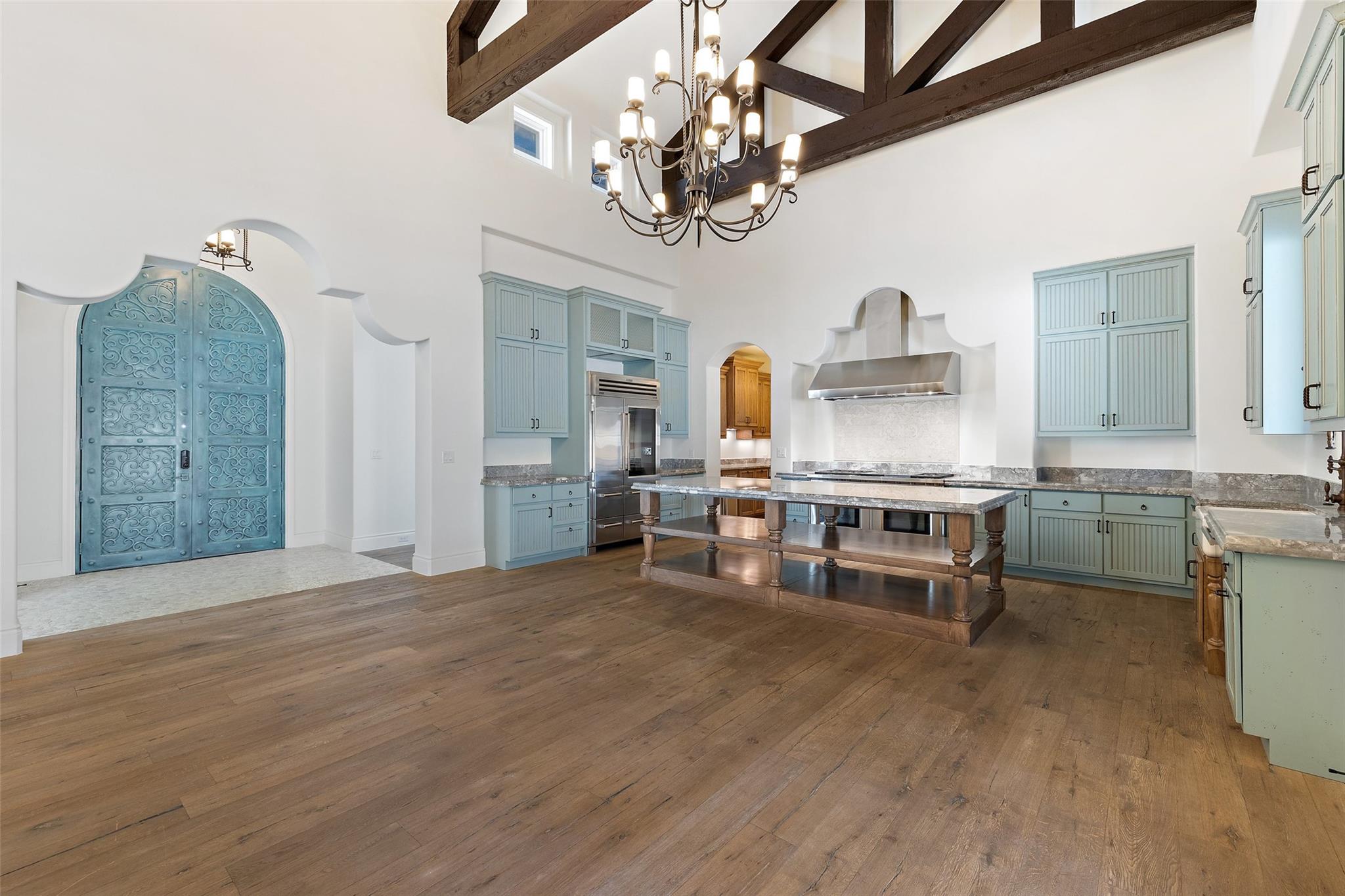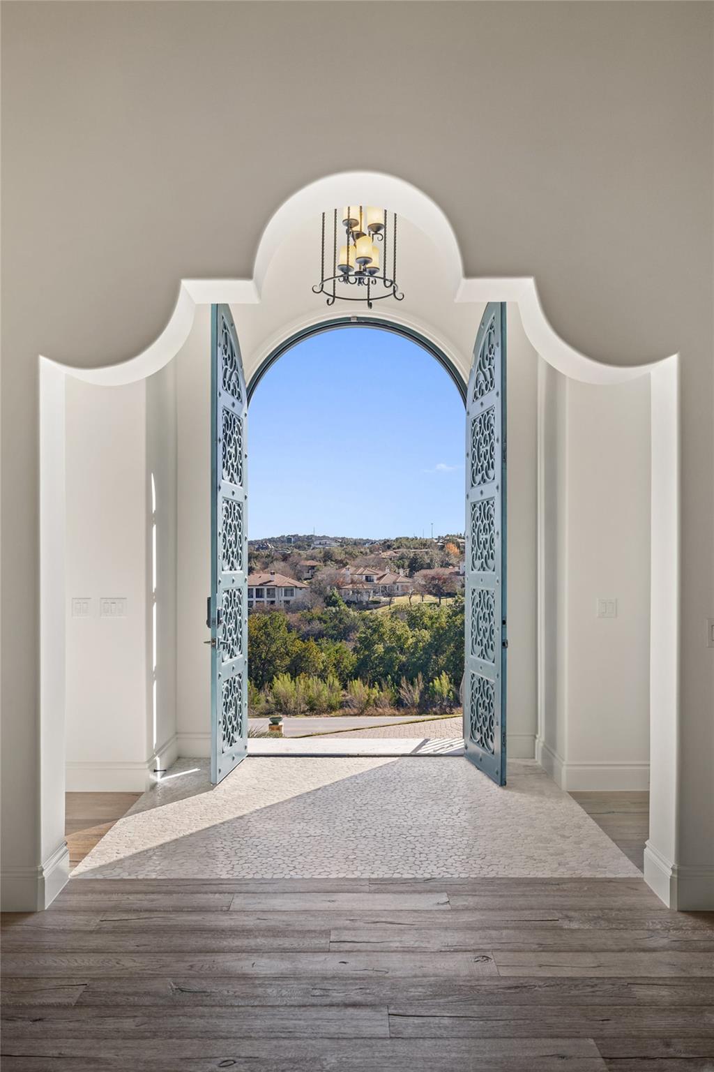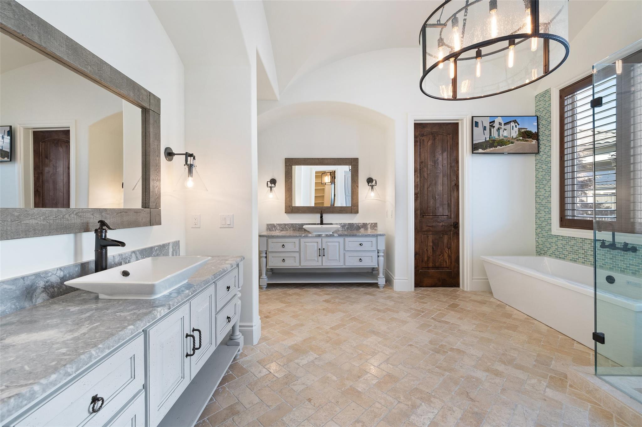 This Mediterranean-style Seven Oaks home is thoughtfully designed for the ultimate indoor-outdoor lifestyle. The terraced backyard oasis is perfect for entertaining with a sports court, inground trampoline, tether ball, and outdoor shower. The 15-ft deep swimming pool is a destination for all ages with a waterfall feature, a jumping ledge, a rope swing, a waterslide, and a diving board. Twenty-four-foot ceilings with striking wood trusses and arched doorways adorn the interior. Oversized windows feature custom plantation shutters. The great room is anchored at one end by a ceiling-height fireplace, while a chef’s kitchen graces the other, with an island and a butler’s pantry with walk-in storage and ice maker. Designer appliances include a 60” Wolf range with 6 burners and a griddle/grill, double Wolf ovens, two Miele dishwashers, and a Sub-Zero fridge. Your primary suite is a sanctuary with a fireplace and an expansive spa bath featuring a custom dressing room, a soaking tub, a frameless glass shower, and two vanities. This home includes luxuries for everyone, including a playroom with a bunk set-up and fire pole and a dog room nestled under the stairs. This 6,600+SF home’s upstairs layout makes for effortless multigenerational living. Two private staircases lead to separate wings; one offers two large bedrooms connected by a Jack and Jill bathroom, and the other offers two oversized bedroom suites. The home is set back off the street with an extended paver driveway, giving you the utmost privacy, with a hidden four-car garage and porte-cochere side entry. Seven Oaks is a quiet enclave in Westlake with large, custom homes on lots of at least an acre. You’ll enjoy a little elbow room and one foot in the Hill Country, with proximity to great schools (Eanes ISD), Bee Caves Road, and 360. Lake Travis and Downtown Austin are less than 30 minutes away.