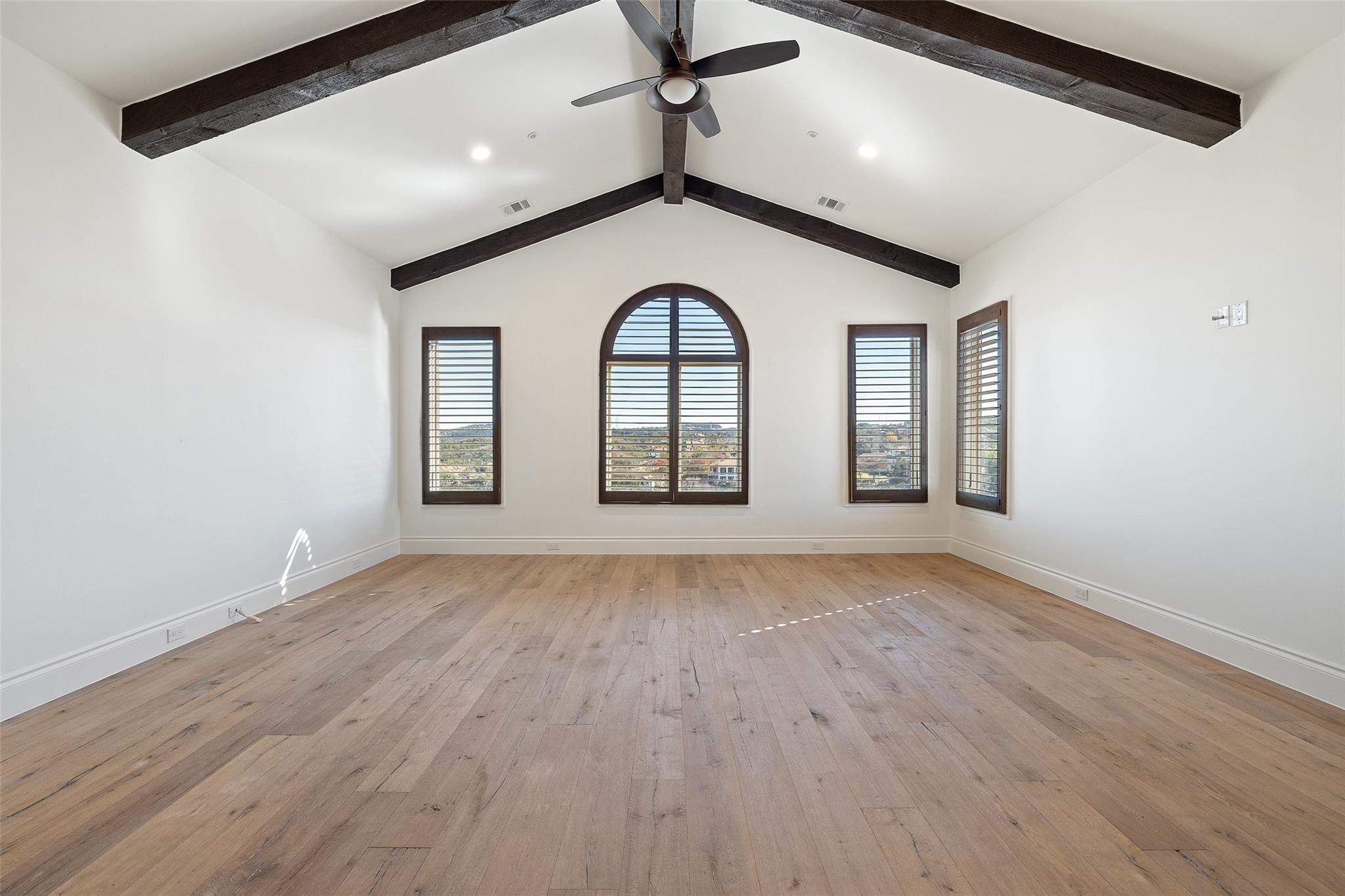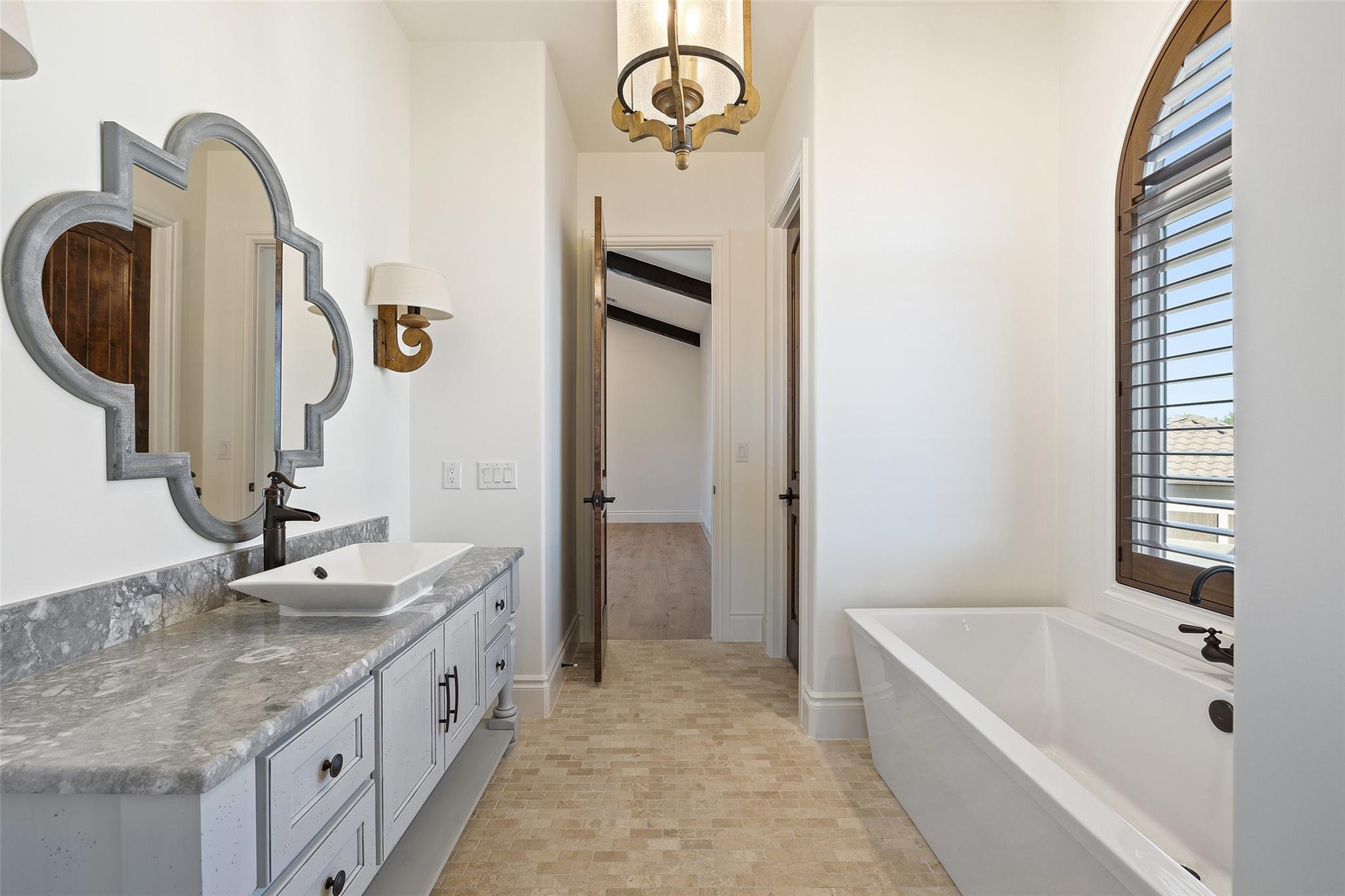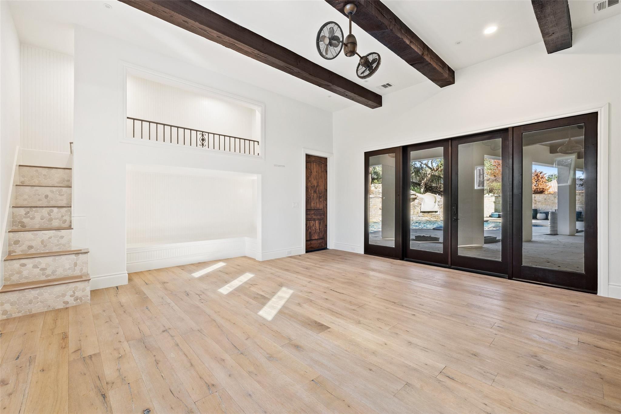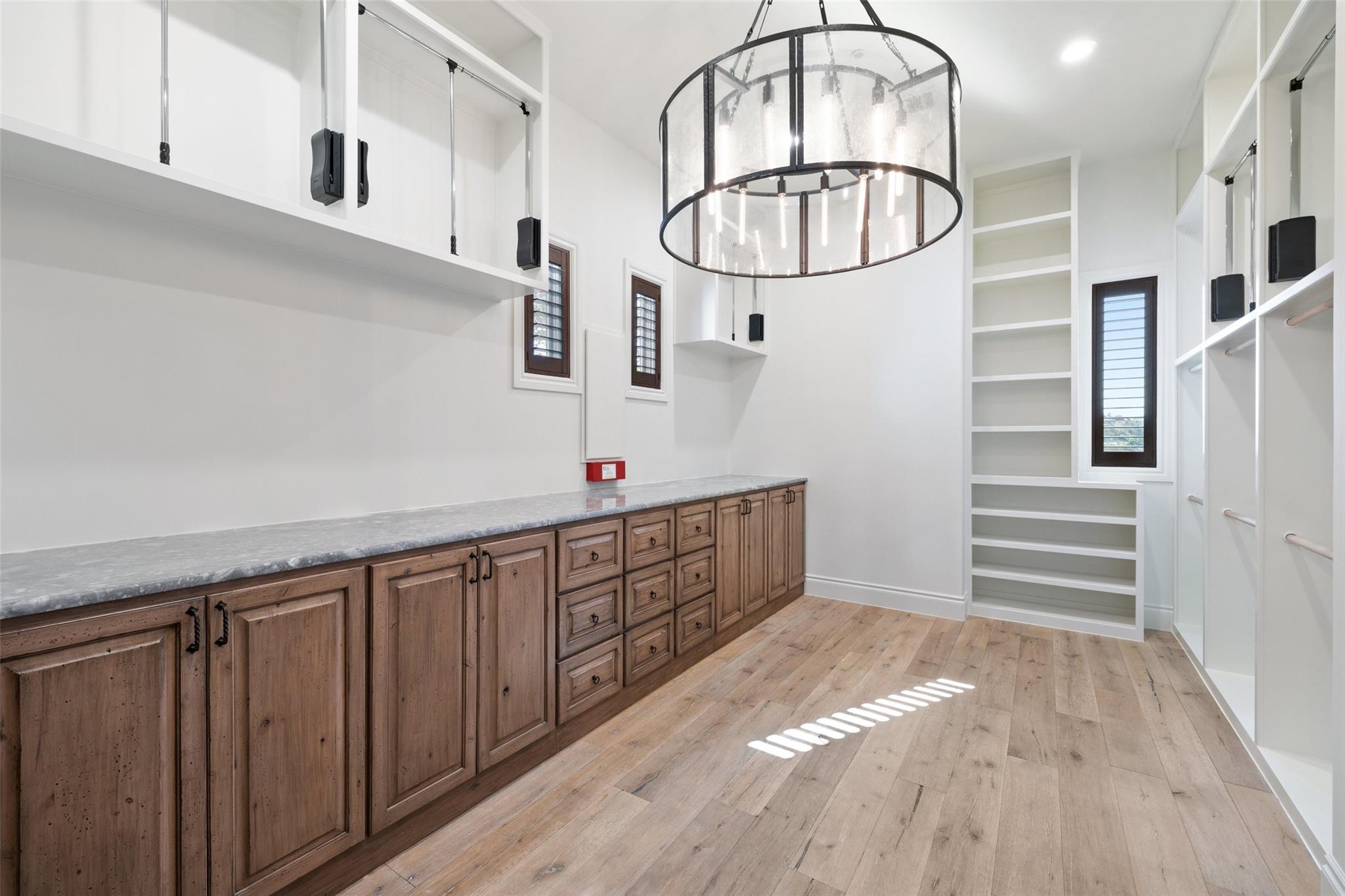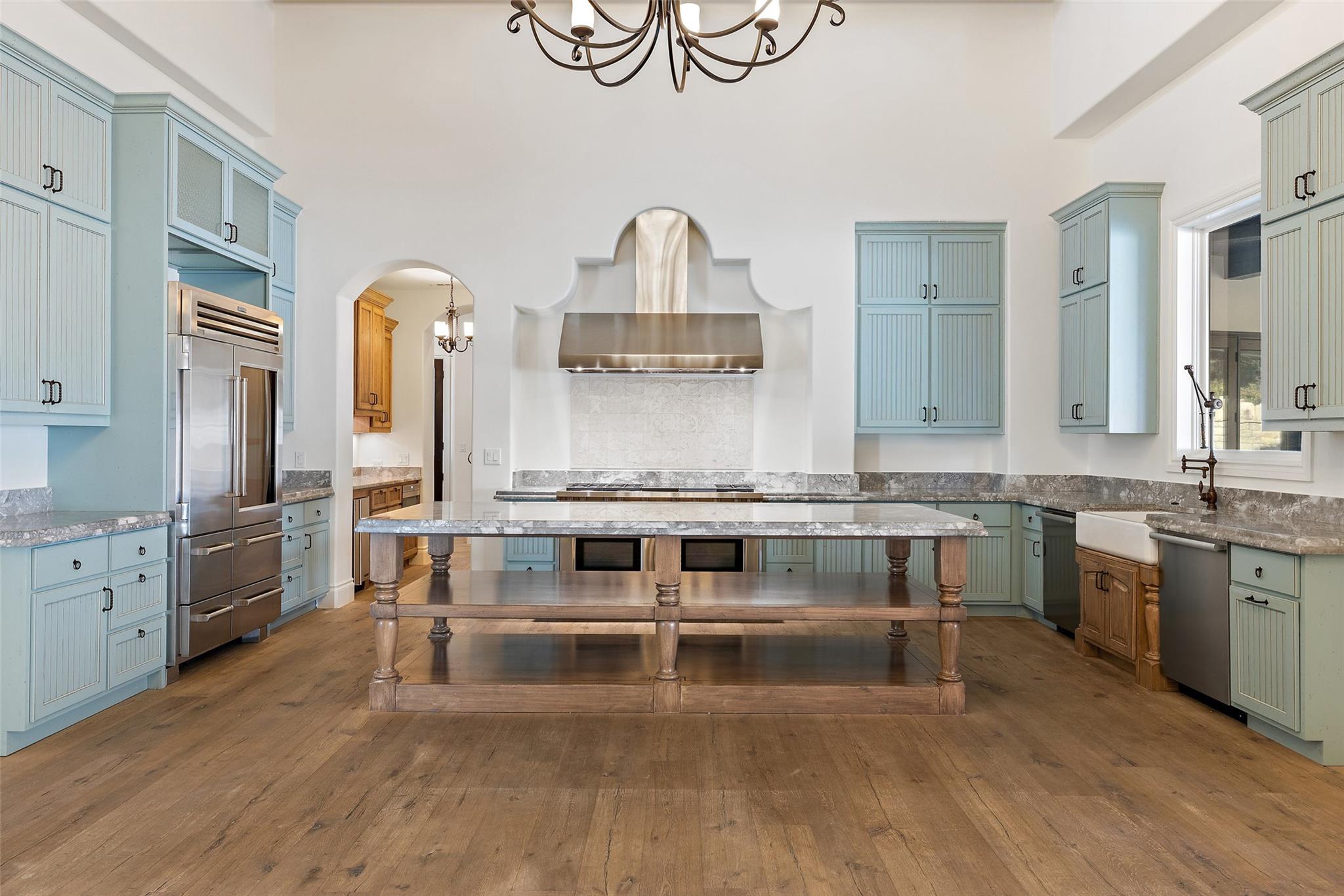 This Mediterranean-style Seven Oaks home is thoughtfully designed for the ultimate indoor-outdoor lifestyle. The terraced backyard oasis is perfect for entertaining with a sports court, inground trampoline, tether ball, and outdoor shower. The 15-ft deep swimming pool is a destination for all ages with a waterfall feature, a jumping ledge, a rope swing, a waterslide, and a diving board. Twenty-four-foot ceilings with striking wood trusses and arched doorways adorn the interior. Oversized windows feature custom plantation shutters. The great room is anchored at one end by a ceiling-height fireplace, while a chef’s kitchen graces the other, with an island and a butler’s pantry with walk-in storage and ice maker. Designer appliances include a 60” Wolf range with 6 burners and a griddle/grill, double Wolf ovens, two Miele dishwashers, and a Sub-Zero fridge. Your primary suite is a sanctuary with a fireplace and an expansive spa bath featuring a custom dressing room, a soaking tub, a frameless glass shower, and two vanities. This home includes luxuries for everyone, including a playroom with a bunk set-up and fire pole and a dog room nestled under the stairs. This 6,600+SF home’s upstairs layout makes for effortless multigenerational living. Two private staircases lead to separate wings; one offers two large bedrooms connected by a Jack and Jill bathroom, and the other offers two oversized bedroom suites. The home is set back off the street with an extended paver driveway, giving you the utmost privacy, with a hidden four-car garage and porte-cochere side entry. Seven Oaks is a quiet enclave in Westlake with large, custom homes on lots of at least an acre. You’ll enjoy a little elbow room and one foot in the Hill Country, with proximity to great schools (Eanes ISD), Bee Caves Road, and 360. Lake Travis and Downtown Austin are less than 30 minutes away.