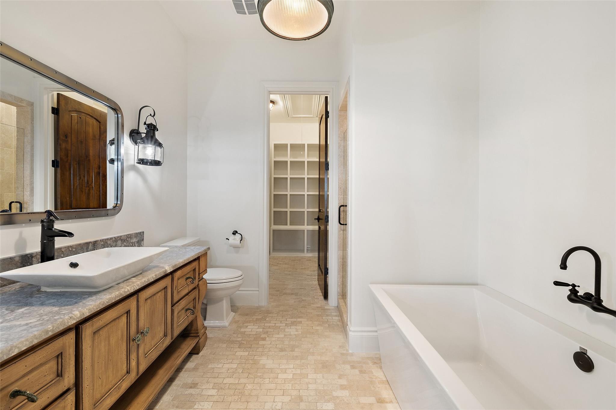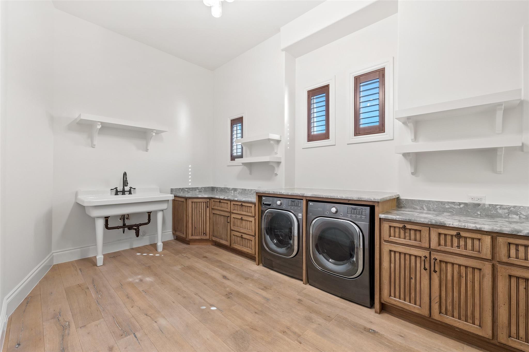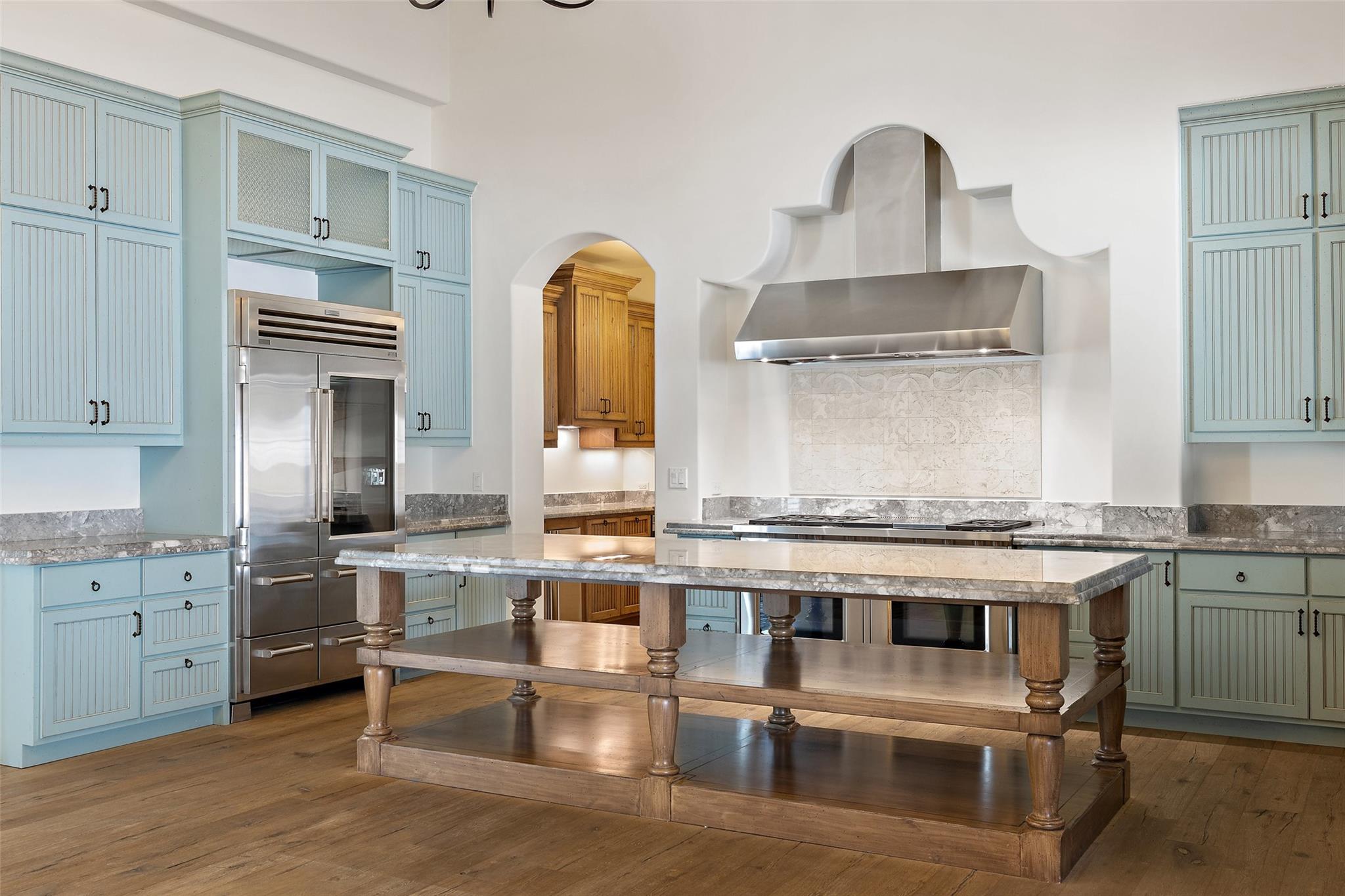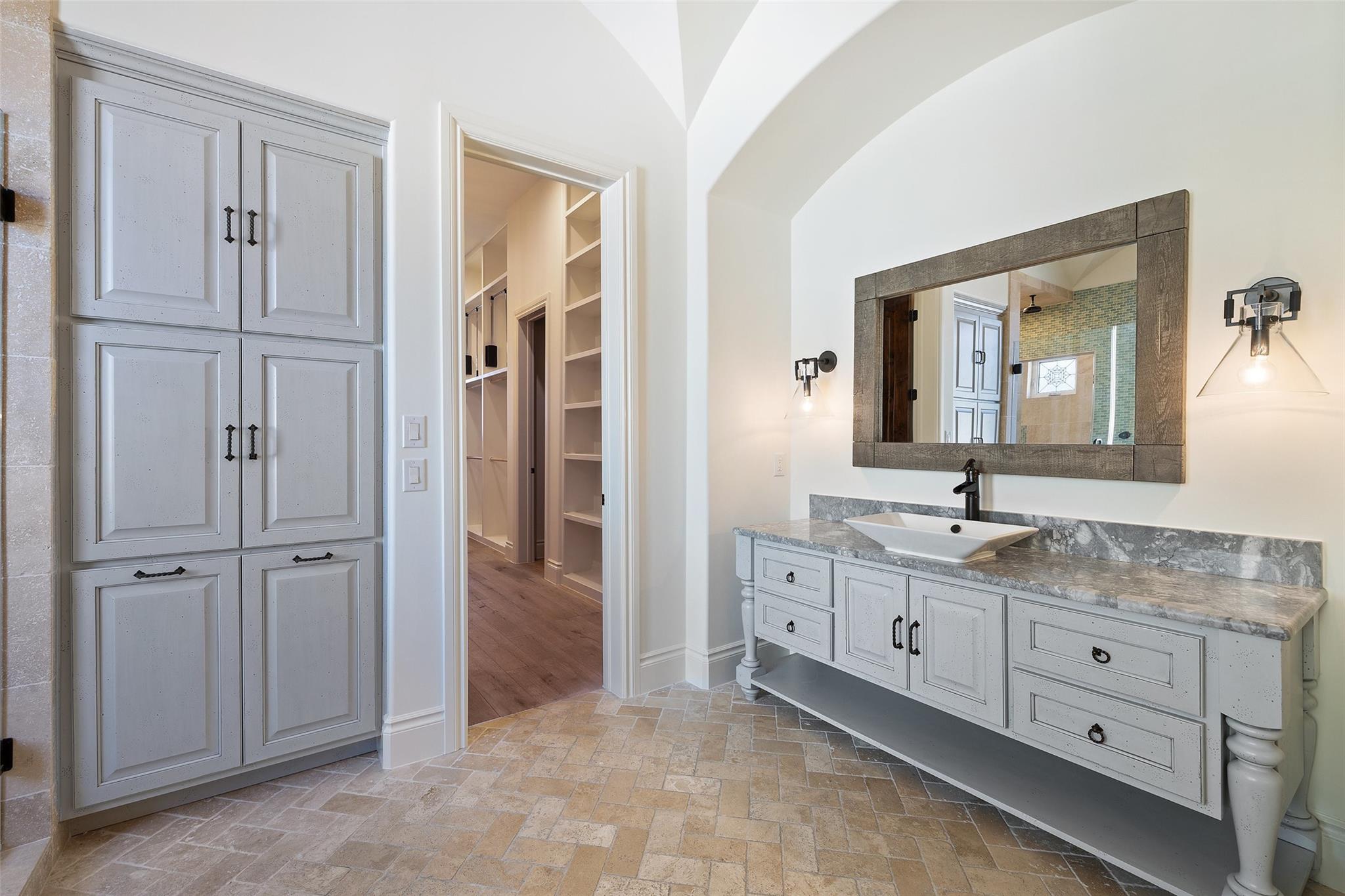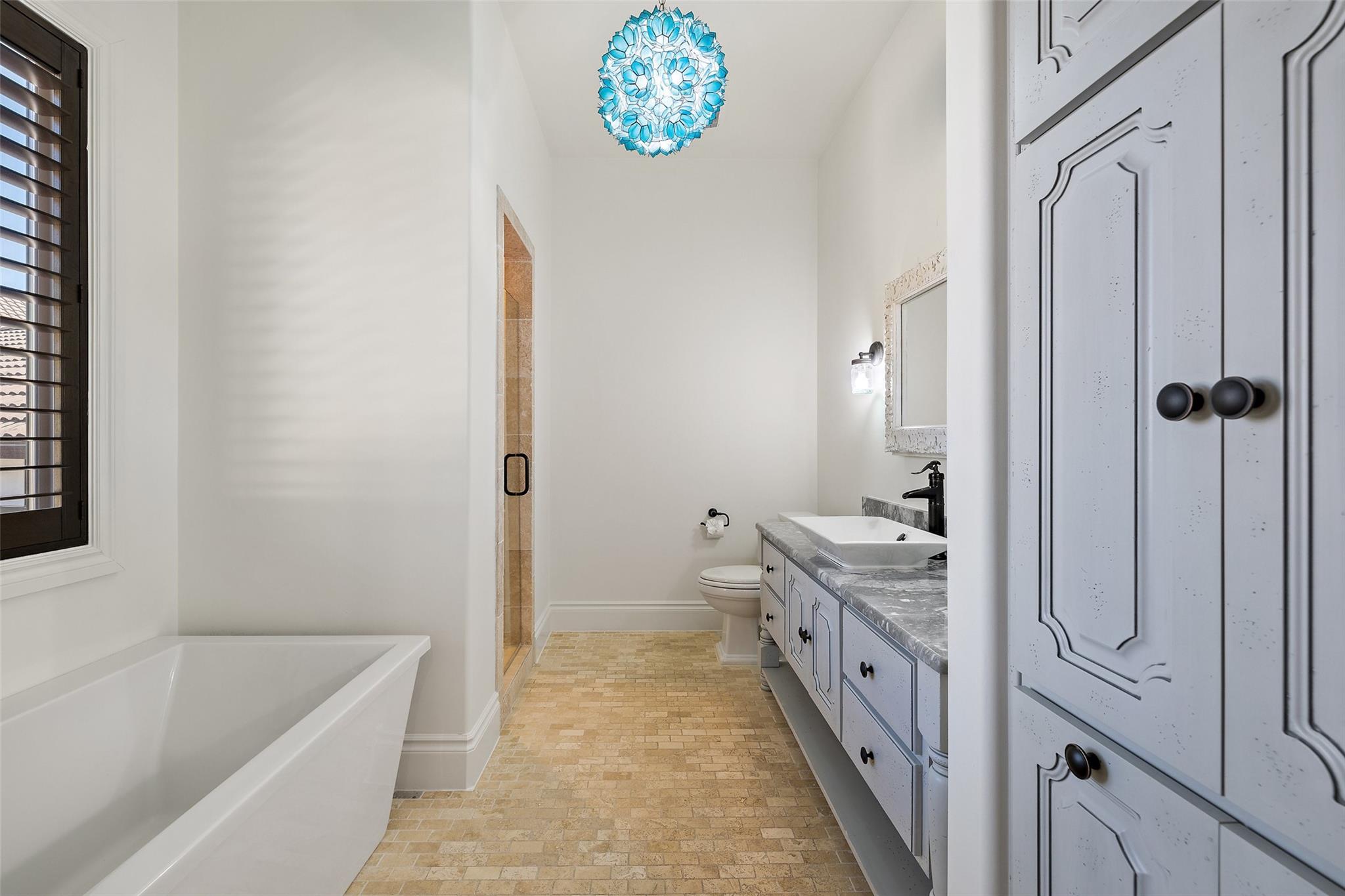 This Mediterranean-style Seven Oaks home is thoughtfully designed for the ultimate indoor-outdoor lifestyle. The terraced backyard oasis is perfect for entertaining with a sports court, inground trampoline, tether ball, and outdoor shower. The 15-ft deep swimming pool is a destination for all ages with a waterfall feature, a jumping ledge, a rope swing, a waterslide, and a diving board. Twenty-four-foot ceilings with striking wood trusses and arched doorways adorn the interior. Oversized windows feature custom plantation shutters. The great room is anchored at one end by a ceiling-height fireplace, while a chef’s kitchen graces the other, with an island and a butler’s pantry with walk-in storage and ice maker. Designer appliances include a 60” Wolf range with 6 burners and a griddle/grill, double Wolf ovens, two Miele dishwashers, and a Sub-Zero fridge. Your primary suite is a sanctuary with a fireplace and an expansive spa bath featuring a custom dressing room, a soaking tub, a frameless glass shower, and two vanities. This home includes luxuries for everyone, including a playroom with a bunk set-up and fire pole and a dog room nestled under the stairs. This 6,600+SF home’s upstairs layout makes for effortless multigenerational living. Two private staircases lead to separate wings; one offers two large bedrooms connected by a Jack and Jill bathroom, and the other offers two oversized bedroom suites. The home is set back off the street with an extended paver driveway, giving you the utmost privacy, with a hidden four-car garage and porte-cochere side entry. Seven Oaks is a quiet enclave in Westlake with large, custom homes on lots of at least an acre. You’ll enjoy a little elbow room and one foot in the Hill Country, with proximity to great schools (Eanes ISD), Bee Caves Road, and 360. Lake Travis and Downtown Austin are less than 30 minutes away.