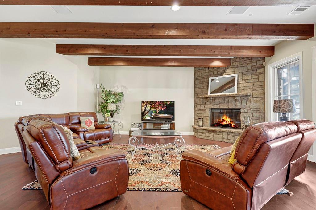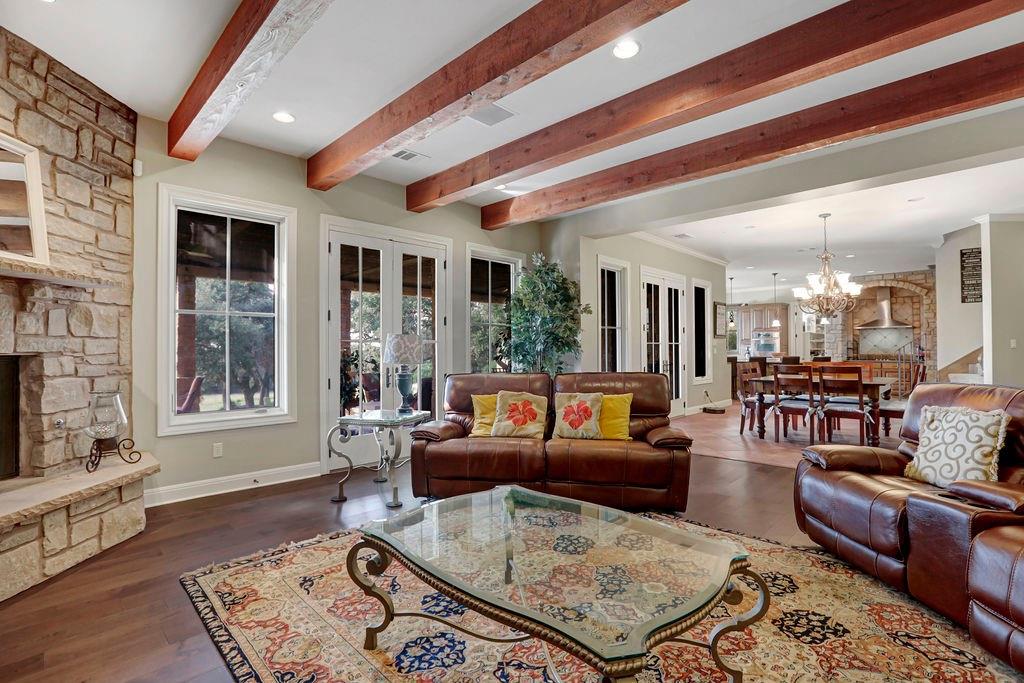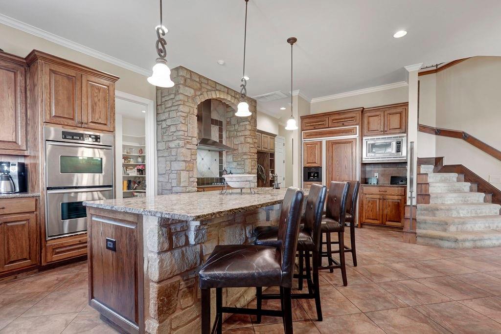 | Interior Features | Two Primary Baths, Two Primary Suties, Built-in Features, Ceiling Fan(s), Beamed Ceilings, Chandelier, Granite Counters, Crown Molding, Double Vanity, Dry Bar, Electric Dryer Hookup, Entrance Foyer, High Speed Internet, Interior Steps, Kitchen Island, Multiple Dining Areas, Multiple Living Areas, Open Floorplan, Pantry, Recessed Lighting, Two Primary Closets, Walk-In Closet(s), Washer Hookup, Wet Bar, Wired for Data | |