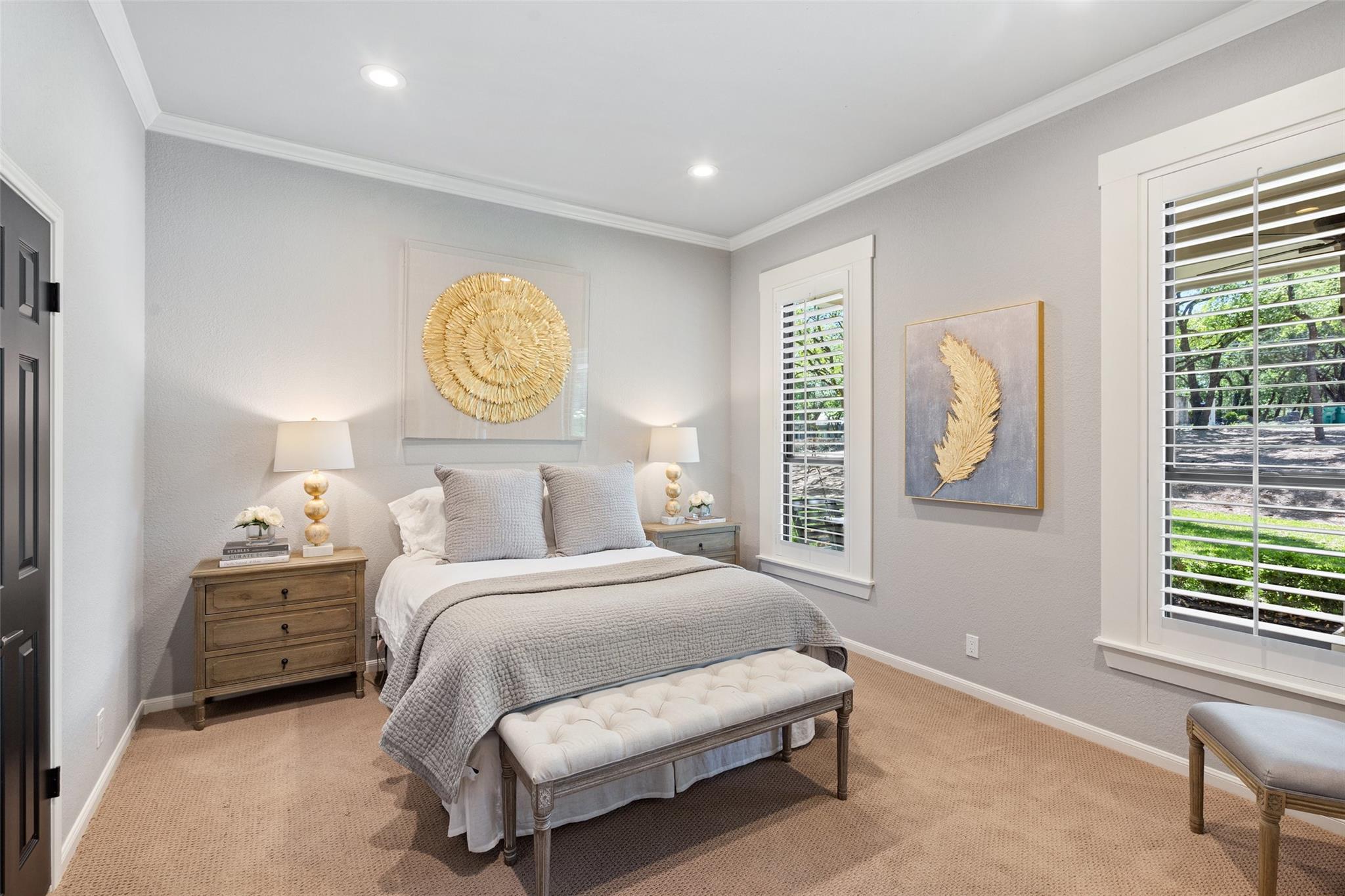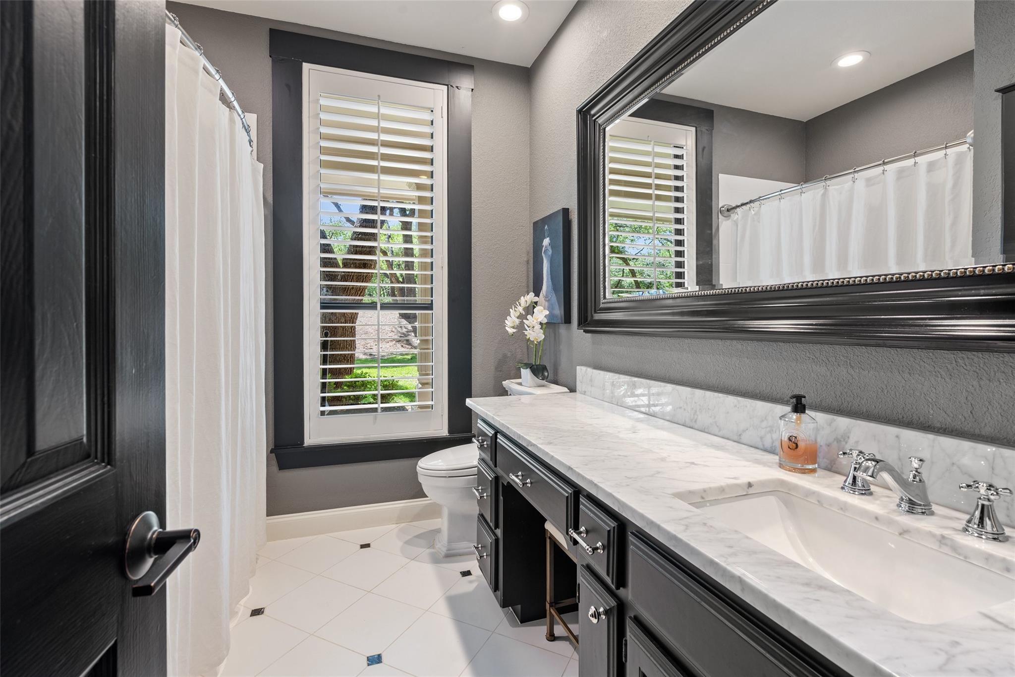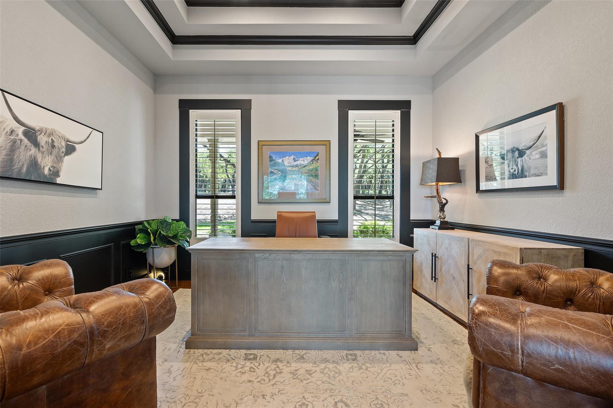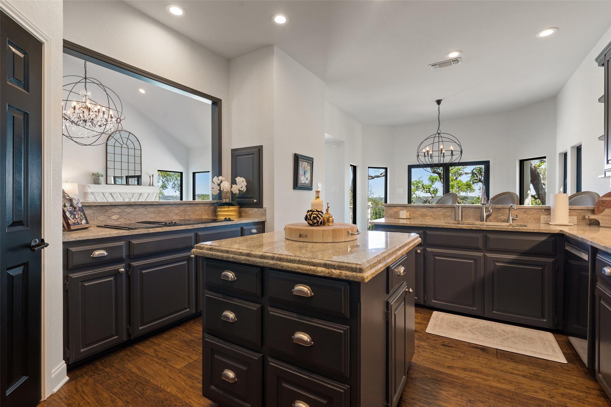 Escape to your own personal retreat, a single-level sanctuary with abundant space and exceptional views. Spanning 3,045 square feet on 1.5 acres, this home offers peace and privacy with panoramic vistas that stretch to the downtown skyline. As you approach the property, the home appears from beneath the shade of well-manicured oak trees among native landscaping. On the front porch, a gently swaying swing beckons and a well-appointed front entry invites you in for rest and relaxation. Inside, the interior is centered on a sizable living room and family room, each with tall windows and inspiring views of the outdoors. Designed for elevated entertaining, the living room includes a built-in bar with floor-to-ceiling cabinets and wine storage. Just beyond, the gourmet kitchen features modern cabinets, designer lighting and luxurious countertops including a large central island. The home also includes a large study for work, reading or quiet contemplation. Each room is immaculately finished and updated for an effortless move-in experience. With three bedrooms on one level, this home is designed to easily accommodate a family or visiting guests. The primary suite is the main attraction, with a dedicated fireplace and seating area, two walk-in closets designed by California Closets and a large primary bathroom clad in Carrara marble. The two additional bedrooms also offer walk-in closets and spectacular views of the grounds or the valley below. On the home’s covered back patio–accessible from the living room, breakfast nook or primary suite–you feel both serenity and a sense of place. Take in far-reaching views of the canyons and hilltops, Westlake and the lights of downtown Austin. Or relax in the pool, recently remodeled and surrounded by tall trees to create total privacy. Featuring refined finishes, luxurious amenities and even its own potable water well and irrigation system, this home is your chance to turn each day into an adventurous, indulgent escape.