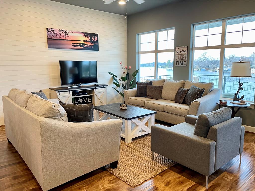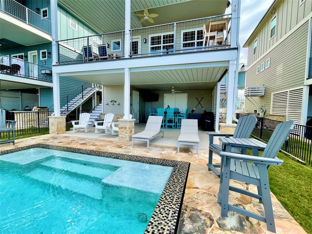 Gorgeous home situated along the Colorado River with 180-degree unobstructed view. This is one of the best open waters lots on the entire lake! This home is being sold furnished. Inside the home, you'll find updated decor with hardwood floors throughout. Indulge your inner chef in the spacious kitchen. Outfitted with stainless steel appliances and ample counter space. The kitchen bar offers seating for three. While the adjacent dining table seats everyone. Enjoy the gorgeous private lakeside pool. The yard offers plenty of room for outdoor lounging and backyard fun. Additionally, there are huge walk-out decks on all three levels and a private boat ramp. This golf course community includes a community pool, sport courts and gated entrance. Situated a few miles from fabulous hill country wineries and great hiking trails.