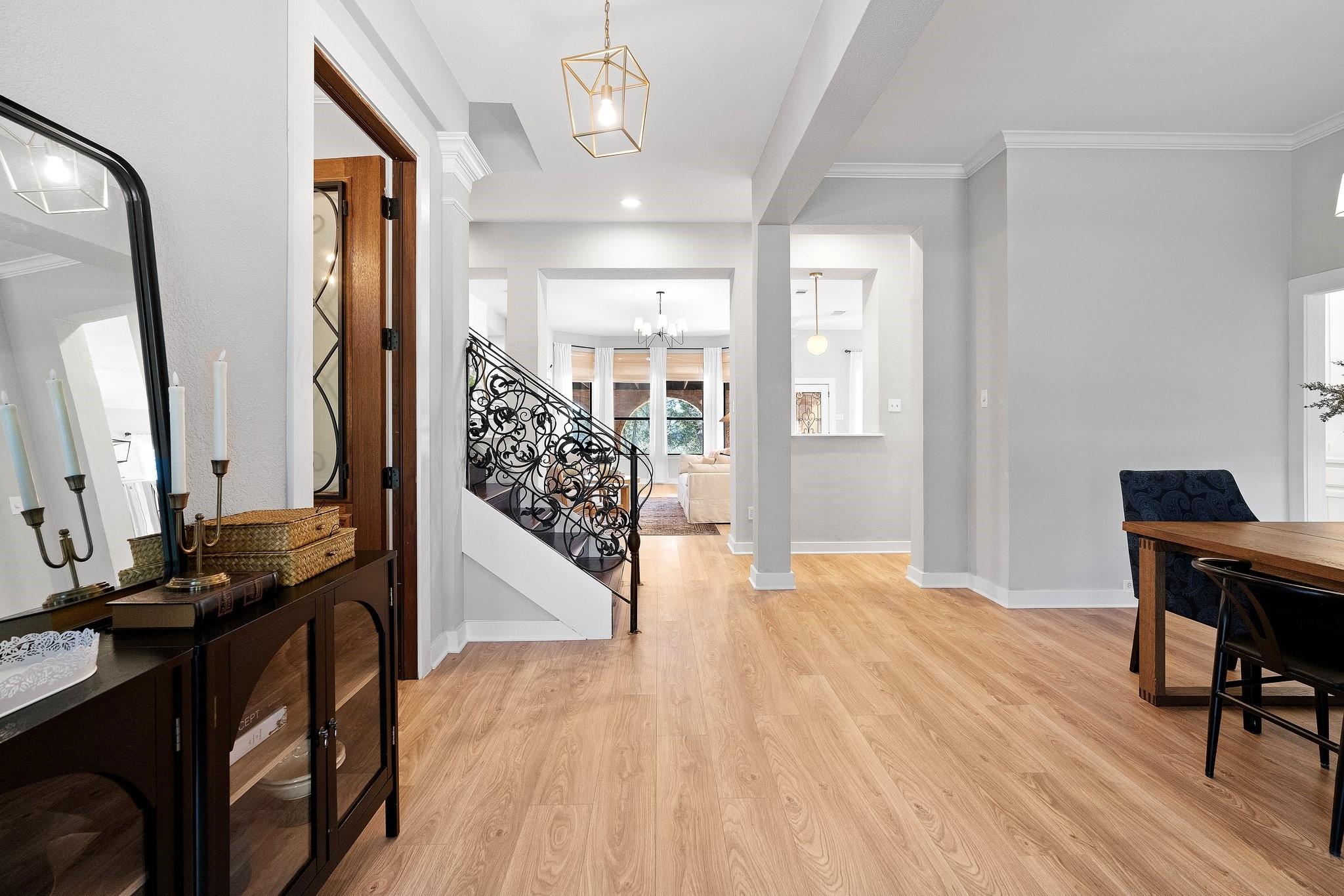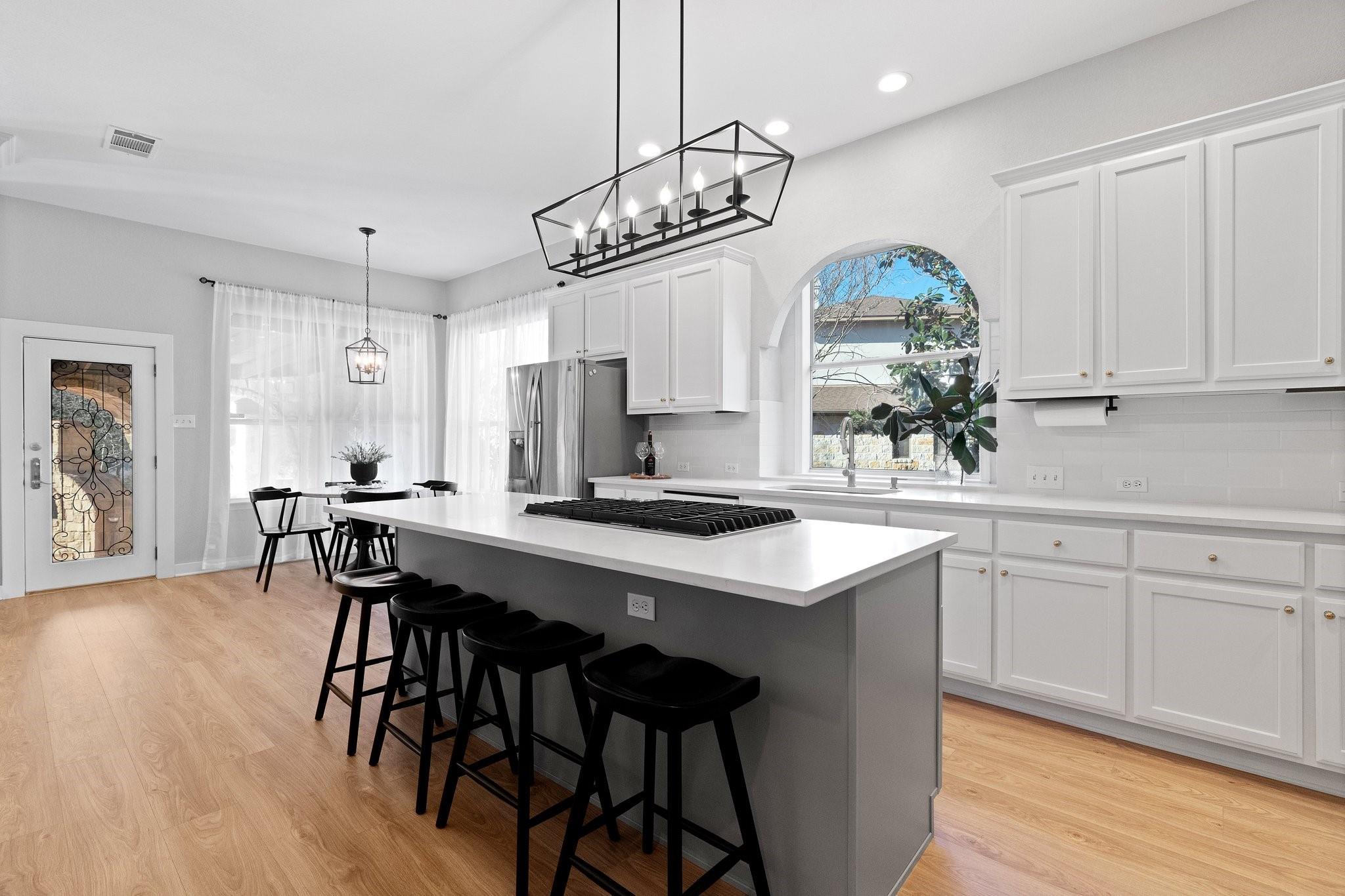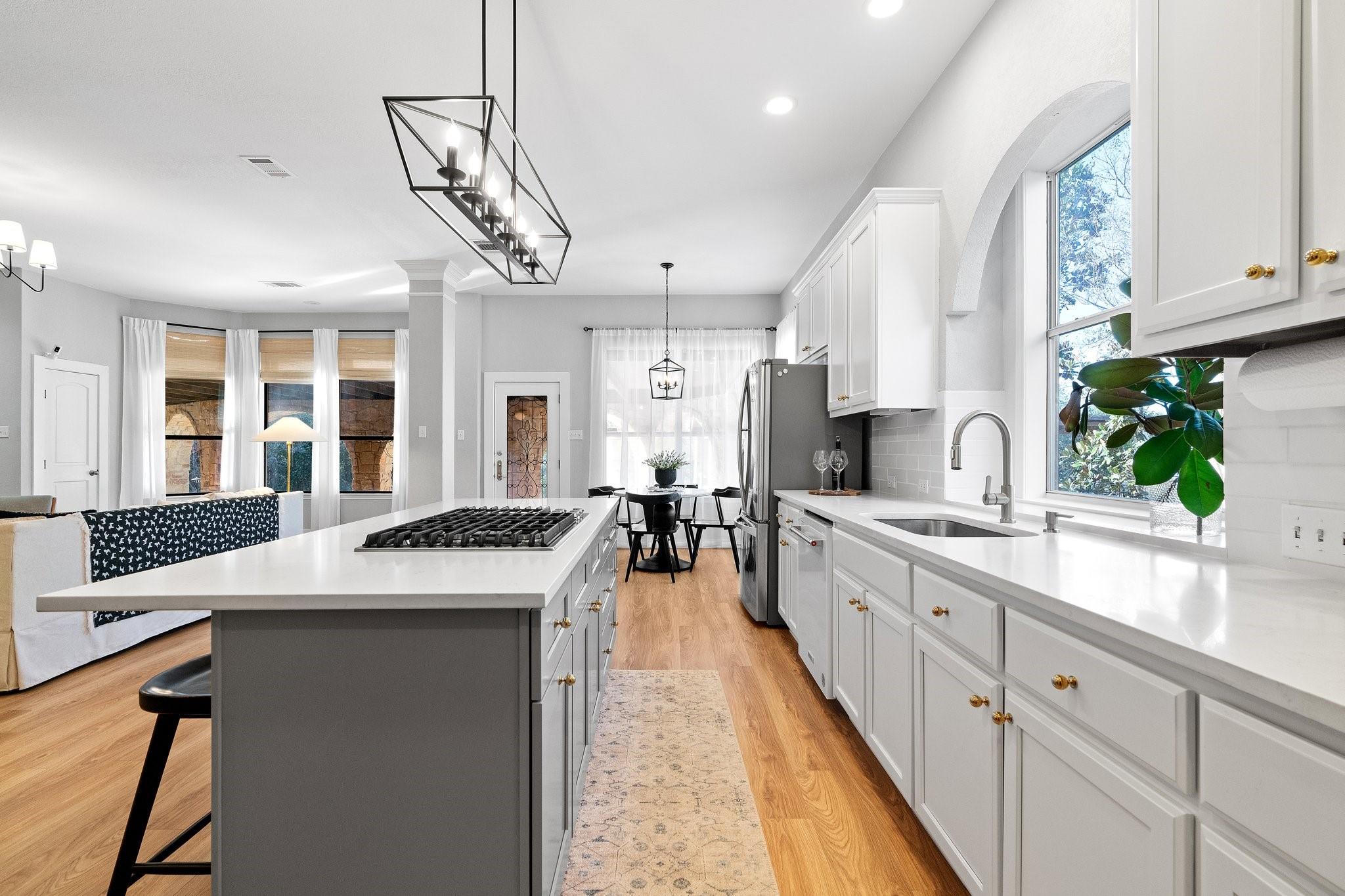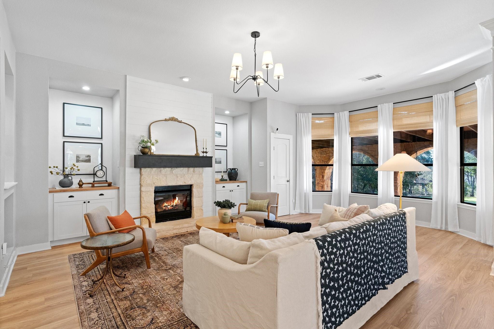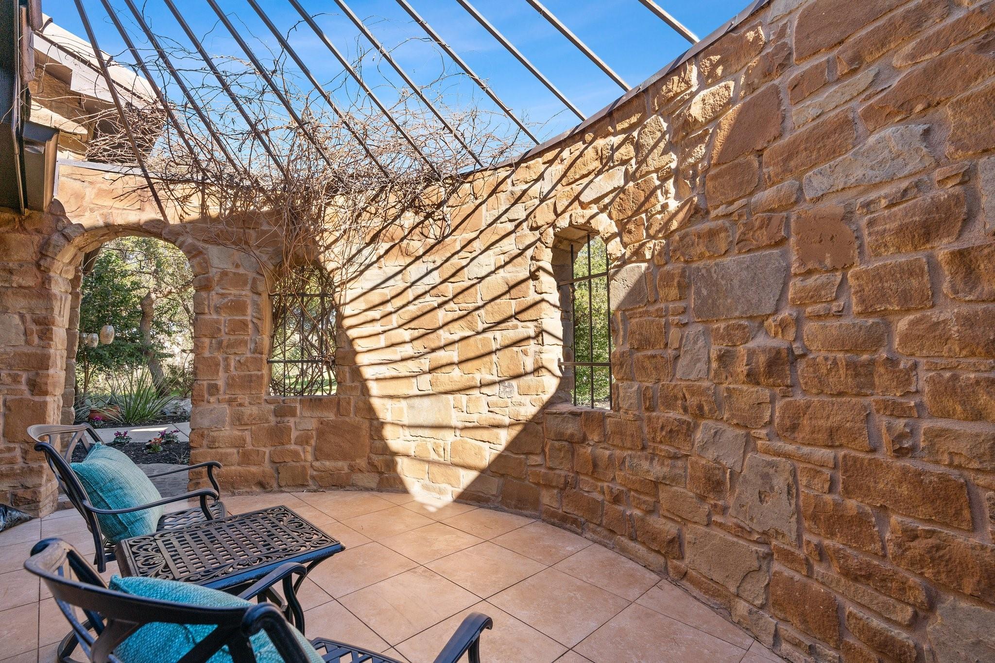 Spectacular luxury estate in West Austin’s prestigious Sterling Acres community. Stunning high-end community with coveted Eanes ISD schools. This breathtaking estate is situated on a sprawling, tree-filled, 1-acre lot and comes complete with an entertainer’s backyard oasis including an in-ground pool & spa, outdoor kitchen pavilion, covered Tuscan porch, terrace with epic sunset views, a custom-built gazebo, and more. Timeless curb appeal with exquisite Tuscan-style architectural design, full stone masonry, a storybook-style tiled roof, circular front drive, arching covered front entry with an enclosed courtyard, and side-facing 3-car garage. Step inside this expansive 3,623 sq ft luxury home to find the perfect marriage of classical elegance and modern design. This home provides 5 bedrooms, 3.5 baths, plus a dedicated home office, formal dining, bonus 2nd floor living area, and a luminous open floor plan for the main living area and gourmet kitchen. Featuring beautifully maintained, wood-look vinyl flooring, elegant crown molding, recessed lighting, a fireplace, sophisticated built-ins, tasteful modern finishes, and intricate ironwork on the doors & railings. Amazing designer kitchen with updated SS appliances including built-in double ovens plus an oversized entertainer’s island. Enjoy a secluded main floor owner’s suite with a spa-like ensuite bath boasting handmade tile floors. The star of the show is the spectacular backyard oasis with a majestic in-ground pool & spa and panoramic, tree-filled hill country sunset views. A sprawling grassy yard area stretches beyond the pool area, surrounded by soaring shade trees. There is also a secluded, custom-built gazebo at the back of the property where you can enjoy breathtaking vistas. Superb EANES ISD schools include Valley View Elem, West Ridge MLS, and Westlake HS. Low tax rate (1.45 for 2023). Easy 12-mile commute to Downtown Austin. Schedule a showing today and make this one-of-a-kind Tuscan-style estate your own!