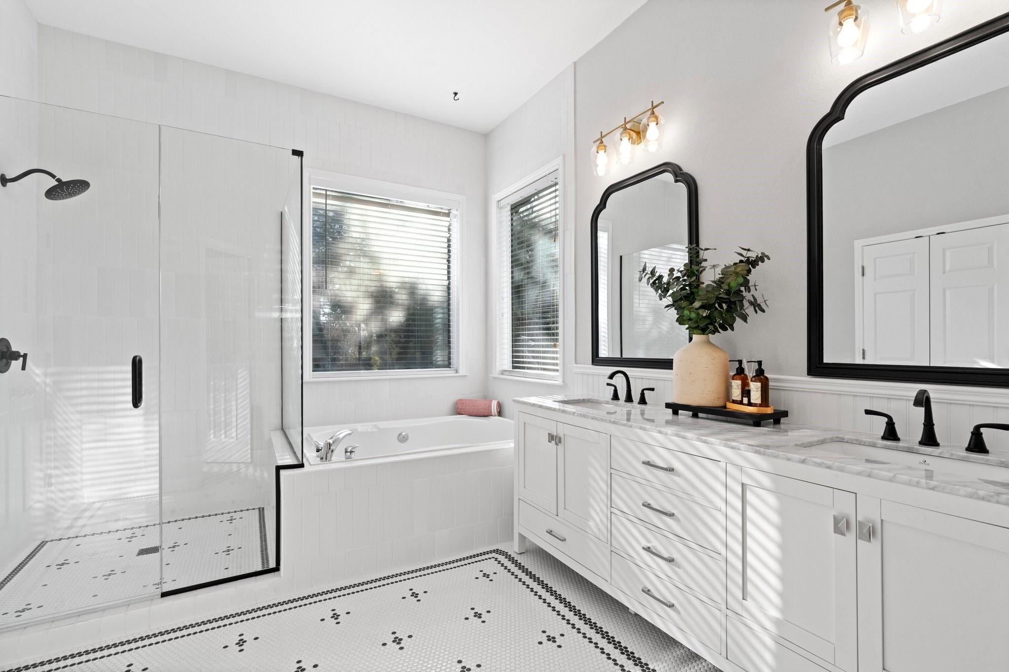 | Interior Features | Breakfast Bar, Built-in Features, Ceiling Fan(s), High Ceilings, Chandelier, Granite Counters, Quartz Counters, Double Vanity, Electric Dryer Hookup, Entrance Foyer, Interior Steps, Kitchen Island, Multiple Dining Areas, Multiple Living Areas, Open Floorplan, Pantry, Primary Bedroom on Main, Recessed Lighting, Soaking Tub, Storage, Walk-In Closet(s), Washer Hookup | |