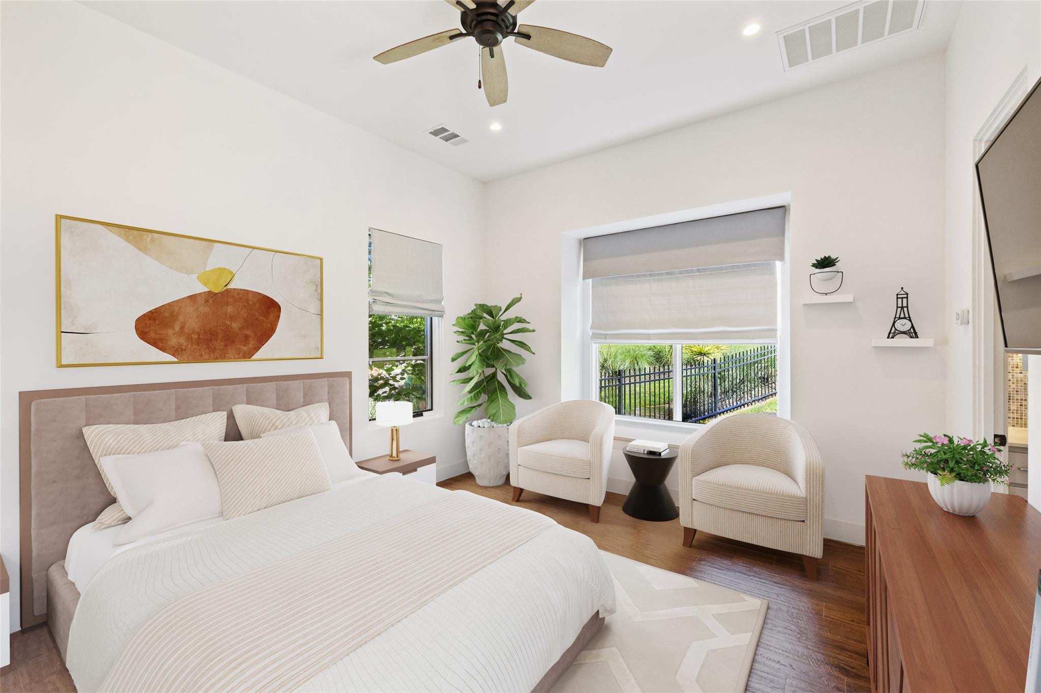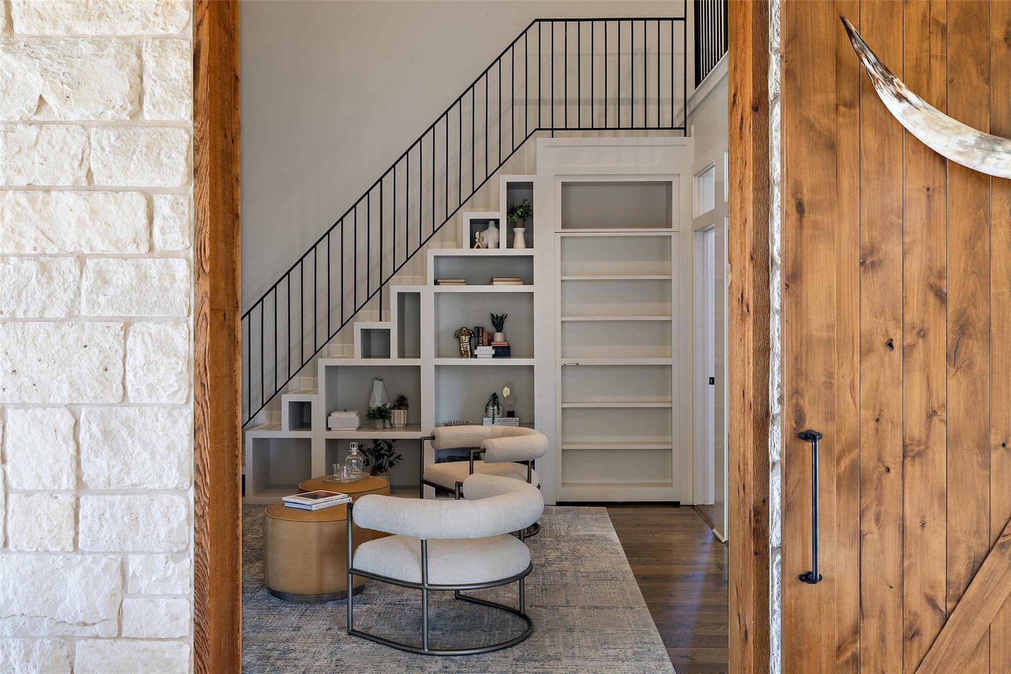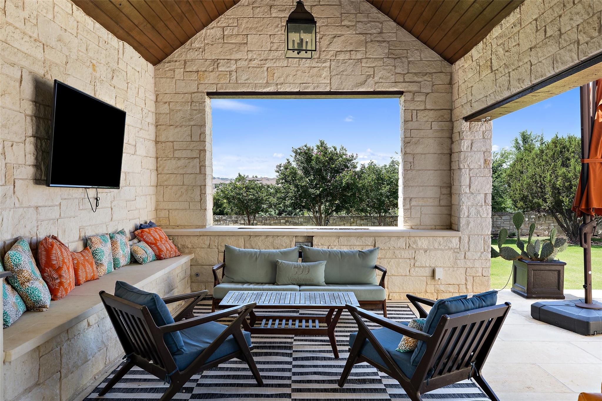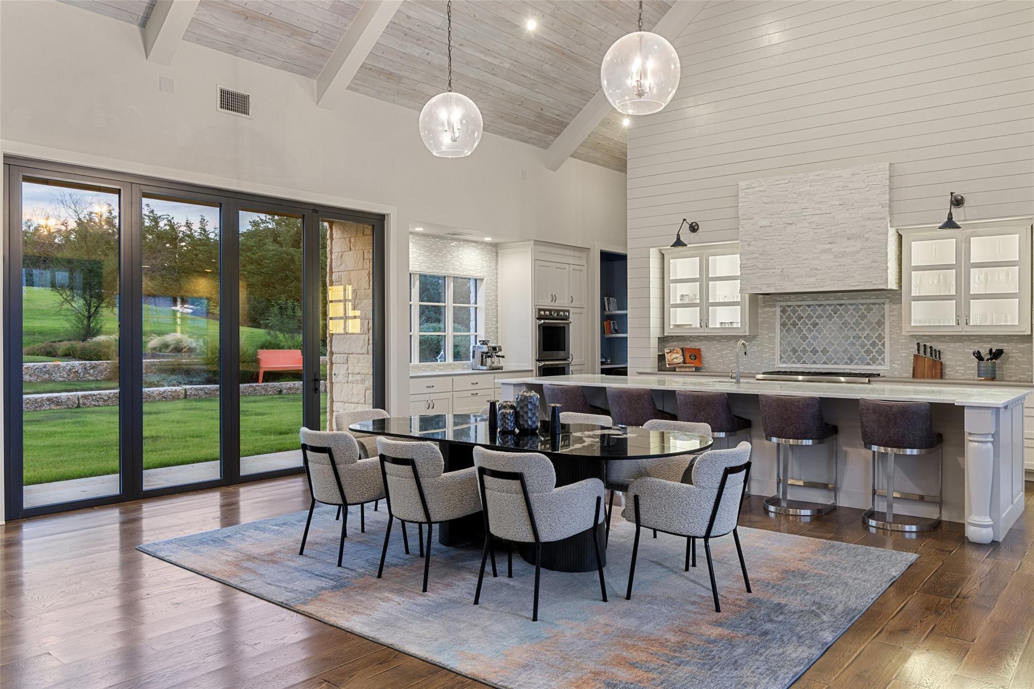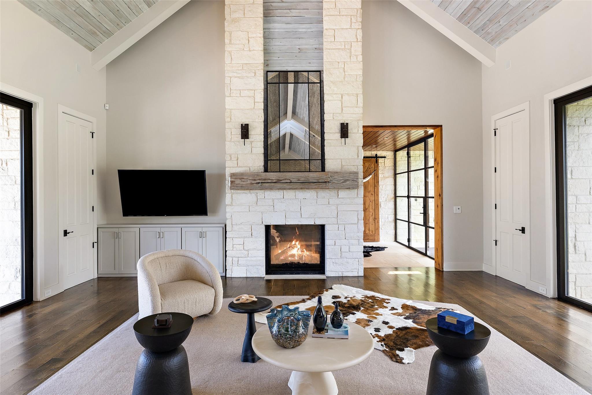 Located in the prestigious Peninsula at Rough Hollow, this modern farmhouse is located on a lush 1.176 acre lot. This one story home is the epitome of indoor/outdoor living at its finest. Upon entering the private courtyard through oversized barn doors, you have the main house on the right and guest house on the left. The show stopping entrance to the main house captivates you with floor to ceiling windows and inviting fireplace. Your spacious great room, dining room and kitchen area feature soaring vaulted ceilings, multiple built in wet bar areas, wine room & more. The chef's kitchen features an oversized center island, state of the art appliances and walk in pantry. Open the accordion glass doors to enjoy a back yard oasis featuring multiple lounge areas, negative edge pool & spa, covered outdoor kitchen with fireplace and oversized yard that can easily fit a pickle ball court, putting green or basketball court - truly an entertainers dream. Overlooking the beautiful back yard is a glass office with floor to ceiling glass and hill country views. The spacious primary suite features a unique day bed and storage spanning the back wall. Natural light fills the primary ensuite with his & her sinks, claw foot tub and large seamless glass shower with outdoor access. Through the ensuite you will find a large custom closet and laundry room. The detached casita features a full bathroom, perfect for a mother-in-law suite, au pair, home office or gym. The modern floor to ceiling windows combined with the natural Texas stone create this beautiful private retreat in the Hill Country and is just 45 minutes to Downtown Austin & ABIA. Spanning 3 miles of Lake Travis shoreline you can enjoy all of the Rough Hollow amenities including 22 miles of hiking/biking trails, access to the Yacht Club & Marina, state of the art fitness & community center. To read more about Rough Hollow amenities visit: https://roughhollowlakeway.com/amenities/.