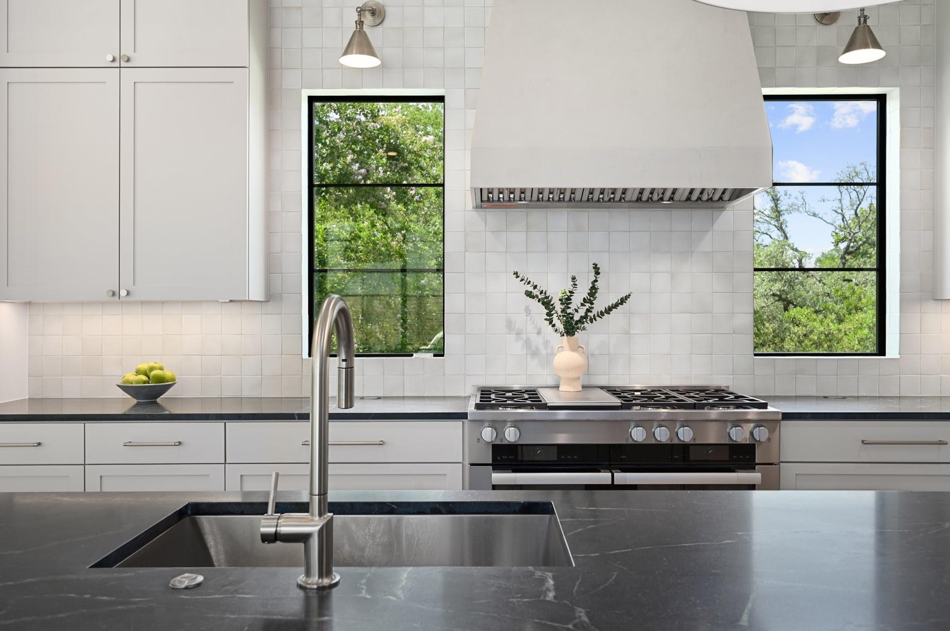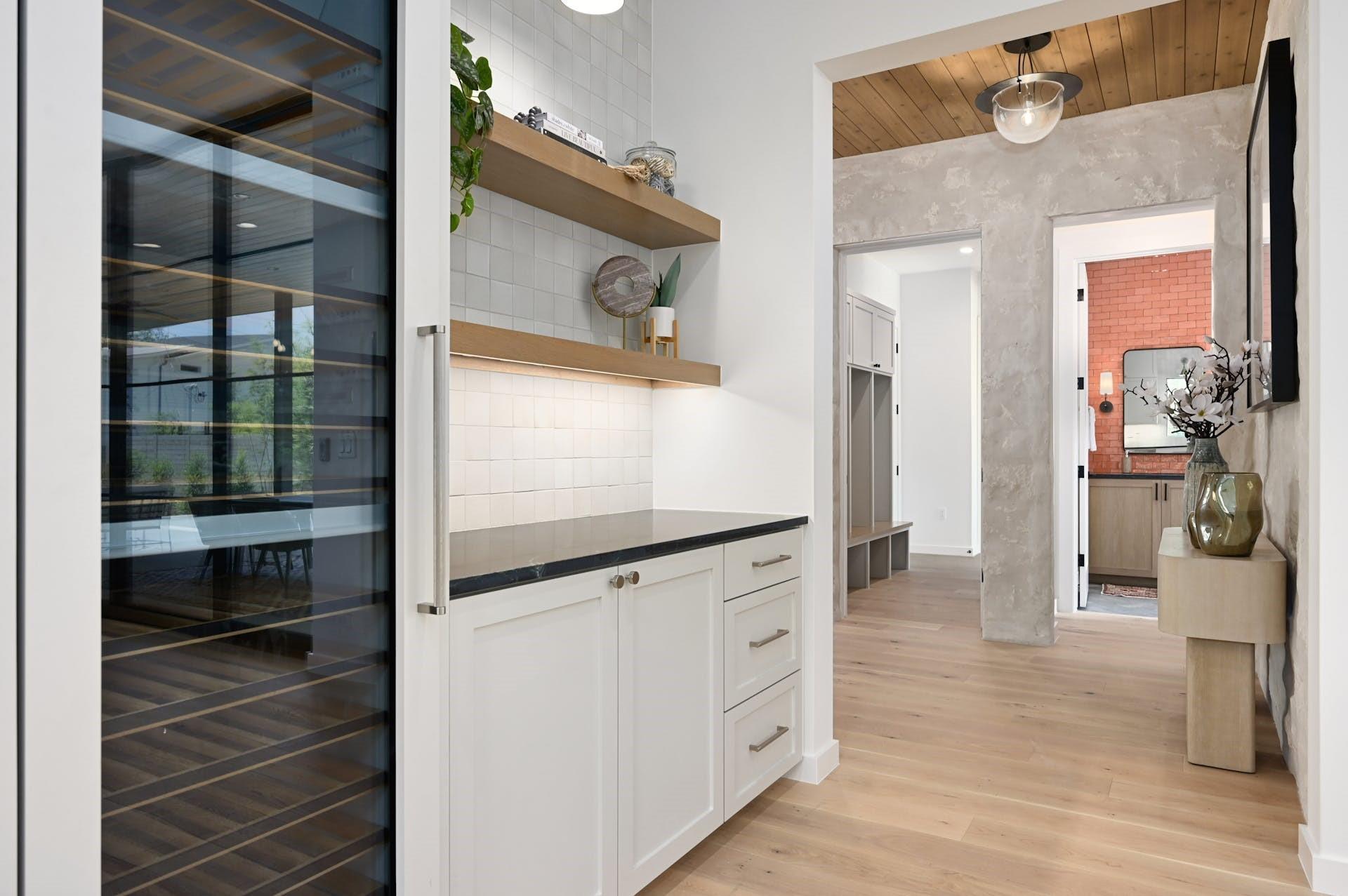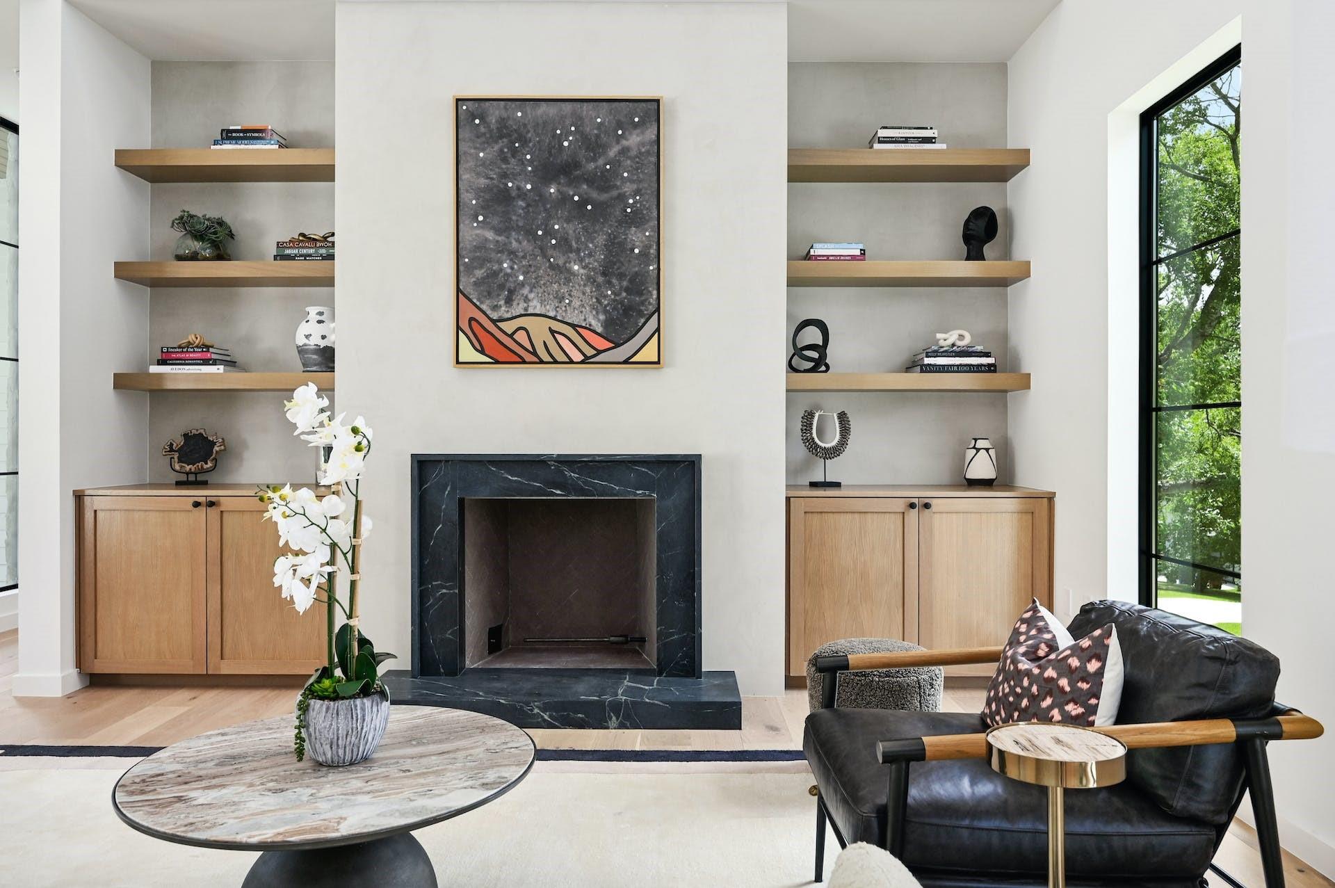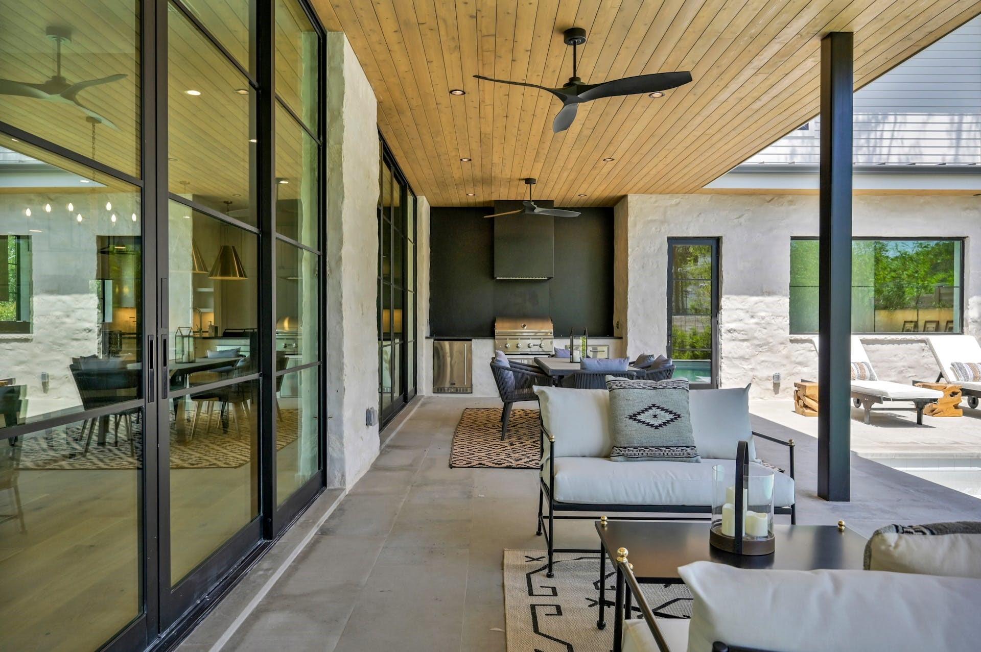 Experience refined, modern luxury with the warmth of traditional interiors in this new home by renowned builder, Moazami Homes. *6.5% fixed rate available. The exterior of the residence is comprised of locally sourced limestone with a custom slurry that extends into the foyer with a tongue and groove ceiling. The gourmet kitchen offers Miele appliances including a 48-inch dual fuel range with steam (double ovens, 6 burners, and a griddle), a full-height wine fridge, black soapstone countertops, a 10 ft island, a microwave drawer, custom soft-close cabinetry, handmade tile backsplash, a smooth plaster hood, and a butler’s pantry. Additional high-end finishes include Marvin windows, Western sliding door systems, French oak floors, and a masonry fireplace with smooth plaster.