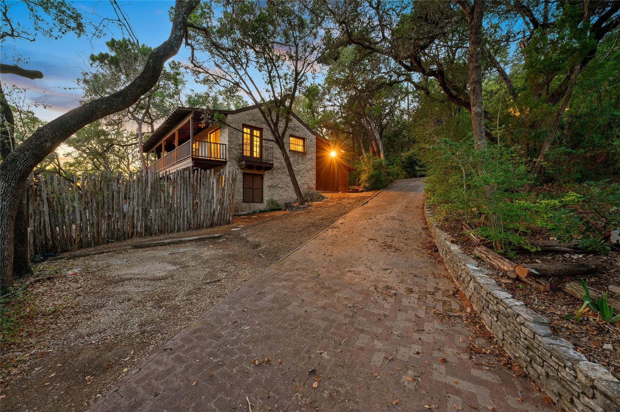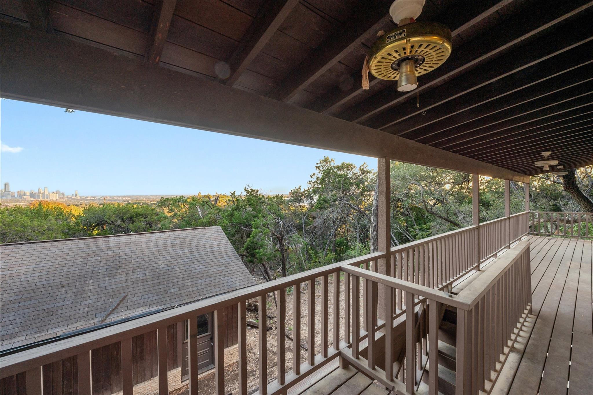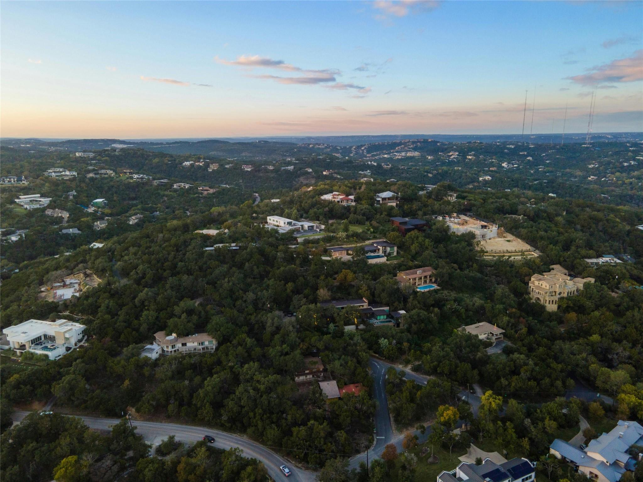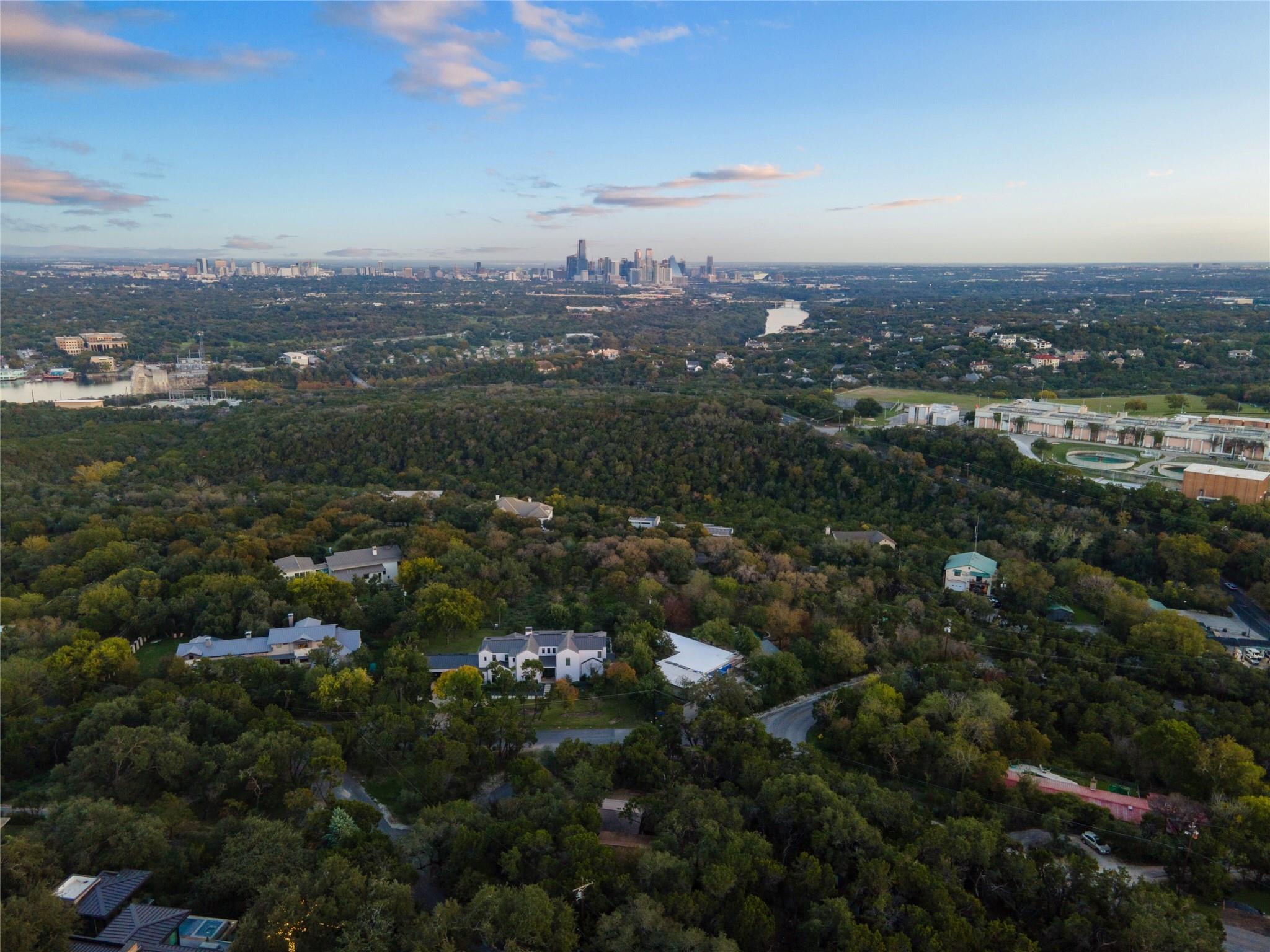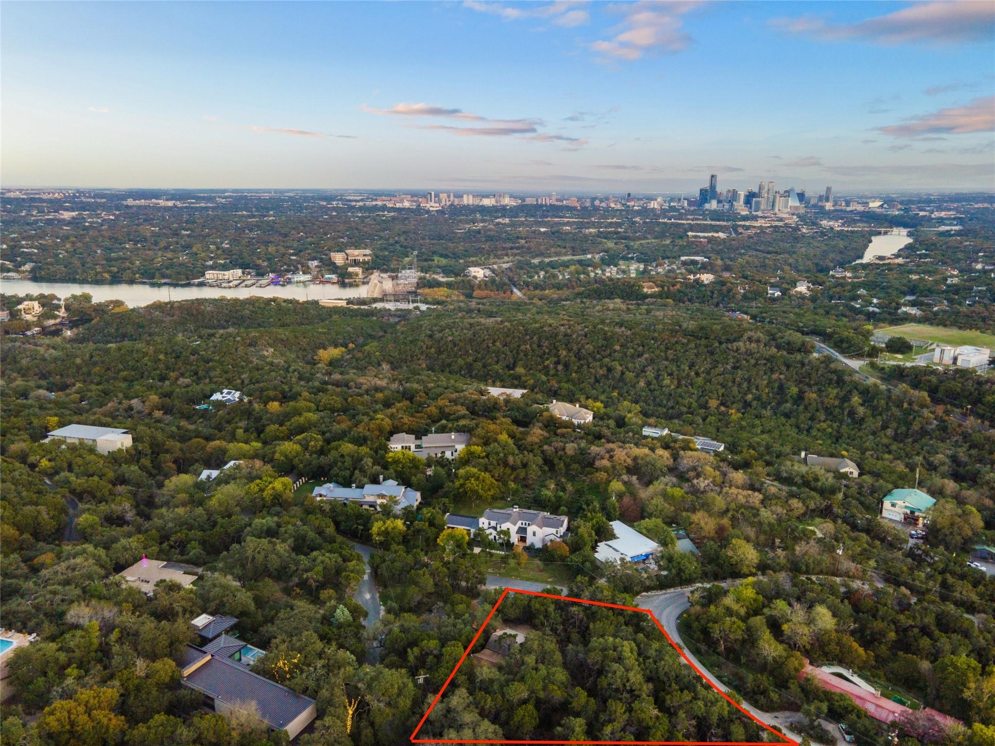 Rare Westlake lot with a dramatic city view overlooking downtown Austin to the east! This full 1-acre is a peninsula-type lot: Bordered by streets on 3 sides (no adjoining side or downhill neighbor, very unique). The existing split-level 3 bed 2 bath home features the stellar unobstructed view, a detached garage and U-shaped driveway. Remodel or scrape for your new-build. Enjoy this prime location and the approximate 10 minute drive to downtown Austin! Recent Survey is available.
