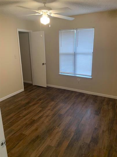 This corner 2-story apartment located minutes from downtown Lockhart, Texas. 2 bedroom, 1.5 baths, with a balcony attached to the upstairs master bedroom, and a patio and small fenced in yard downstairs. Laundry facility onsite, no hookups in unit.
