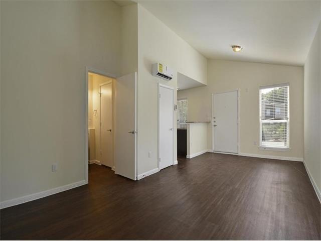 This 2nd floor studio apartment features vaulted ceilings, granite counter tops, black appliances, vinyl plank wood floors throughout, is Google Fiber ready and is right next door to Gillis Park !