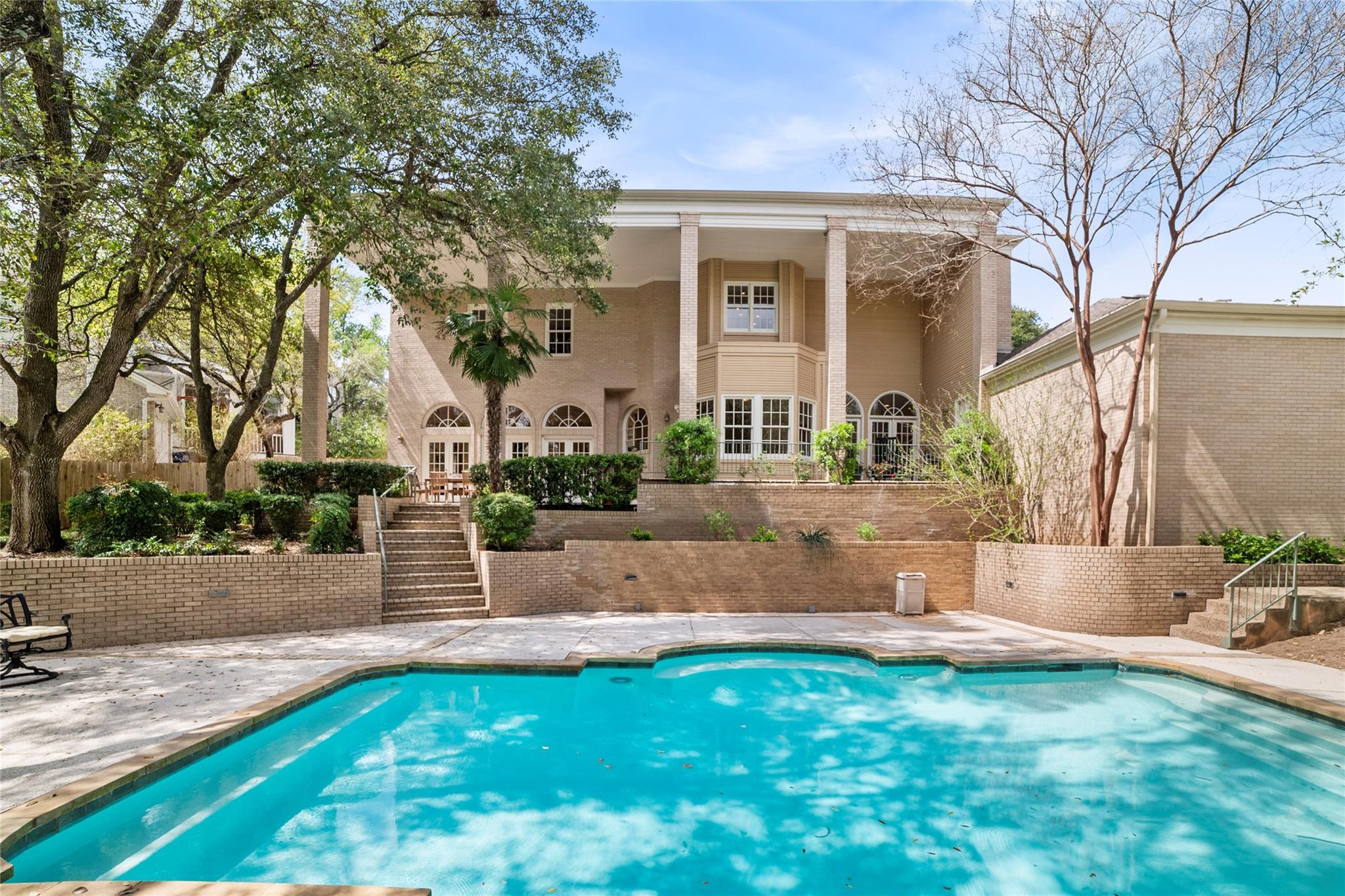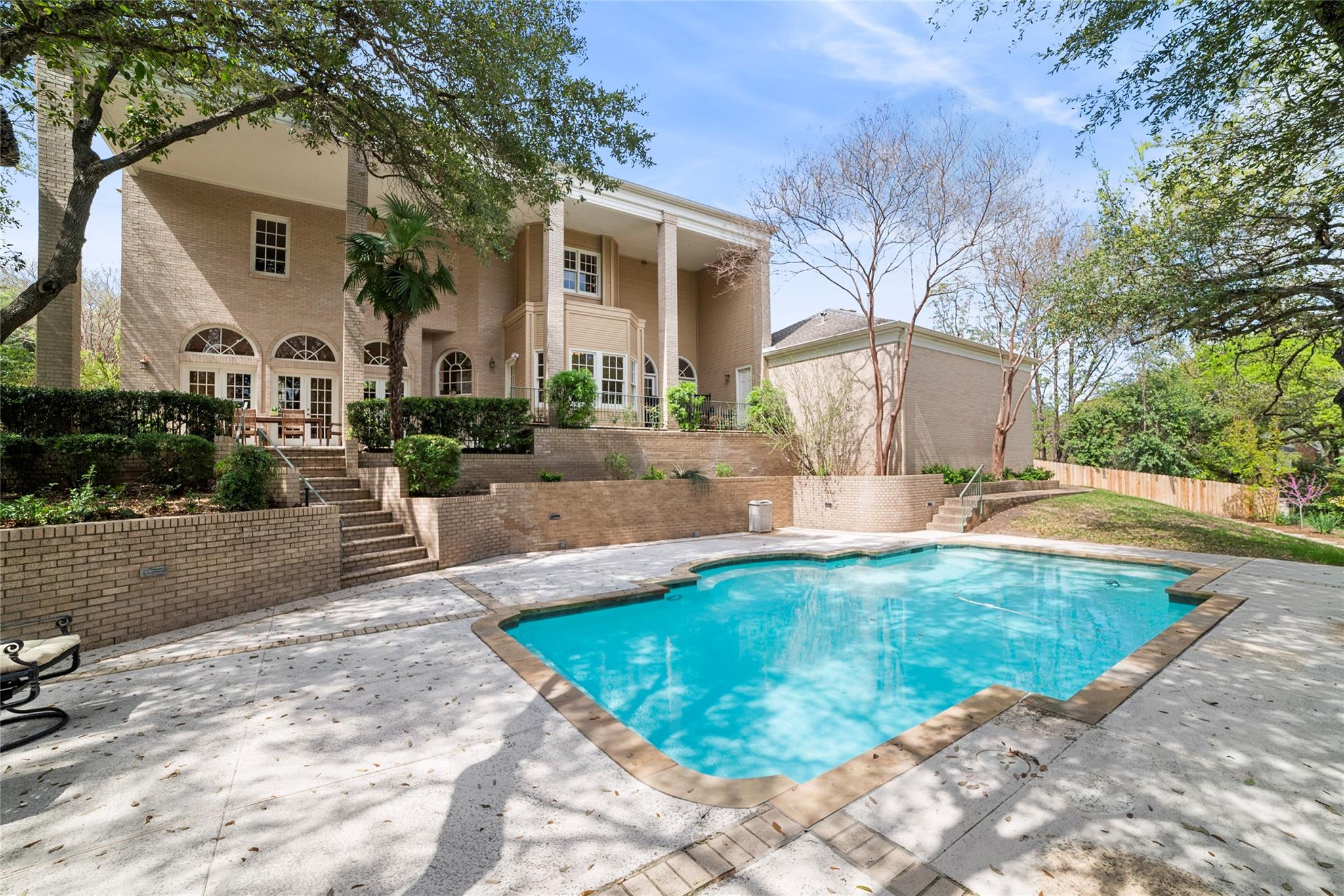 Nestled in the revered Treemont neighborhood, this French Chateau-inspired home merges classic elegance with the serenity of a park-like oasis. Tucked away on a peaceful cul-de-sac within the esteemed EANES school district, this property offers a haven of tranquility just minutes from the vibrant heart of downtown Austin. Its proximity to Zilker Park, as well as coffee shops, shopping, and dining options, ensures convenience without sacrificing privacy.