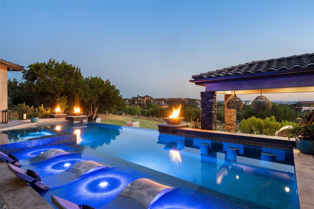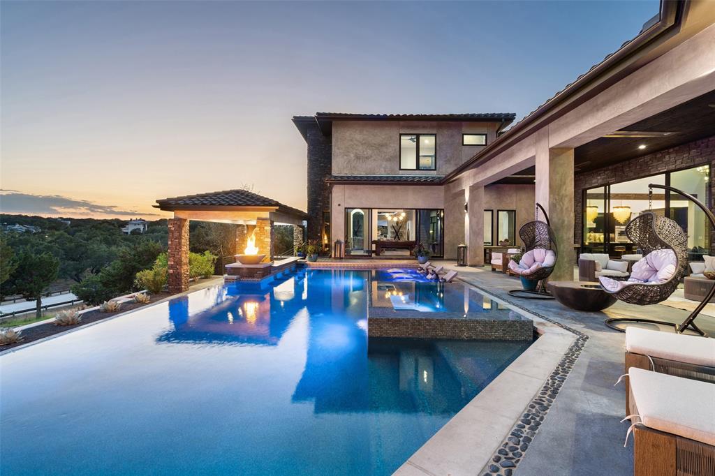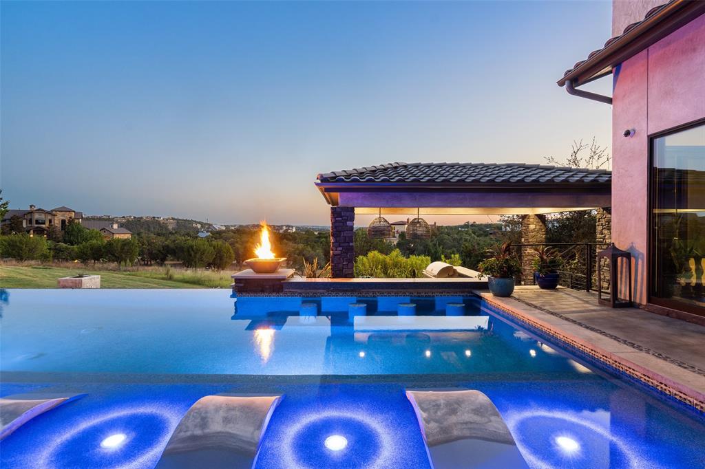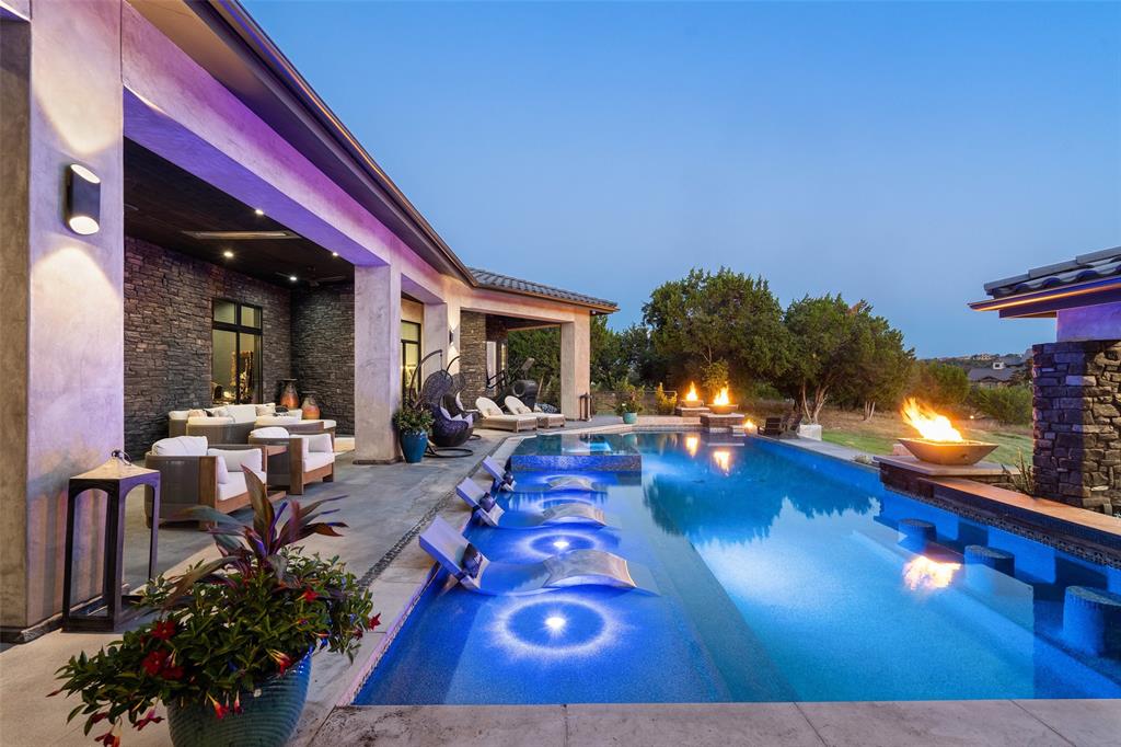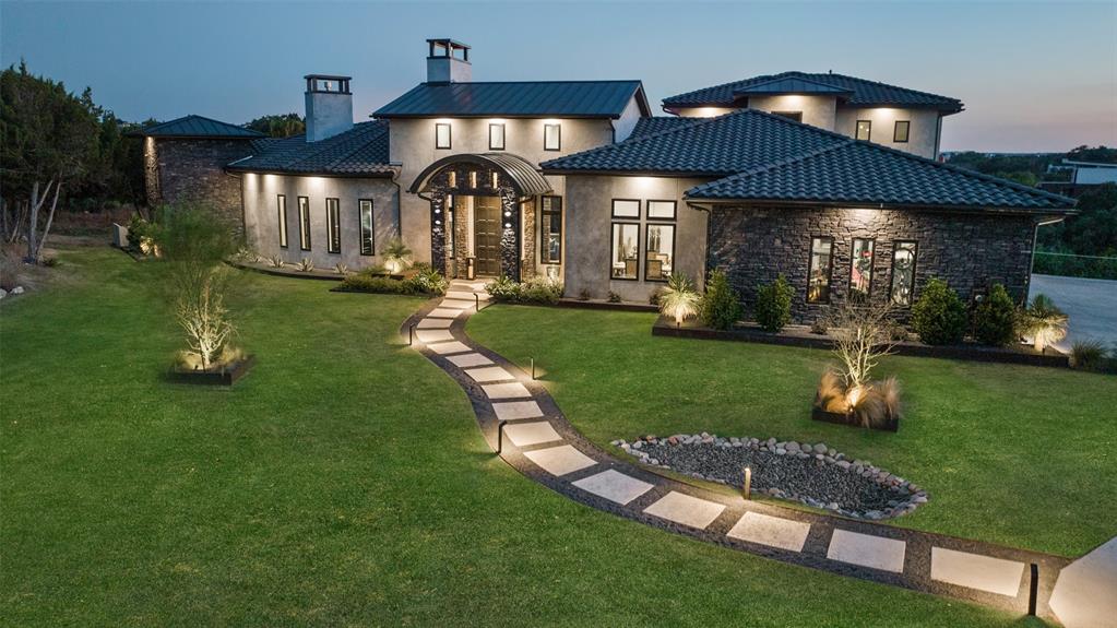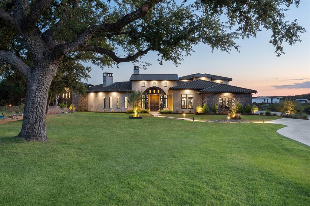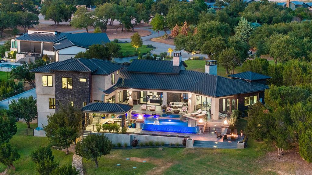 This Magnificent Modern Venetian design, provides timeless architectural features, with a modern flair. Just completed in 2021, this home's story begins with the site selection. The owners fell in love with the elevated culdesac and this particular 1.13 acreage parcel, due to it's southwest facing hill country and partial lake views. The elevation allows for southern breezes in summer and minimal north winter winds. They carefully planned the home to sit back from the street, while still allowing for a private back yard oasis, with amazing views. A perfect floor plan, to embrace the incredible outdoor lake-living spaces and views! This home boasts every indoor living area one could imagine. The greatroom with fireplace and gourmet kitchen, opening to the expansive outdoor living and pool verandahs. A formal dining ideal for family gatherings at holidays and for dinner party entertaining with friends. The owner's primary bedroom gives privacy and provides access to the outdoor verandah, has an in-room fireplace and a large bathroom suite with amazing windows and a walk-in closet, with massive built-ins, all fit for the most romantic couple's style! The owner's large study is also in this corridor. The Fun wing of the home, is overlooking the outdoor verandah, pool and spa space with outdoor kitchen, providing a pool-bath, gameroom, media and a super-cool wetbar! The 3 & 1/2 car garage has massive cabinet built-ins. The large laundry and mudroom, also has a pup-door and outdoor playspace for the furbabies. The second level of the home is dedicated to the 3 additional bedrooms, all with private on suite baths, great views and an additional small, home fitness room. Lakefront Amenities: 150+ large slip marina with golf cart access. Lake-front swim park, with a swim-up bar & grill, a lazy river and water slide. A lake-front park and covered pavilion with seasonal dining and events. Indoor Barn-Style clubhouse, pickle-ball courts and a family fishing pond!