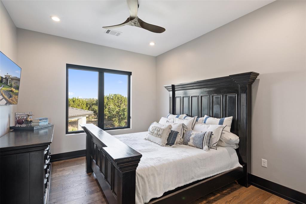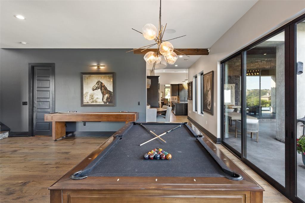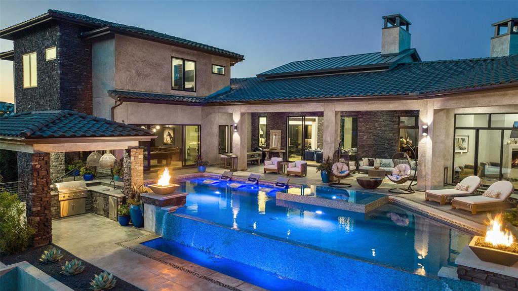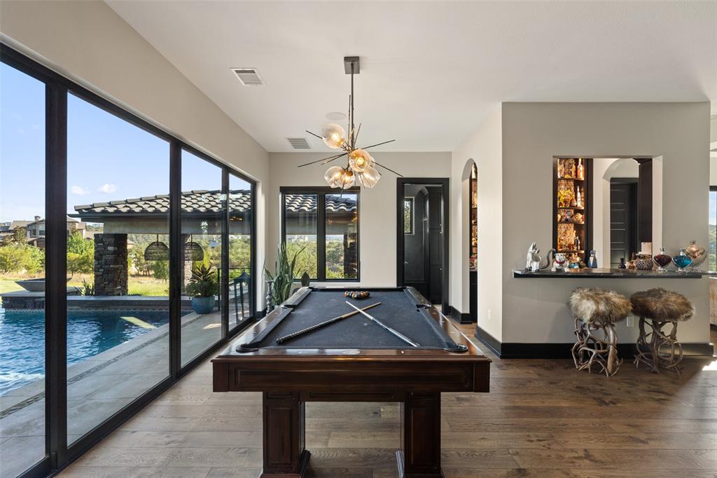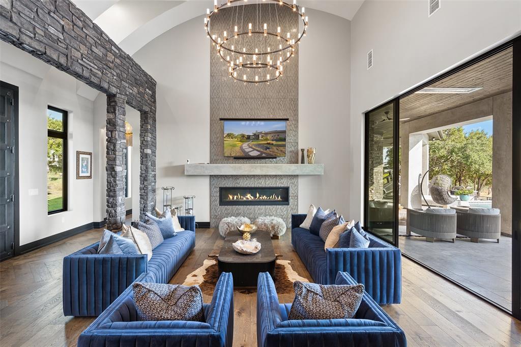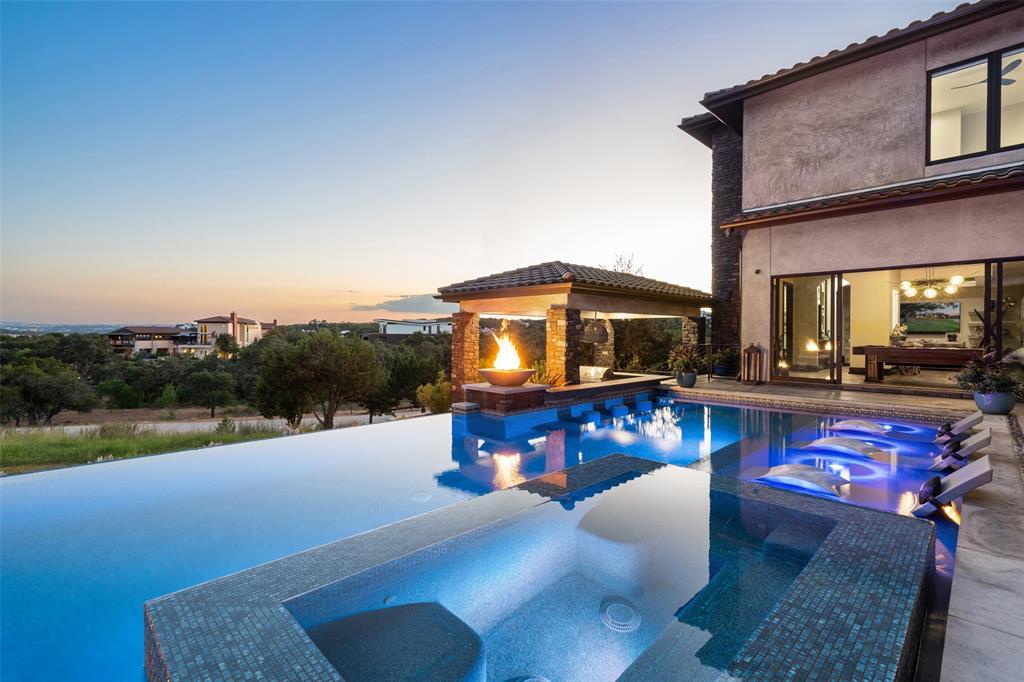 This Magnificent Modern Venetian design, provides timeless architectural features, with a modern flair. Just completed in 2021, this home's story begins with the site selection. The owners fell in love with the elevated culdesac and this particular 1.13 acreage parcel, due to it's southwest facing hill country and partial lake views. The elevation allows for southern breezes in summer and minimal north winter winds. They carefully planned the home to sit back from the street, while still allowing for a private back yard oasis, with amazing views. A perfect floor plan, to embrace the incredible outdoor lake-living spaces and views! This home boasts every indoor living area one could imagine. The greatroom with fireplace and gourmet kitchen, opening to the expansive outdoor living and pool verandahs. A formal dining ideal for family gatherings at holidays and for dinner party entertaining with friends. The owner's primary bedroom gives privacy and provides access to the outdoor verandah, has an in-room fireplace and a large bathroom suite with amazing windows and a walk-in closet, with massive built-ins, all fit for the most romantic couple's style! The owner's large study is also in this corridor. The Fun wing of the home, is overlooking the outdoor verandah, pool and spa space with outdoor kitchen, providing a pool-bath, gameroom, media and a super-cool wetbar! The 3 & 1/2 car garage has massive cabinet built-ins. The large laundry and mudroom, also has a pup-door and outdoor playspace for the furbabies. The second level of the home is dedicated to the 3 additional bedrooms, all with private on suite baths, great views and an additional small, home fitness room. Lakefront Amenities: 150+ large slip marina with golf cart access. Lake-front swim park, with a swim-up bar & grill, a lazy river and water slide. A lake-front park and covered pavilion with seasonal dining and events. Indoor Barn-Style clubhouse, pickle-ball courts and a family fishing pond!