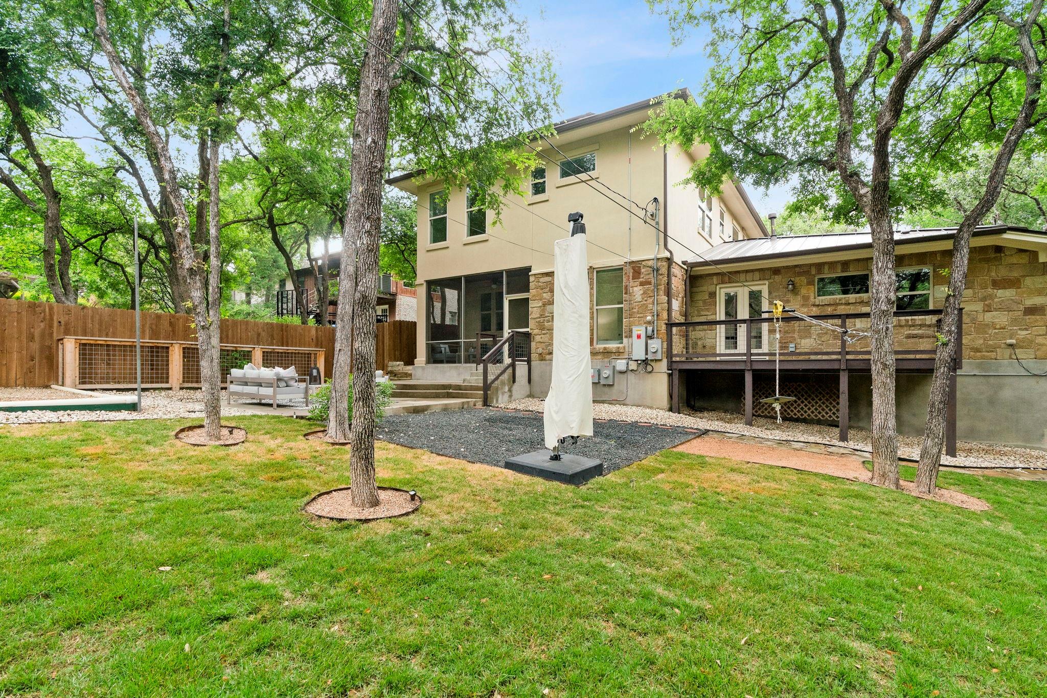 Beautiful custom 2 story home located in Rollingwood in the heart of Westlake. 100 yards from the police station, city hall, lower park, pavillion, playground & community garden. Walking distance to Western Hills Athletic Center with a POOL (Rollingwood WHAC Pool membership can be included at the right offer, Westlake Aquatic pool membership also for sale). Recently updated with paint, light fixtures, kitchen countertops, a new kitchen island, and white oak flooring. The large mud room leads to an oversized garage with ample space for storage or a golf cart, and comes equipped with a Tesla charger. Enjoy the view of the yard from the screened-in porch, or either the deck or balcony. Metal roof and solar panels added in 2022. Show stopper home features a beautiful private mother-in-law multigenerational suite downstairs. Upstairs, find a large master bedroom/bathroom with connected office and lovely balcony in the trees, two additional bedrooms with a jack-n-jill bathroom with tub/shower combo, and an oversized handy laundry room near all the main bedrooms. Chef's kitchen; two living spaces; and a backyard oasis for the kiddos comes with trampoline pad; grassy yard; unbelievable custom treehouse; firepit area for roasting s'mores on cool fall evenings; fenced garden with drip irrigation; and a basketball court (all serviced by a Mosquito Control System). Close to everything Austin has to offer from downtown to the lakes to ACL (Austin City Limits Music Festival), which takes place annually at Zilker Park literally a couple blocks from this amazing home. Come tour today and make this wonderful legacy estate yours for years to come.The location of this home makes for an easy commute to Downtown Austin. Near Zilker Park, Ladybird Lake, and the Airport. You'll find nearby shopping, dining, and schools easy to access from this convenient location. Highly acclaimed Eanes ISD*Close to restaurants/shopping/activities. Minutes to downtown. Rollingwood is highly sought after!