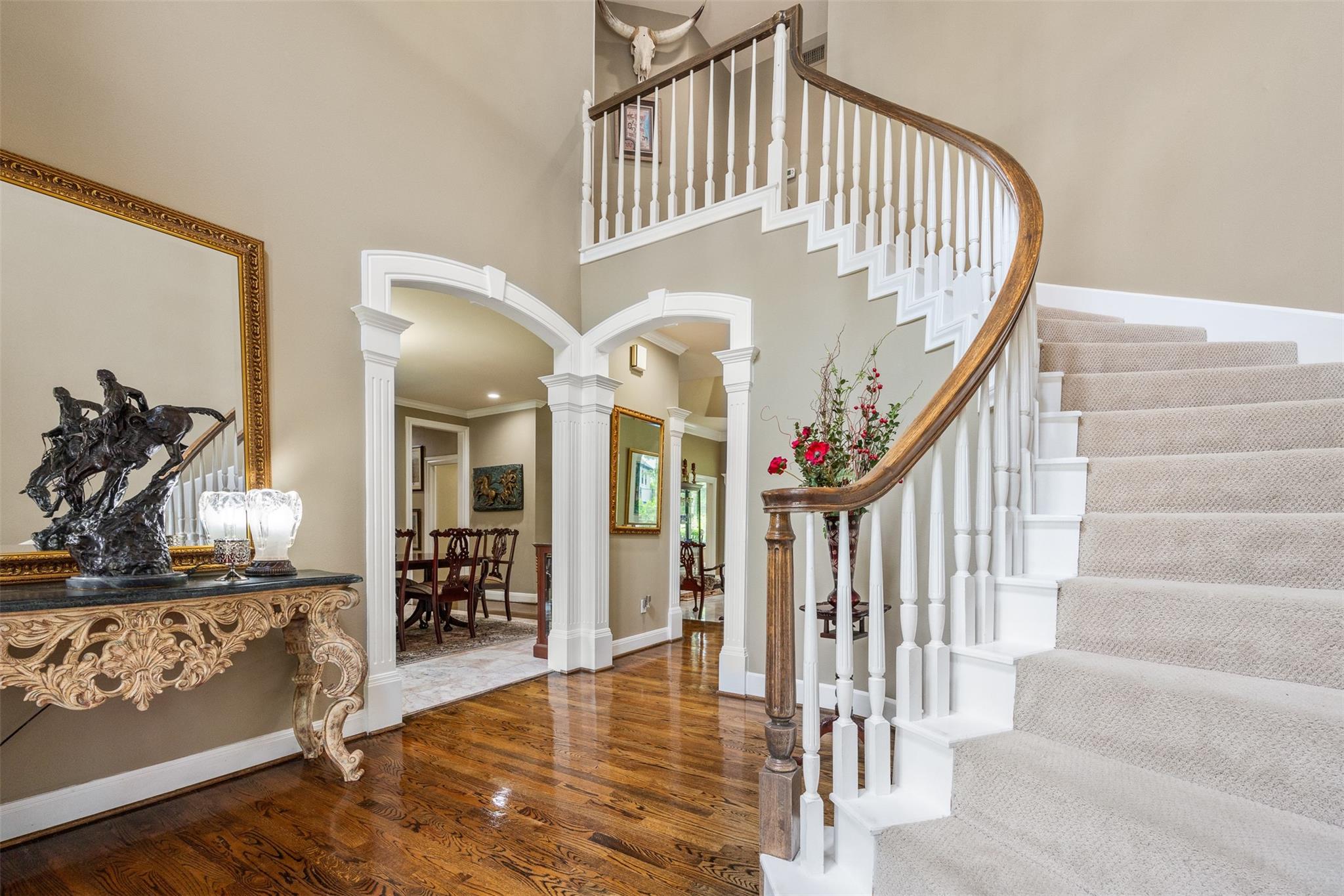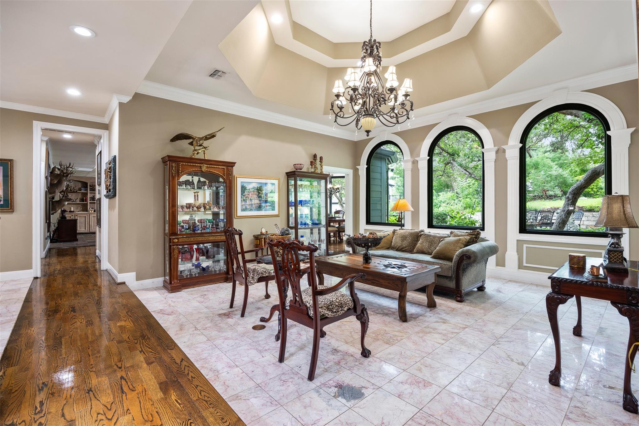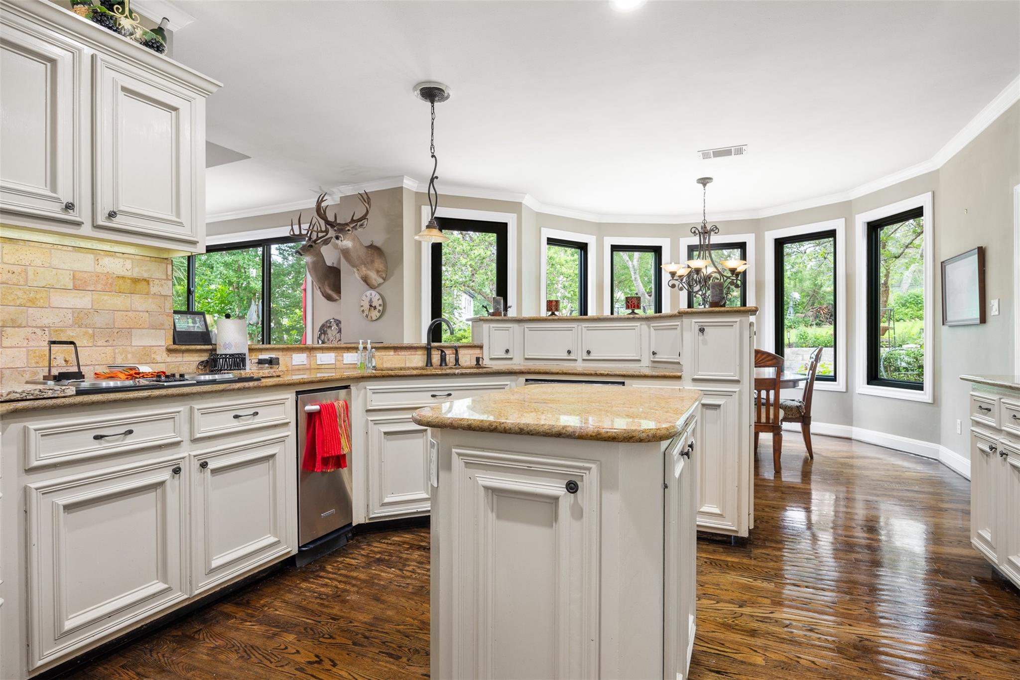 Nestled in the prestigious Rob Roy On The Lake community and part of the highly sought-after Eanes ISD, this immaculate original-owner residence offers timeless design and meticulous attention to detail. The two-story home spans approximately 4,850 square feet, featuring 4 bedrooms (2 upstairs, 2 downstairs), 4.5 bathrooms, and sits on a sprawling 0.75-acre lot, ensuring ample space and privacy. Upon entering, you're greeted by an opulent foyer with a grand staircase. The formal living area boasts wall-to-wall windows, and an exquisite formal dining room lies to your left. The home is adorned with newly installed Renewal by Anderson windows that flood the interior with natural light and offer picturesque views of mature trees and lush gardens. The spacious island/eat-in kitchen and large great room with a fireplace are perfect for family gatherings and entertaining guests. The chef's kitchen includes recessed lighting, granite countertops, a walk-in pantry, double ovens, a cook-top, a trash compactor, and stainless steel appliances. The primary suite is a private haven with a sitting area, double-sided fireplace, jetted tub, open walk-in shower, separate vanities, and his-and-her walk-in closets with built-in cedar-lined drawers. An exterior door leads to a serene outdoor patio. Each of the additional bedrooms is generously sized with personal bathrooms and walk-in closets, ideal for family members or guests. A climate-controlled bonus room with its own HVAC unit offers flexibility for a man cave,craft room,or guest suite. Located within Eanes ISD, the home is zoned for Barton Creek Elementary, West Ridge Middle, and Westlake High. Nearby private schools include St. Stephen’s, St. Gabriel’s, St. Michael’s, and Trinity. Conveniently close to Loop 360, Village at Westlake/HEB, and the Hill Country Galleria, this home exemplifies extraordinary detail and exceptional architectural design, making it a perfect opportunity to be part of the Rob Roy On The Lake community!