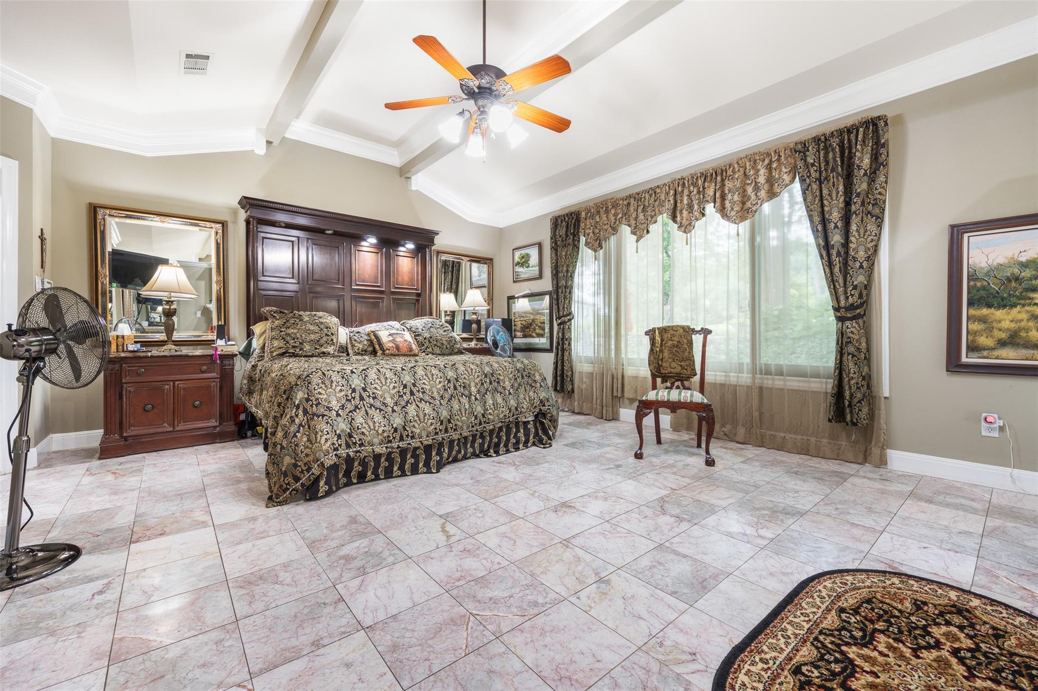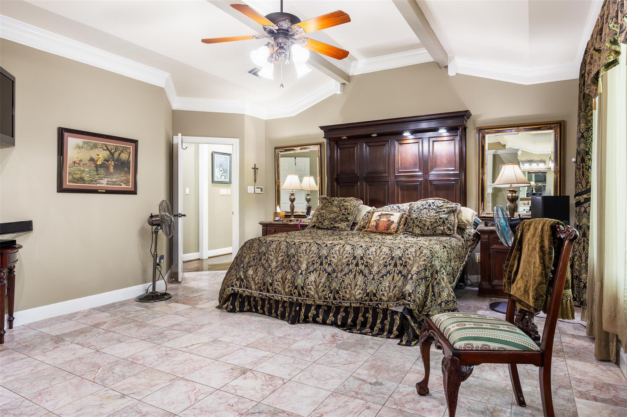 | Interior Features | Bar, Bookcases, Breakfast Bar, Built-in Features, Ceiling Fan(s), Coffered Ceiling(s), High Ceilings, Chandelier, Granite Counters, Crown Molding, Double Vanity, Dry Bar, Electric Dryer Hookup, Eat-in Kitchen, Entrance Foyer, High Speed Internet, Interior Steps, Kitchen Island, Multiple Dining Areas, Multiple Living Areas, Natural Woodwork, Open Floorplan, Pantry, Primary Bedroom on Main, Recessed Lighting, Soaking Tub, Storage, Track Lighting, Two Primary Closets, Walk-In Closet(s), Washer Hookup, Wet Bar, See Remarks | |