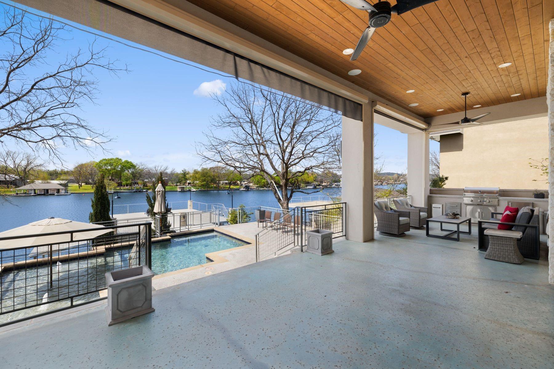 Life is better on Lake LBJ!!! Especially in this stylish custom built lake house, quality construction, fantastic high-end details, designed for large family gatherings or easy everyday living. Enter into a stunning foyer with a wall of windows view to the 80' of stunning open waterfront as your very first impression, large open concept living, gourmet kitchen, beautiful Master Suite with lake views, second bedroom on main level, then a huge game/media room on the upper level with 4 additional bedrooms. Enormous patios on both levels provide great outdoor entertaining, outdoor kitchen and sparkling blue pool. Lakeside entertaining at the boat house, huge deck above and shaded entertaining below, 2 extra large boat slips to accommodate a big' ol' boat. The Ranch on Lake LBJ is an awesome high demand area of Lake LBJ, the community was designed with lake life in mind, a private gated community with only high end, waterfront homes, buffered by a 250 acre private ranch, all oh so very close to the amenities that make this area of the Lake so popular. Deep, cool water of the Colorado Arm, near Perissos Winery, Longhorn Caverns, Fleckenstein Castle and The Legends Golf Course. Horseshoe Bay World Class Resort amenities just around the corner. Lake LBJ is a favorite destination for Texans, with its endless recreational activities and world class amenities just around the corner. Located just 45 minutes Northwest of Austin and 90 minutes North of San Antonio in the Highland Lakes region of the Texas Hill Country.