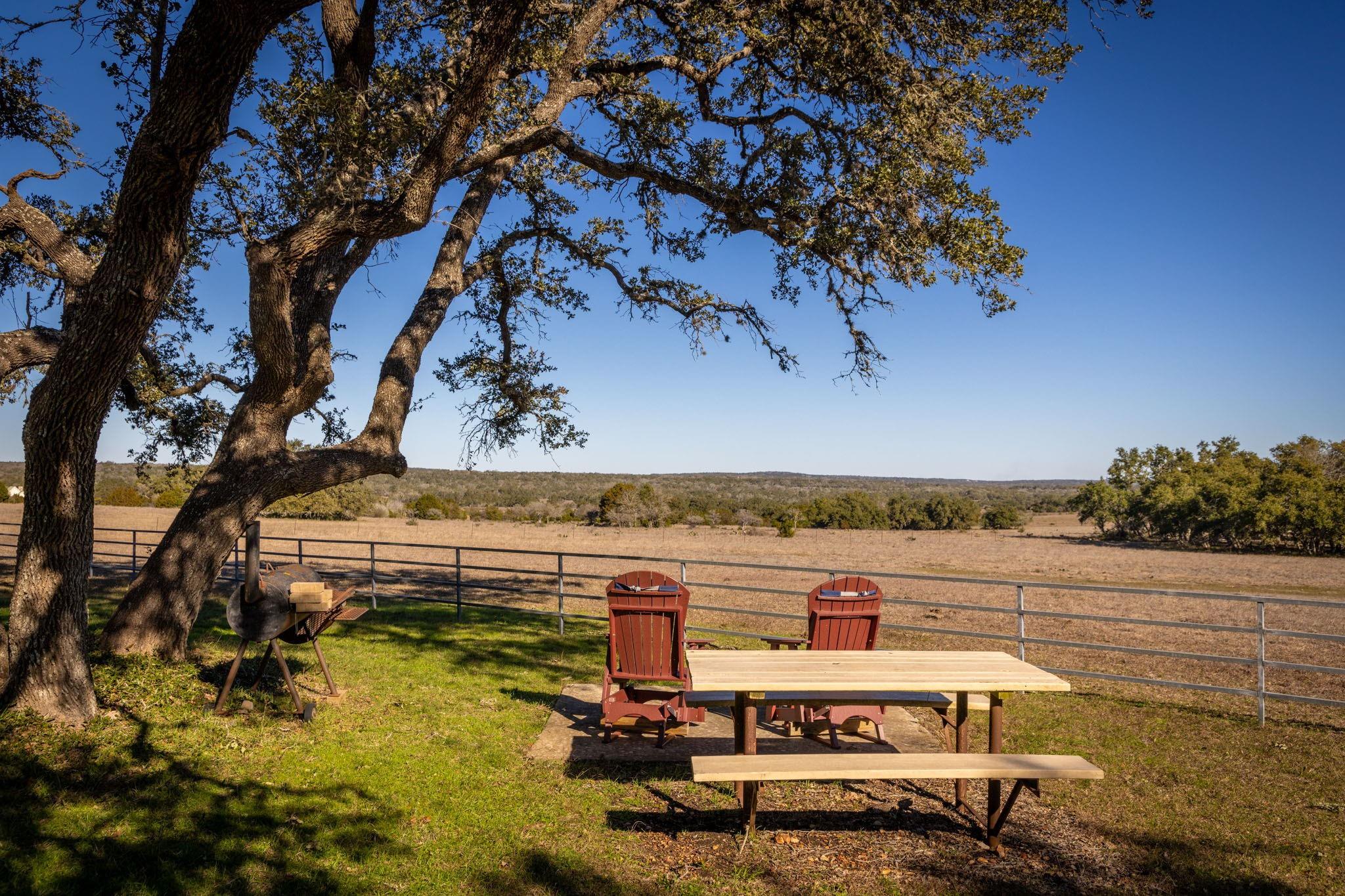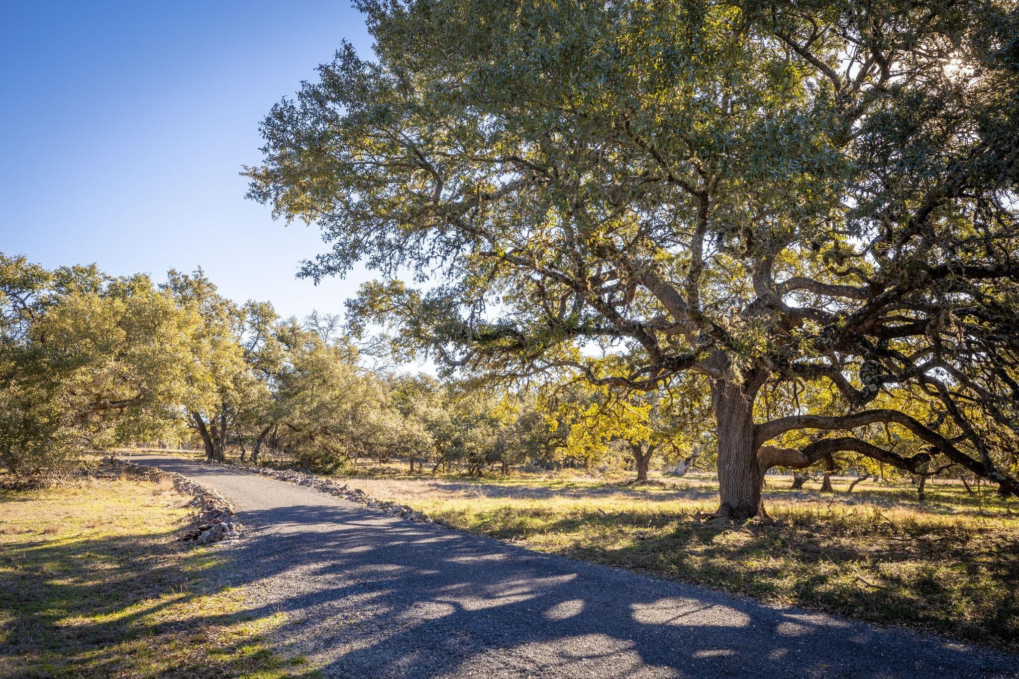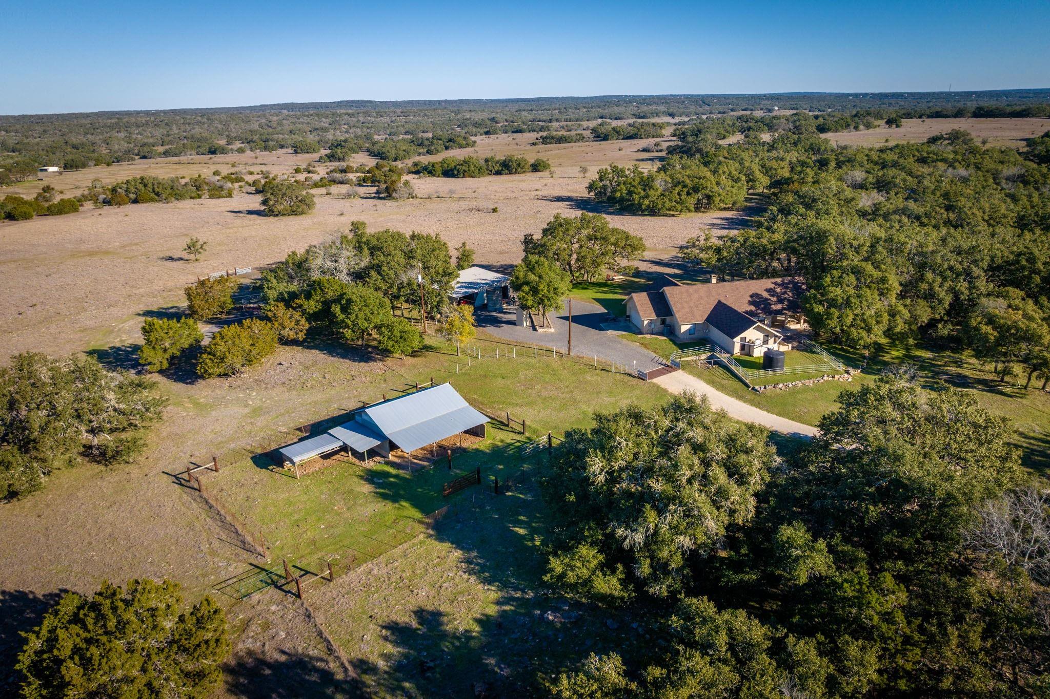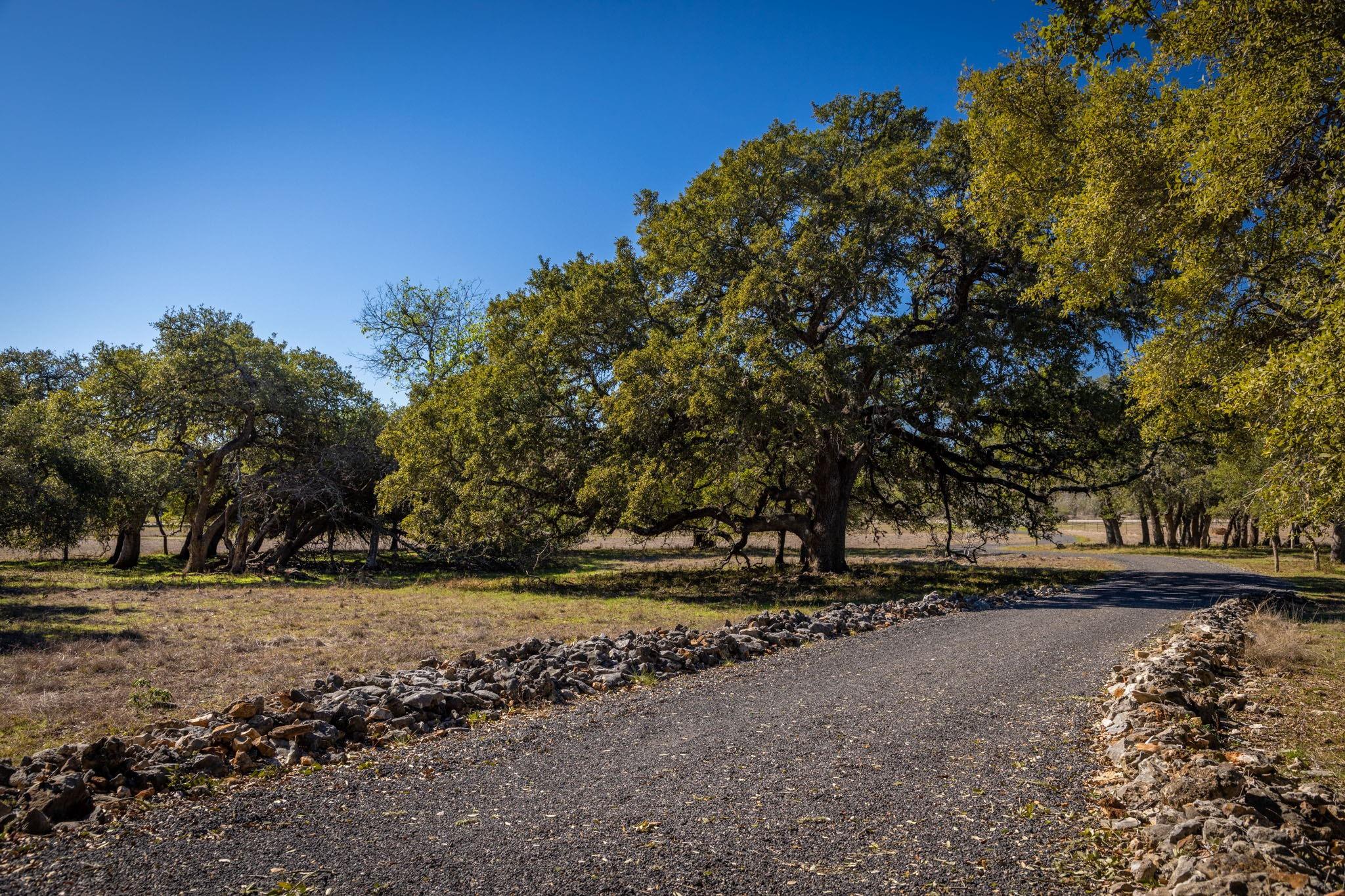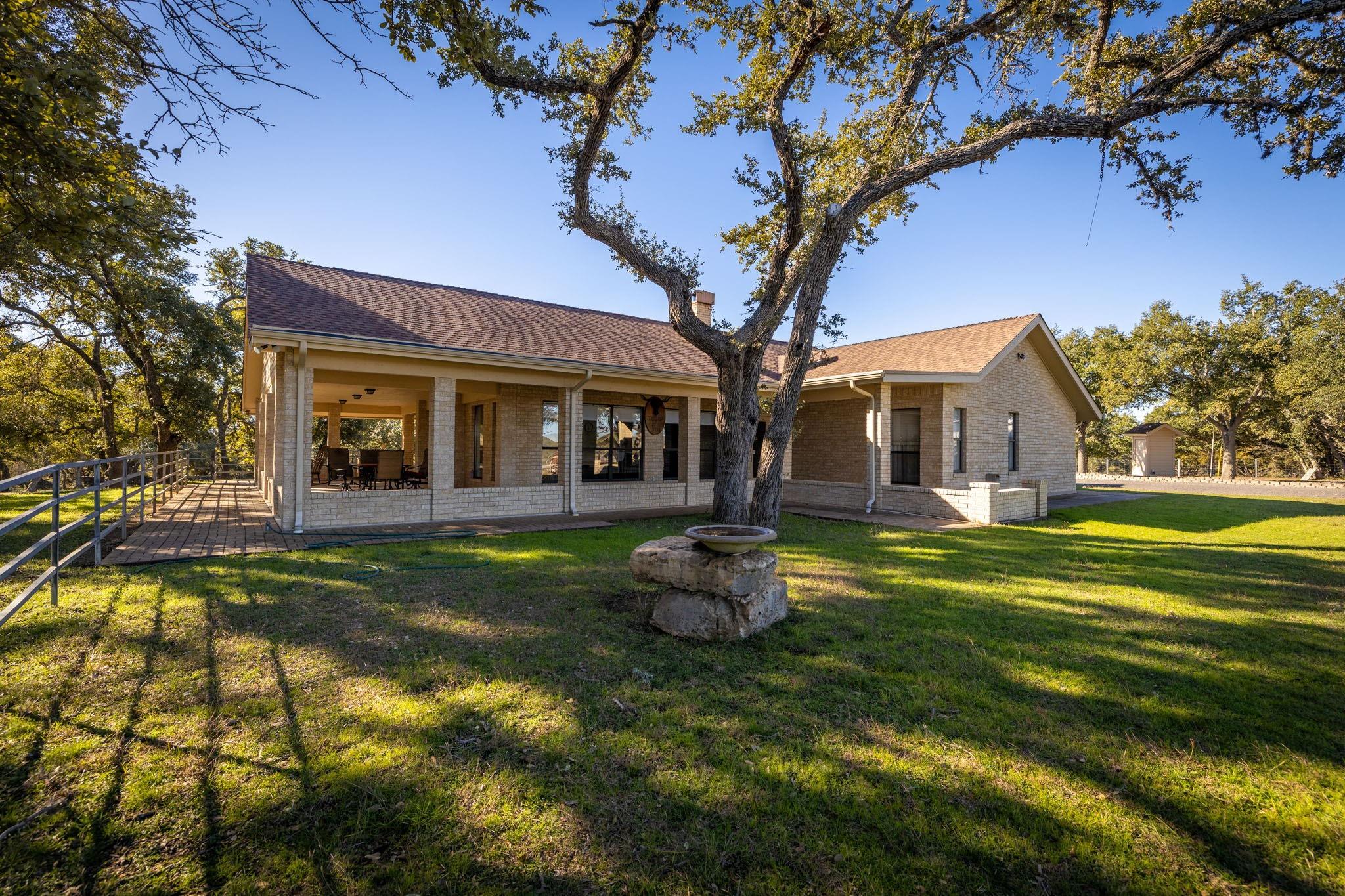 Owned by the same couple for 35 years. The pride of ownership is evident. Every detail, the personal attention, and the dedicated stewardship makes this a legacy property. Meticulously maintained land & homes. Park-like 34 acres manicured with no cactus and cleared of under brush. 2 water wells, 2 septics, 2 houses, excellent ranch fencing, stunning oaks, all weather roads throughout and hill country views from the 1110 feet elevation homesite. The main home is all brick, no carpet, all Italian tile floors, 600+/- sqft of covered porch and high ceilings. The wood burning fireplace has separate ducting to fully heat the house. The open floor plan is flooded with natural light from all the walls of windows. Additionally, there is a Satterwhite log cabin guest house with its own well and septic, full length covered porch all nestled within beautiful oaks.