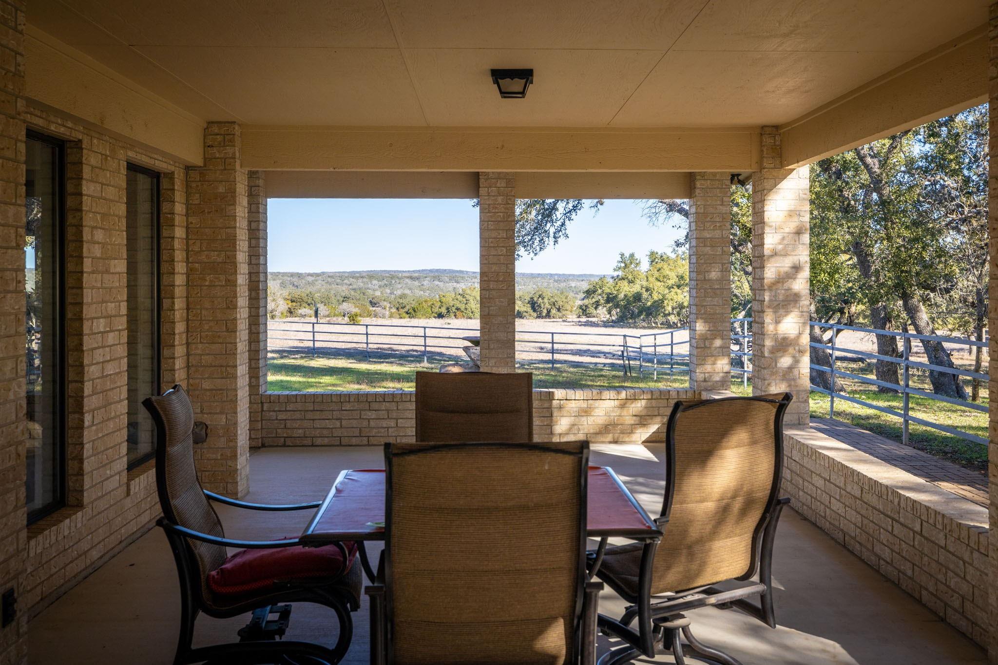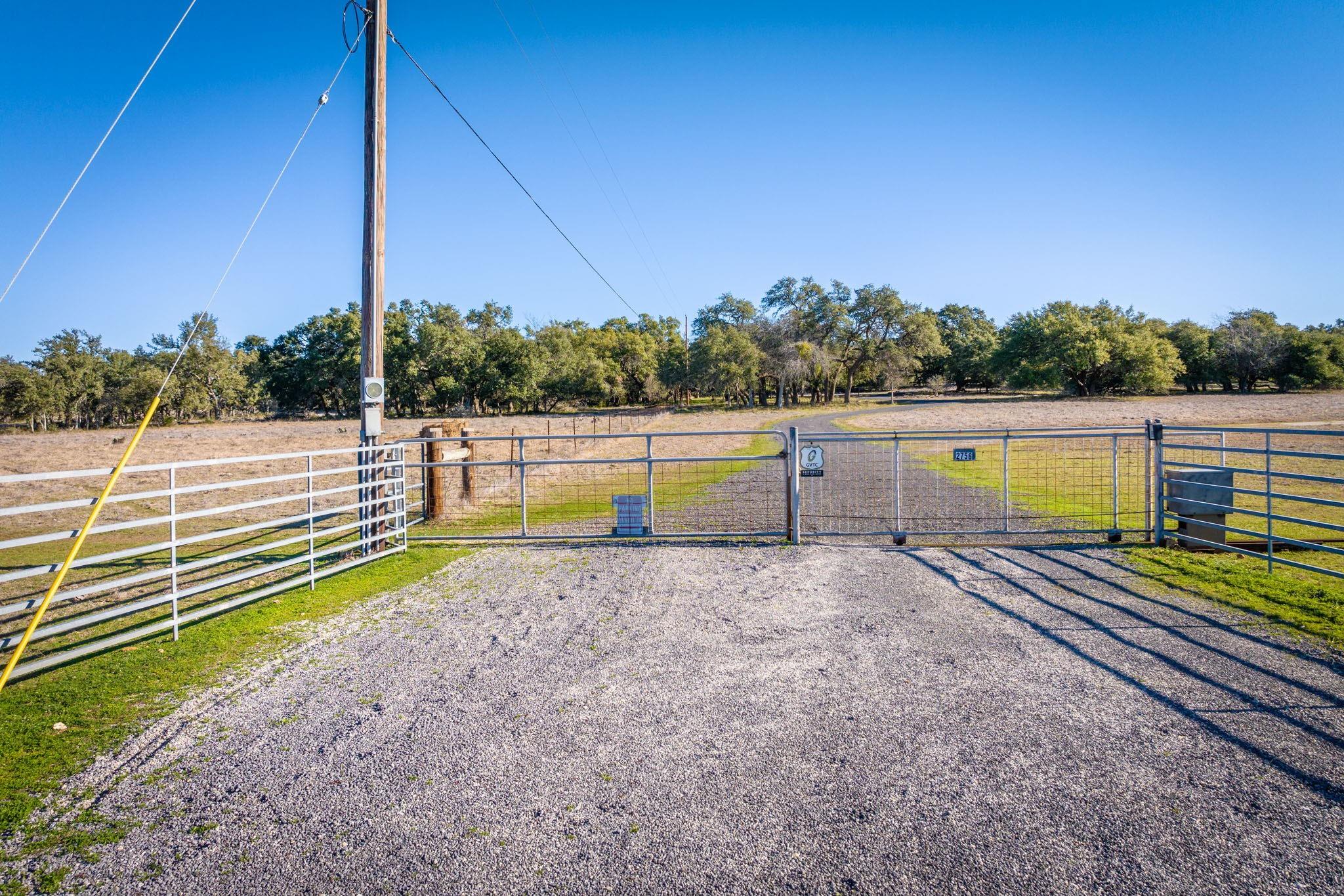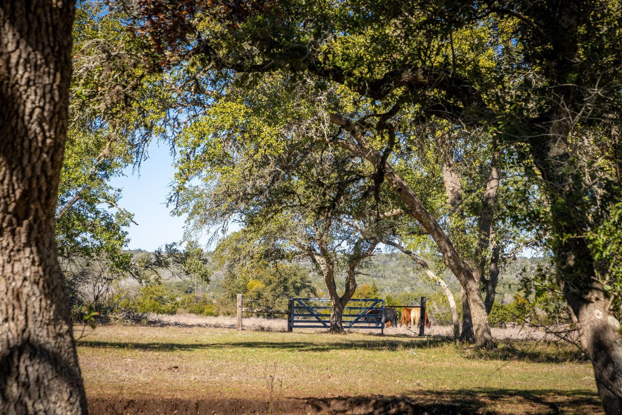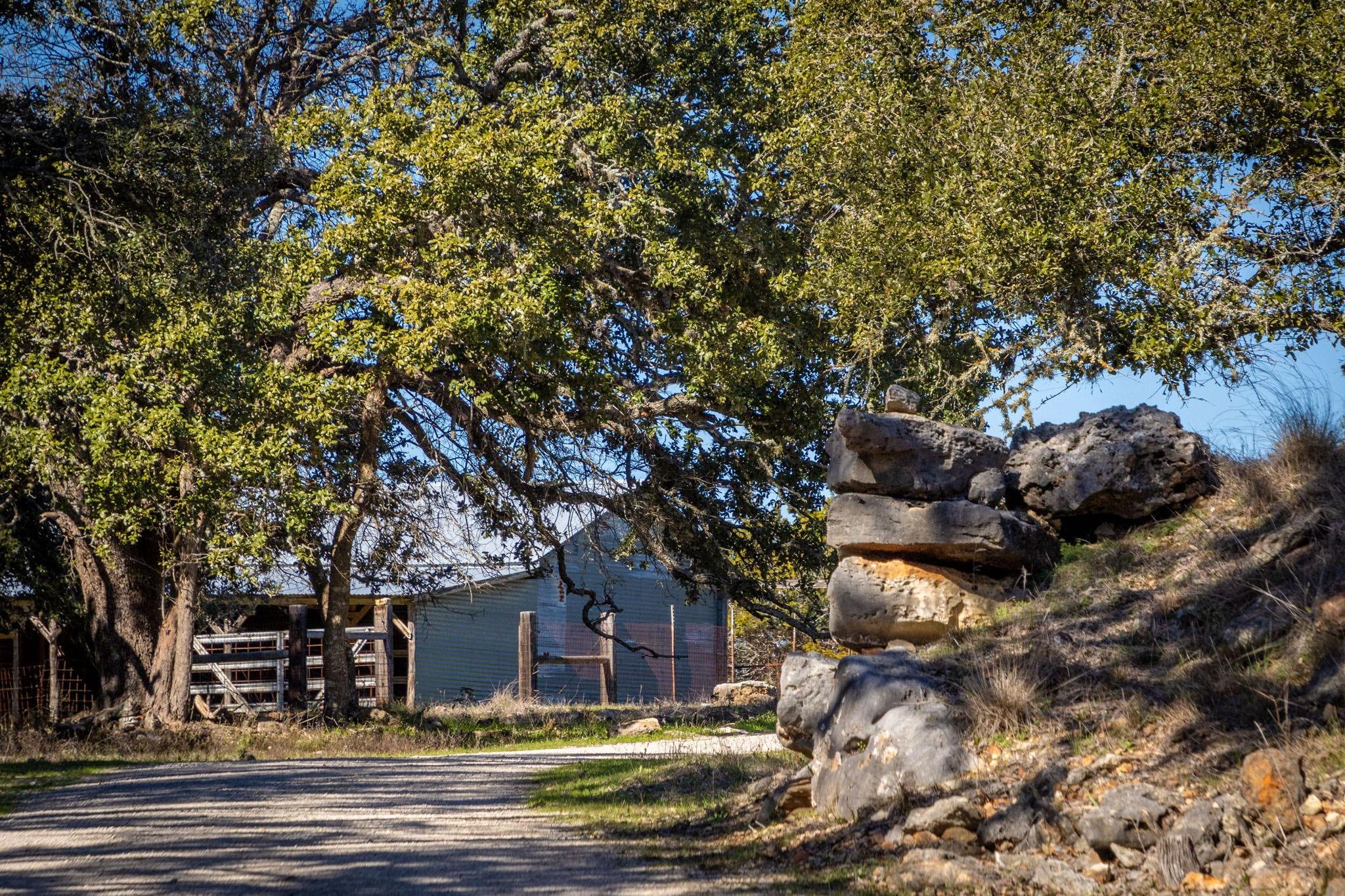 Owned by the same couple for 35 years. The pride of ownership is evident. Every detail, the personal attention, and the dedicated stewardship makes this a legacy property. Meticulously maintained land & homes. Park-like 34 acres manicured with no cactus and cleared of under brush. 2 water wells, 2 septics, 2 houses, excellent ranch fencing, stunning oaks, all weather roads throughout and hill country views from the 1110 feet elevation homesite. The main home is all brick, no carpet, all Italian tile floors, 600+/- sqft of covered porch and high ceilings. The wood burning fireplace has separate ducting to fully heat the house. The open floor plan is flooded with natural light from all the walls of windows. Additionally, there is a Satterwhite log cabin guest house with its own well and septic, full length covered porch all nestled within beautiful oaks.