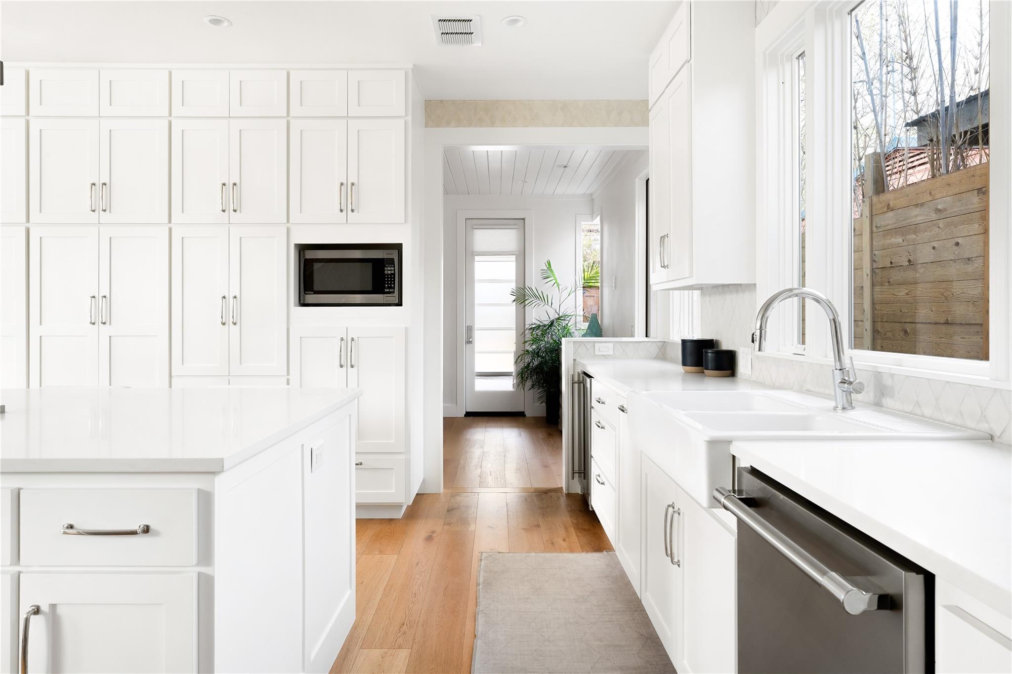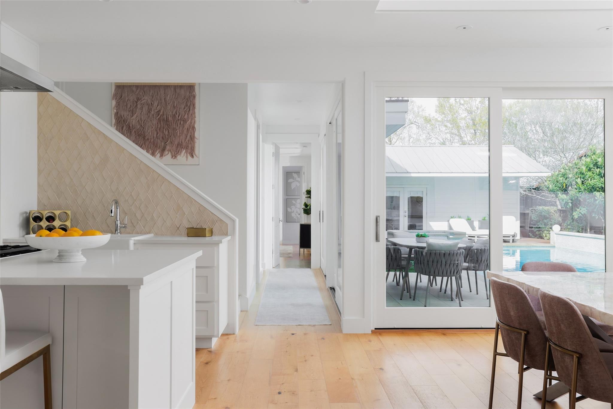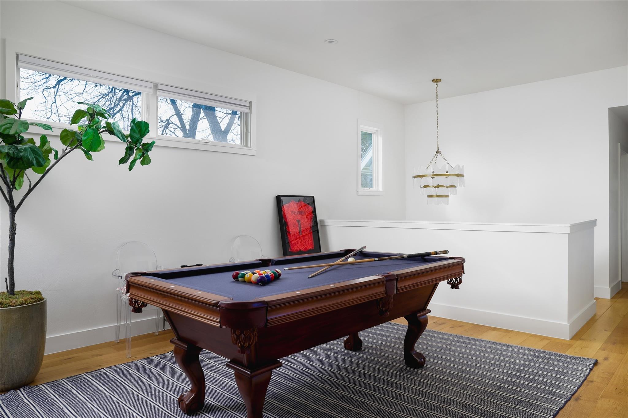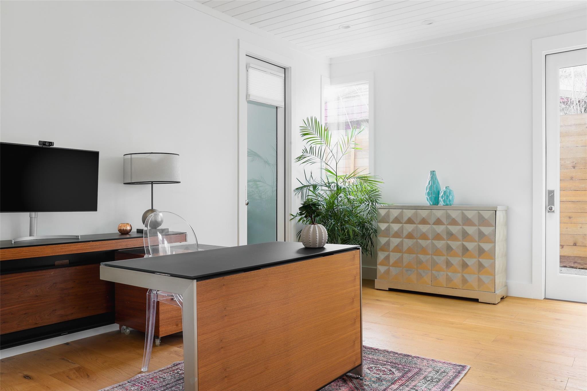 Indulge in the ultimate Austin resort-style living in this sun-drenched 4BD/4.5BA contemporary coastal farmhouse, where carefully planned sightlines and oversized windows and skylights capture wide-open views and sunlight throughout. Step into the secluded outdoor oasis where an expansive, 8-foot-deep heated pool, spa and cabana give the entire home a waterfront ambiance. A spacious yard area provides ample space for outdoor activities and play. Inside, the light and bright open-plan interiors include a vaulted great room with a dramatic clerestory window and a gourmet kitchen filled with Thermador appliances. Luxurious bedrooms begin with a main-floor Owner's retreat with a grand champagne closet and a spa bath opening directly to the outdoor hot tub. Enjoy three lovely secondary bedrooms, a game room, a home office, plus a separate well-appointed apartment with a private entrance — perfect for guests or rental income. Conveniently located near Zilker Park, Music Lane, and Austin's finest dining spots, this unique retreat offers an unparalleled blend of comfort and luxury. Don't miss out on this exceptional opportunity. Pool cabana provides an additional 202 square feet of space with a full bath for added convenience.