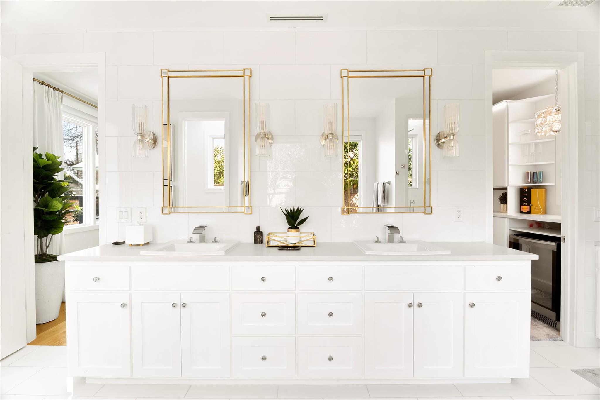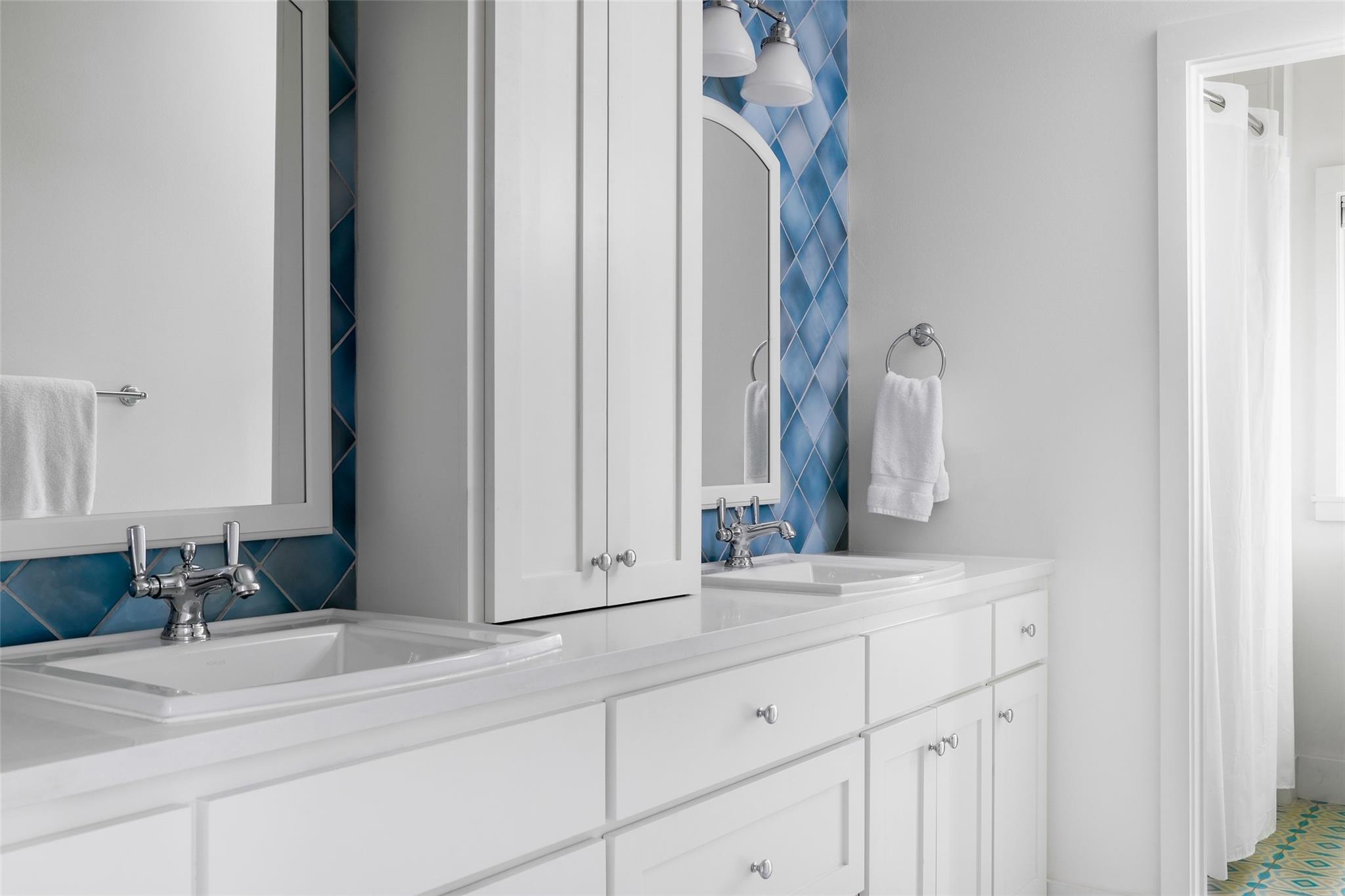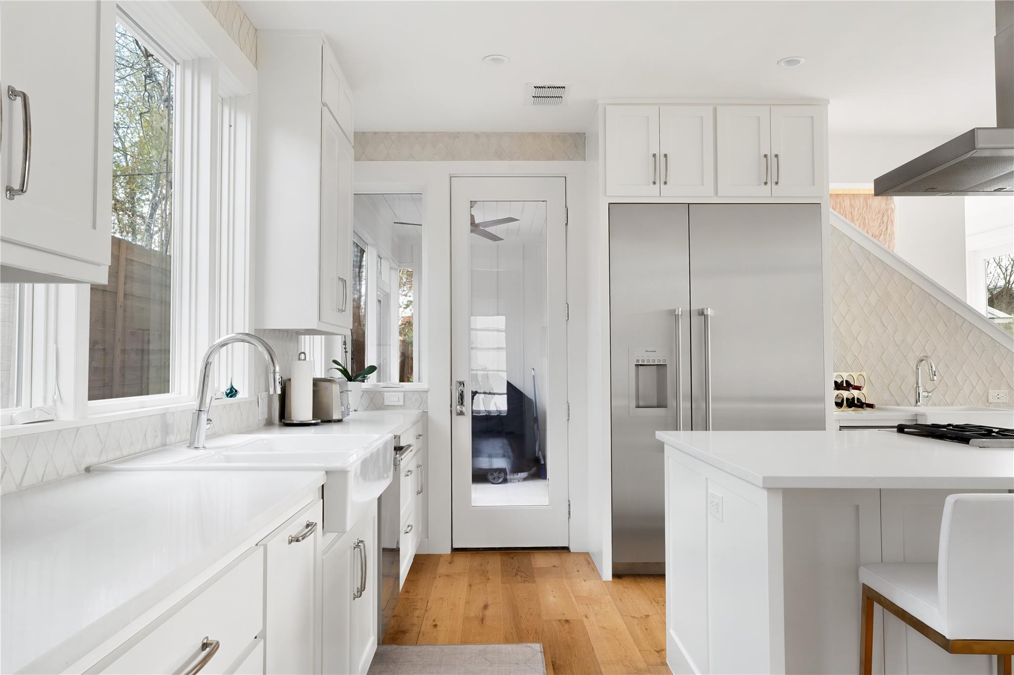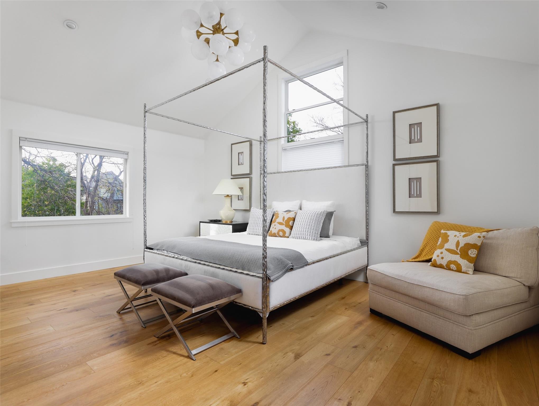 Indulge in the ultimate Austin resort-style living in this sun-drenched 4BD/4.5BA contemporary coastal farmhouse, where carefully planned sightlines and oversized windows and skylights capture wide-open views and sunlight throughout. Step into the secluded outdoor oasis where an expansive, 8-foot-deep heated pool, spa and cabana give the entire home a waterfront ambiance. A spacious yard area provides ample space for outdoor activities and play. Inside, the light and bright open-plan interiors include a vaulted great room with a dramatic clerestory window and a gourmet kitchen filled with Thermador appliances. Luxurious bedrooms begin with a main-floor Owner's retreat with a grand champagne closet and a spa bath opening directly to the outdoor hot tub. Enjoy three lovely secondary bedrooms, a game room, a home office, plus a separate well-appointed apartment with a private entrance — perfect for guests or rental income. Conveniently located near Zilker Park, Music Lane, and Austin's finest dining spots, this unique retreat offers an unparalleled blend of comfort and luxury. Don't miss out on this exceptional opportunity. Pool cabana provides an additional 202 square feet of space with a full bath for added convenience.