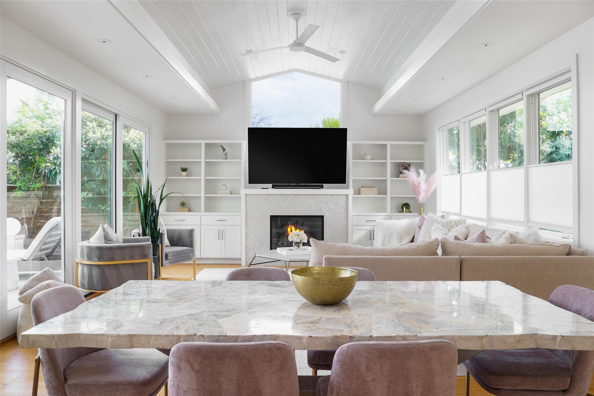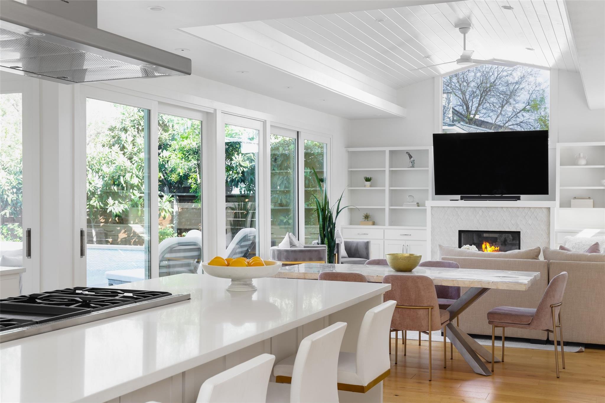 | Interior Features | Breakfast Bar, Built-in Features, Ceiling Fan(s), Cathedral Ceiling(s), High Ceilings, Vaulted Ceiling(s), Quartz Counters, Electric Dryer Hookup, Entrance Foyer, Kitchen Island, Multiple Dining Areas, Multiple Living Areas, Open Floorplan, Primary Bedroom on Main, Recessed Lighting, Storage, Walk-In Closet(s), Washer Hookup, Wired for Sound | |