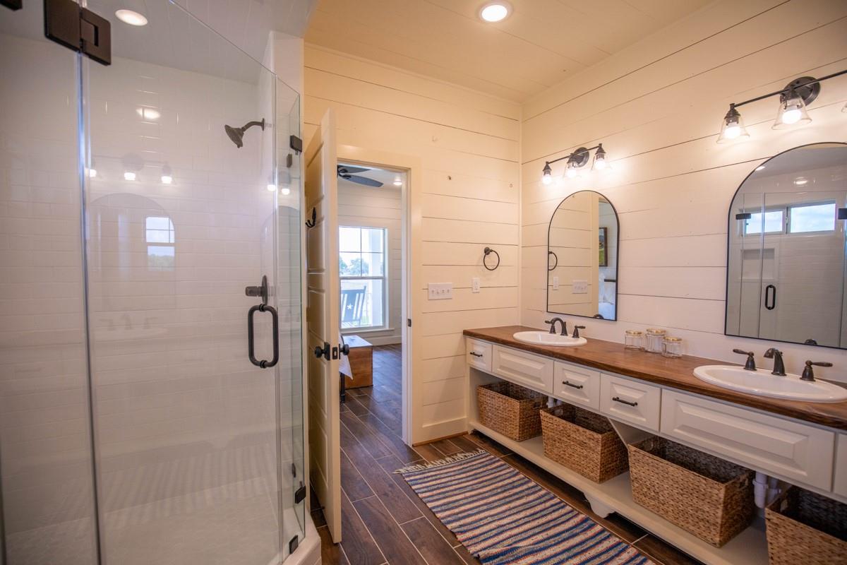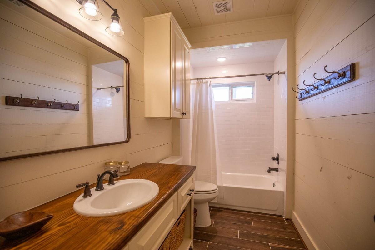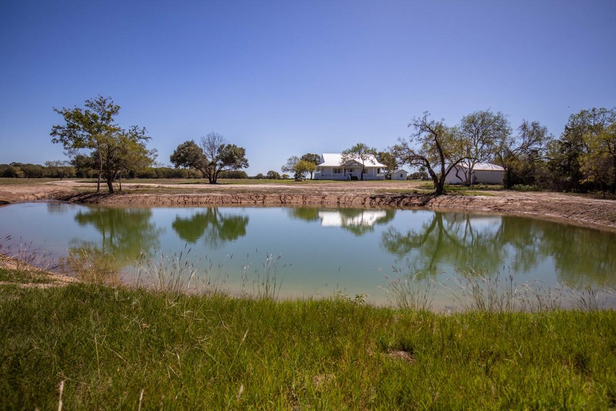 The 4-O Farm is a picturesque recreational getaway complete with a brand new 3B/2Ba modern farmhouse with a spacious wrap-around porch. In addition to the new home, there is a 24’ x 30’ pole barn, a screened gravel driveway and parking area, sandstone fire pit as well as a freshly landscaped yard with irrigation system. This property also features a stand-alone laundry and storage building, matching well house, and a pond just behind the home. The 4-0 is located less than 100 miles from San Antonio, Houston and Austin and only 40 miles from the very popular Round Top Antique Show. If antiques aren’t your thing, go tour the 7 Historic Painted Churches in the area or visit the Shiner Brewery, all a short country drive from here. This home comes fully furnished, has never been lived in, and is ready for the new owners to start making lasting memories with family and friends. The 3B/2Ba house was recently completed in September 2023. It has 1475 sq. ft. of conditioned space with an additional 1324 sq. ft. of wrap-around porch with white picket railing. Entering the home from either the front or back you are greeted by cathedral ceilings with 6”x12” decorative wooden beams and wall-to-wall shiplap. The entire interior floor is wood-like porcelain tile which is waterproof and very durable. The kitchen has custom cabinets, sealed pine countertops, and an island with a built-in seating area for casual dining and additional storage. Just off the kitchen is the dining room and built-in pantry. The master suite is of ample size to allow for a queen bed and a desk. Entering the master bath you’ll find a walk-in shower, double sink vanity, and 6’x10’ walk-in closet. The second bedroom has a queen bed and a built-in closet. The guest room has two single beds and a custom-built armoire in lieu of a closet. The entire home is furnished with hand-selected antiques and custom-built furniture. The 40.317 acres have a great balance between open pasture (60%) and dense woodland (40%)