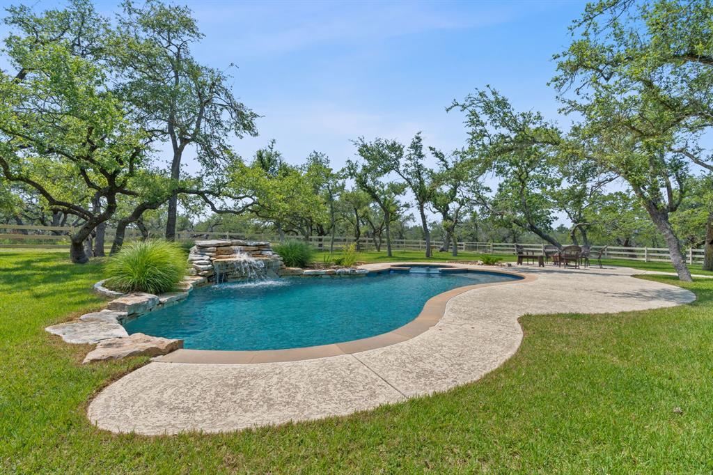 Serene Sanctuary in the Heart of Dripping Springs, Nestled amidst gentle hills in the heart of Dripping Springs, this extraordinary 55-acre ranch offers a truly unique and unparalleled experience. As you enter through the privately gated entrance situated at the back of a tranquil cul-de-sac, you'll immediately feel a sense of peace and seclusion. The property is fully fenced, ensuring privacy and security, allowing you to immerse yourself in the serene beauty of the natural surroundings. This ranch is a haven for animals of all kinds. Vast expanse of usable acres, this property features a well-appointed horse stable and barn, providing ample space and comfort for your equine companions. Additionally, the gentle hills and open fields create an ideal environment for grazing and roaming. Whether you have horses, livestock, or simply enjoy observing wildlife, this ranch offers a unique opportunity to indulge in your love for animals.The centerpiece of relaxation is the exquisite luxury pool, complete with a cascading waterfall, providing a refreshing oasis on hot Texas days. The property also benefits from an agricultural exemption, making it an ideal choice for those seeking to cultivate the land or engage in agricultural pursuits. Despite its secluded ambiance, this ranch is conveniently located just 10 minutes away from everything Dripping Springs has to offer, including shopping, dining, and entertainment options.