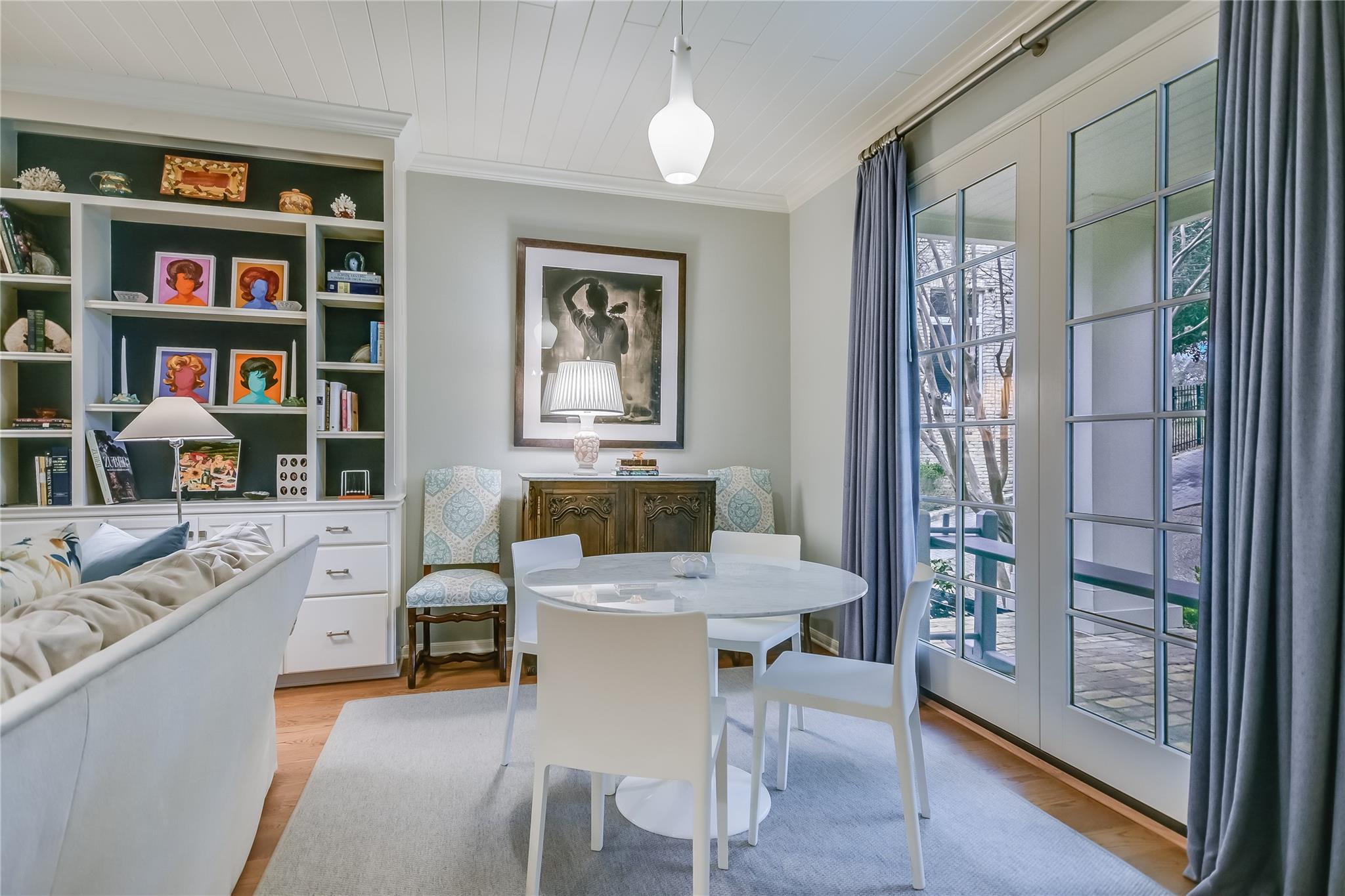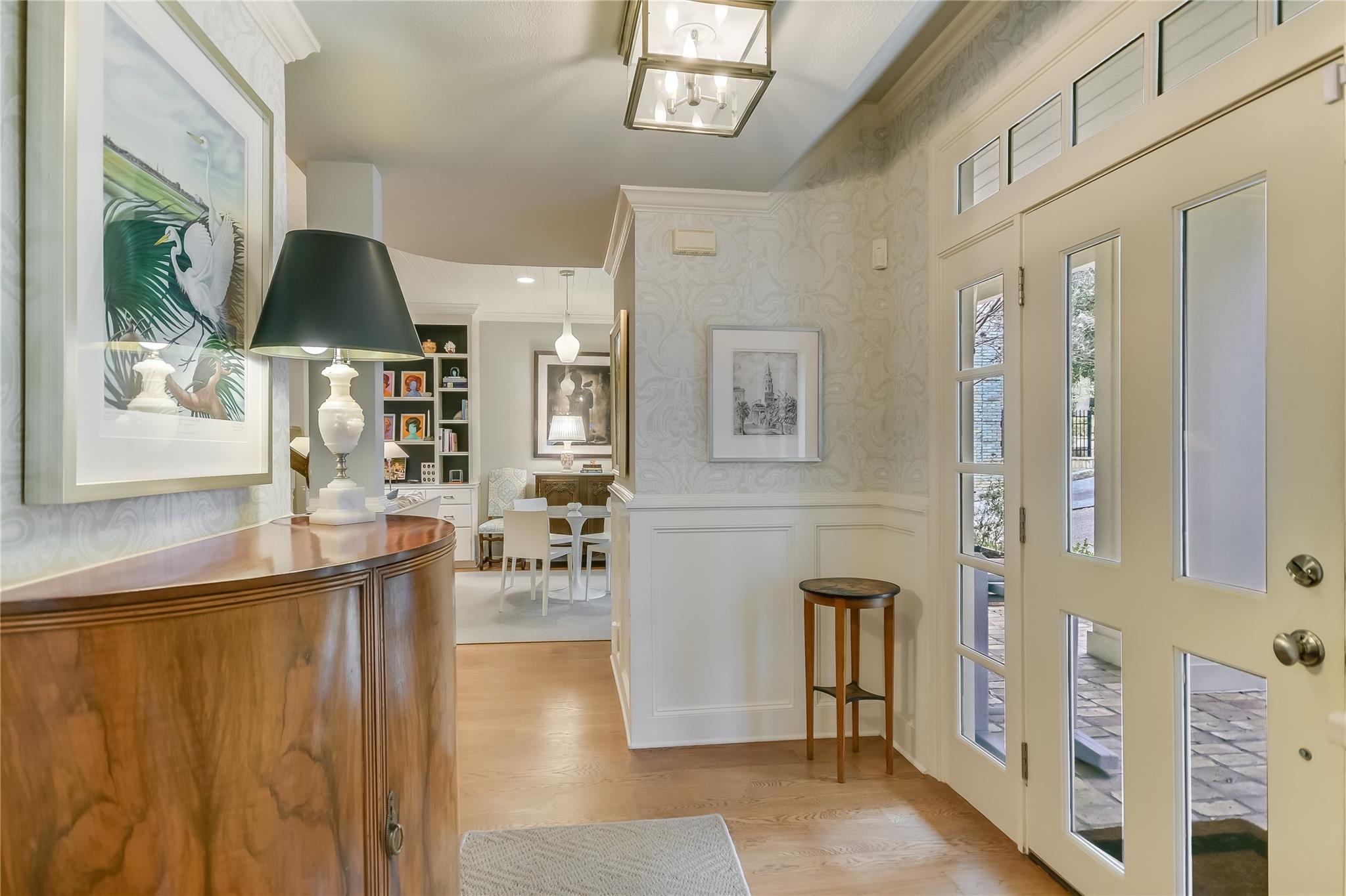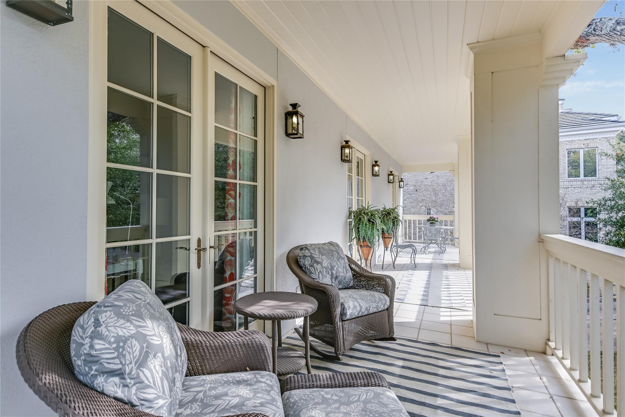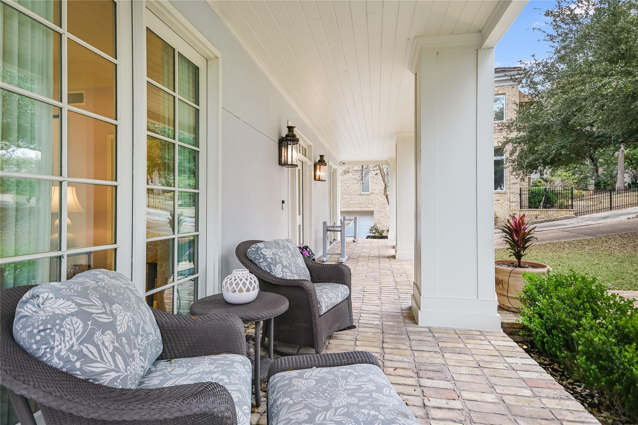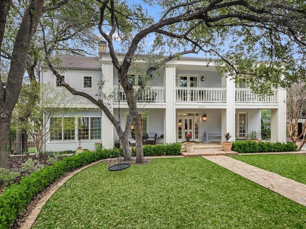 Tucked away on a quiet cul-de-sac in the very heart of Tarrytown, this Southern Colonial home offers the perfect blend of classic style with modern updates. Thoughtfully situated on a terraced and landscaped quarter acre lot, this gracious home welcomes you with inviting covered porches that run the length of the home and connect to the shared living spaces. Comprehensively updated with a host of unique designer finishes, the quality and attention to detail is evident throughout. The main level's circular floor plan includes elegant formal living and dining areas, an inviting kitchen-adjacent den with casual dining and a light-filled sunroom that opens to an expansive screened porch. Each room offers its own collection of unique features including custom mill work and high quality architectural details. The bright, well-appointed kitchen includes a suite of top-of-the line appliances, quartzite counters and opens to both the family room and a large screened porch. With room for both dining and relaxing, the screened porch provides a perfect year-round extension of the indoor living spaces. The second floor offers an impressive primarily bedroom suite with a dedicated dressing room, two professionally organized walk-in closets and a luxe marble-accented bathroom. Multiple sets of French doors lead to a covered porch and create a relaxing and private retreat. Three additional bedrooms (one with peek-a-boo winter views of Lake Austin) and two additional bathrooms round out the upper level. Accessible through its own private entrance, an updated and modern guest suite includes a light-filled bedroom, kitchenette and full bathroom. Additional exterior features include a large, flat, turfed back yard and custom steel planters. This exceptional home offers the best of in-town living with convenience and proximity to Tarrytown restaurants and amenities, Lake Austin access and top schools.