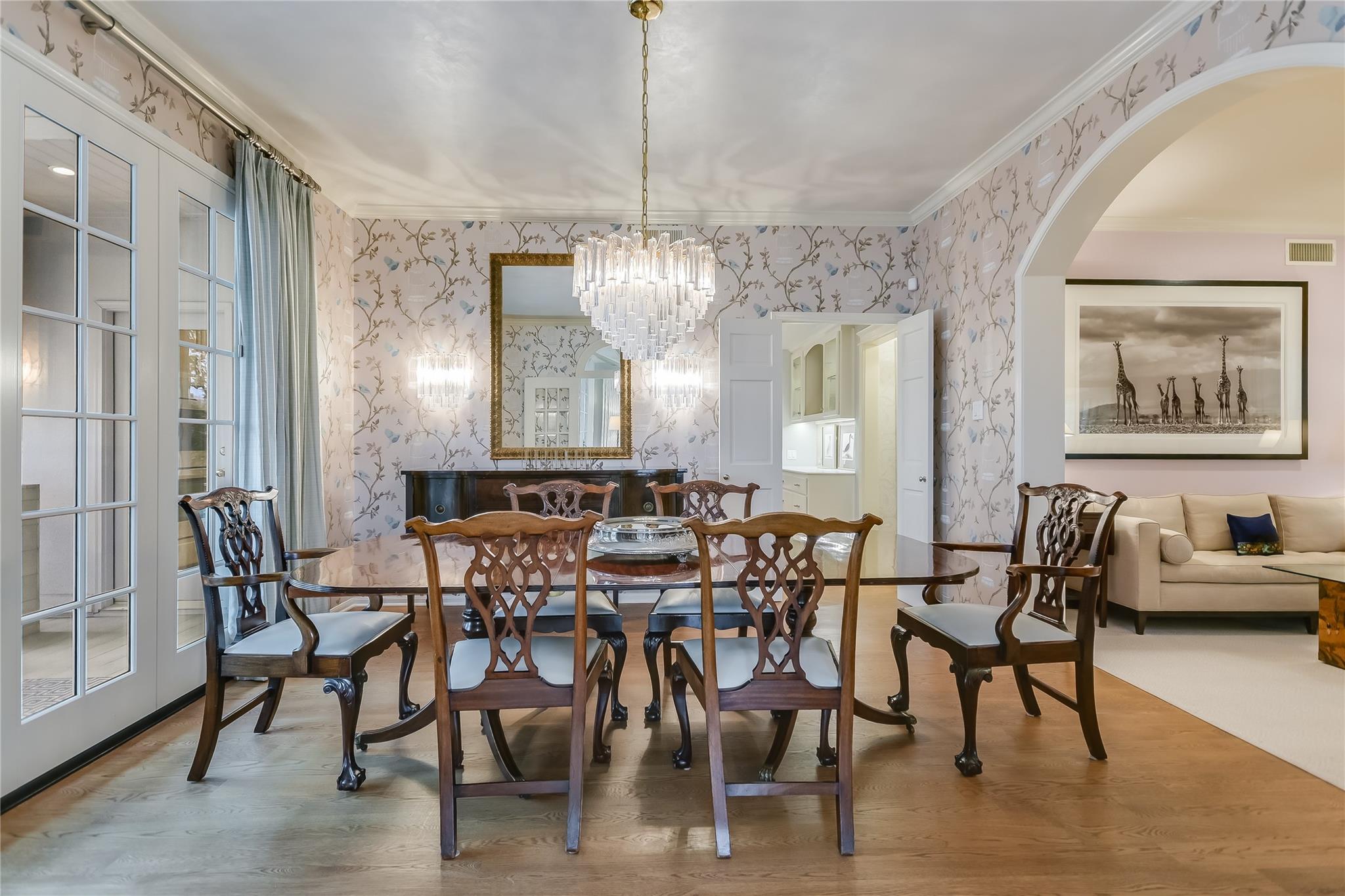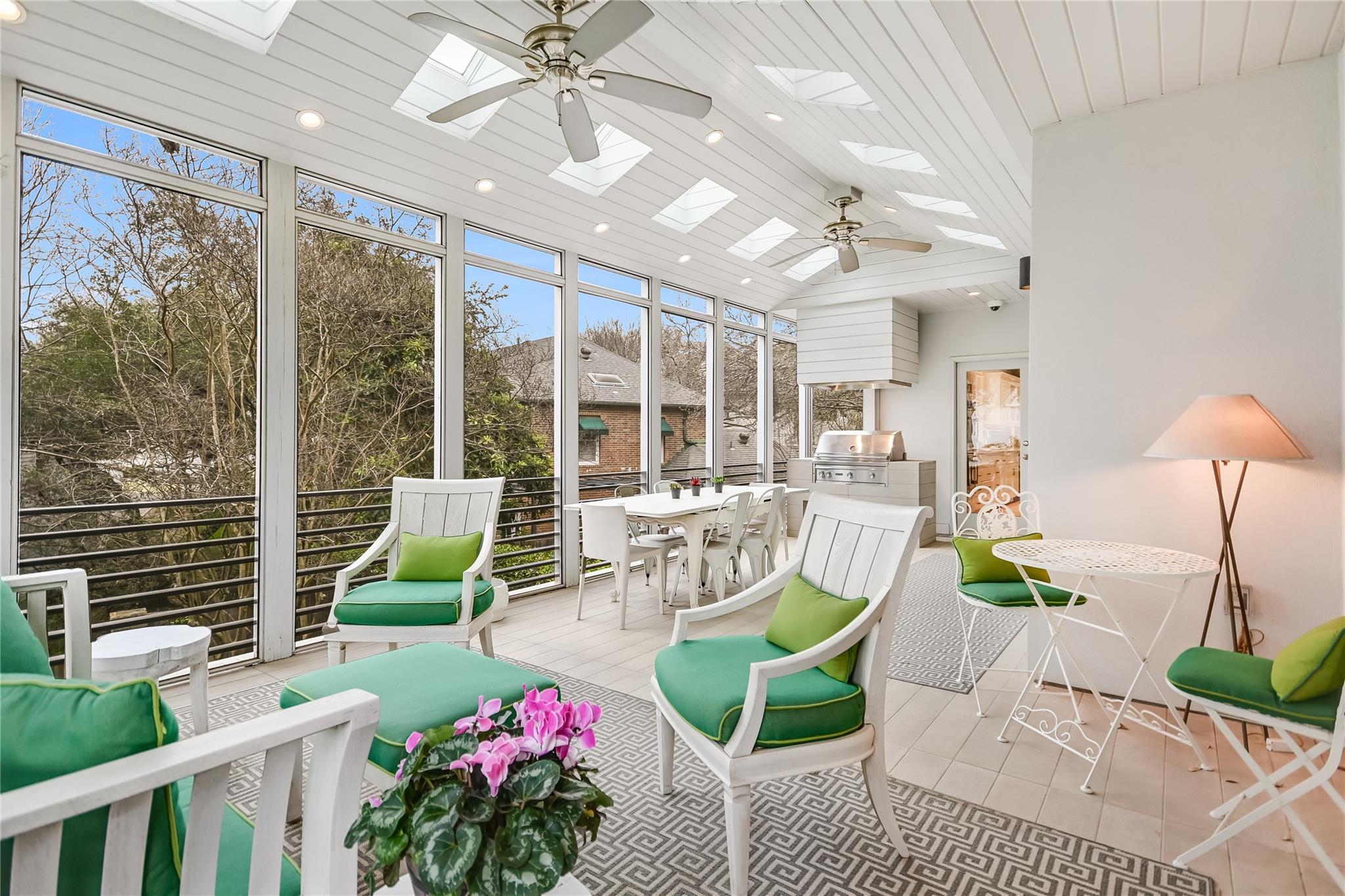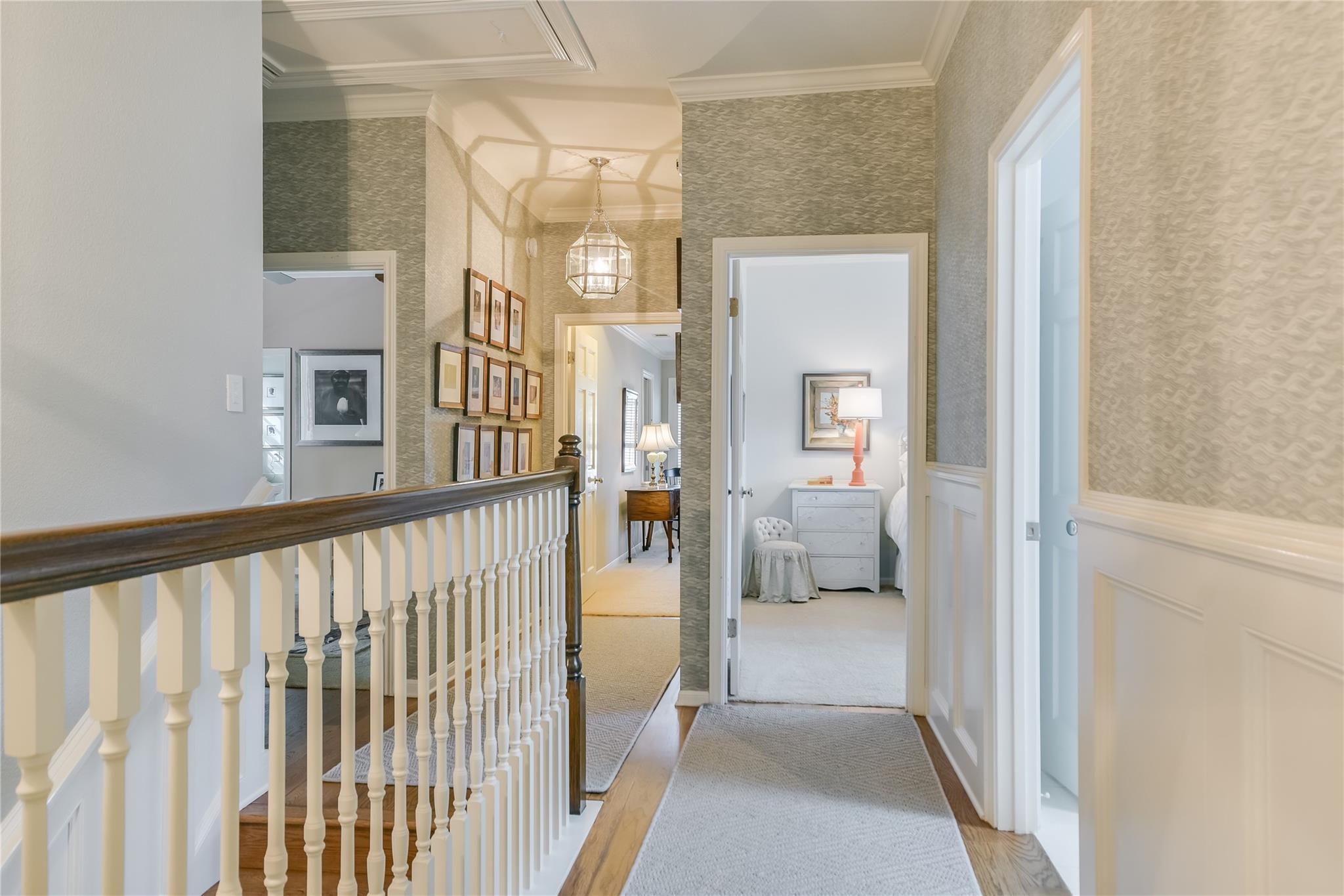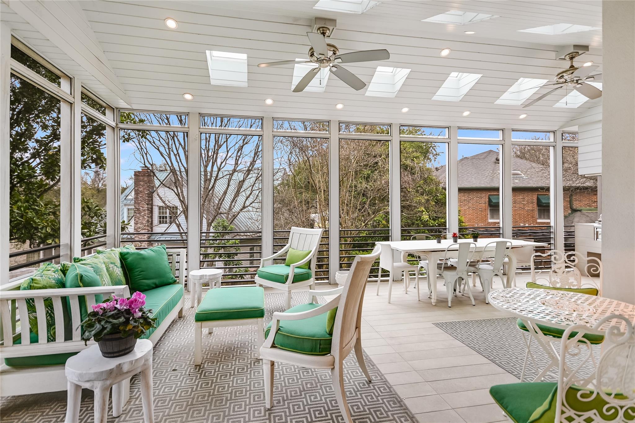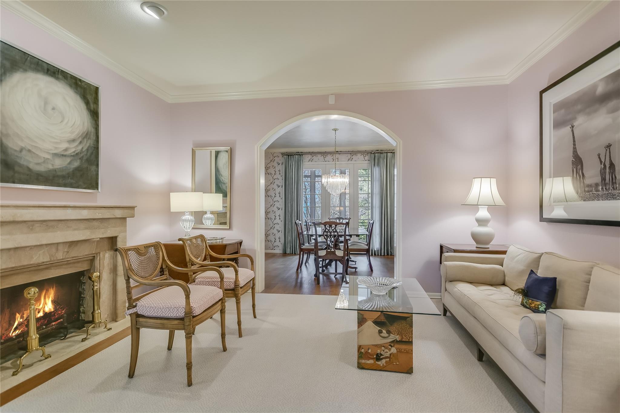 Tucked away on a quiet cul-de-sac in the very heart of Tarrytown, this Southern Colonial home offers the perfect blend of classic style with modern updates. Thoughtfully situated on a terraced and landscaped quarter acre lot, this gracious home welcomes you with inviting covered porches that run the length of the home and connect to the shared living spaces. Comprehensively updated with a host of unique designer finishes, the quality and attention to detail is evident throughout. The main level's circular floor plan includes elegant formal living and dining areas, an inviting kitchen-adjacent den with casual dining and a light-filled sunroom that opens to an expansive screened porch. Each room offers its own collection of unique features including custom mill work and high quality architectural details. The bright, well-appointed kitchen includes a suite of top-of-the line appliances, quartzite counters and opens to both the family room and a large screened porch. With room for both dining and relaxing, the screened porch provides a perfect year-round extension of the indoor living spaces. The second floor offers an impressive primarily bedroom suite with a dedicated dressing room, two professionally organized walk-in closets and a luxe marble-accented bathroom. Multiple sets of French doors lead to a covered porch and create a relaxing and private retreat. Three additional bedrooms (one with peek-a-boo winter views of Lake Austin) and two additional bathrooms round out the upper level. Accessible through its own private entrance, an updated and modern guest suite includes a light-filled bedroom, kitchenette and full bathroom. Additional exterior features include a large, flat, turfed back yard and custom steel planters. This exceptional home offers the best of in-town living with convenience and proximity to Tarrytown restaurants and amenities, Lake Austin access and top schools.